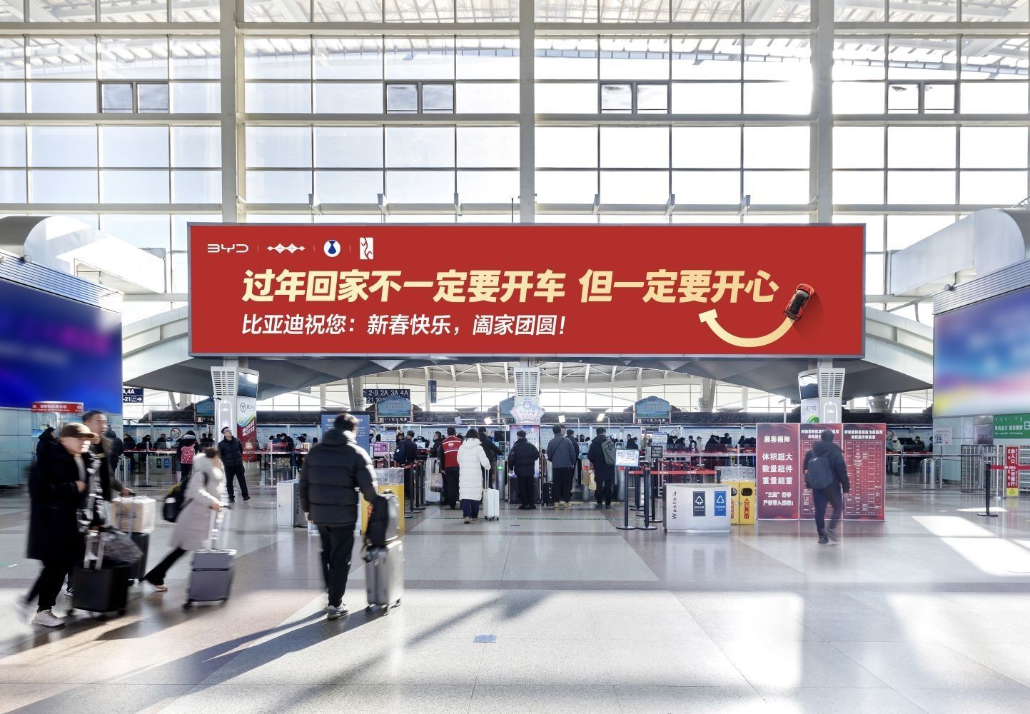 被比亚迪的新春祝福狠狠戳中!在春运的宏大叙事里,总有人关注里程、运力,却少有人在意归乡人奔赴团圆的心情。而比亚迪把暖心话语送上机场、商圈的大屏,不谈产品硬广,不纠结出行方式,只单纯祝大家回家开心,这份温柔的共情太有烟火气了。#过年回家不一定要开车但一定要开心# #比亚迪的新年祝福有点意思# 自驾、飞机、高铁,每一种归途都是向家的奔赴,团圆的意义从来不在交通工具,而在身边的人、心底的甜。愿所有踏上...