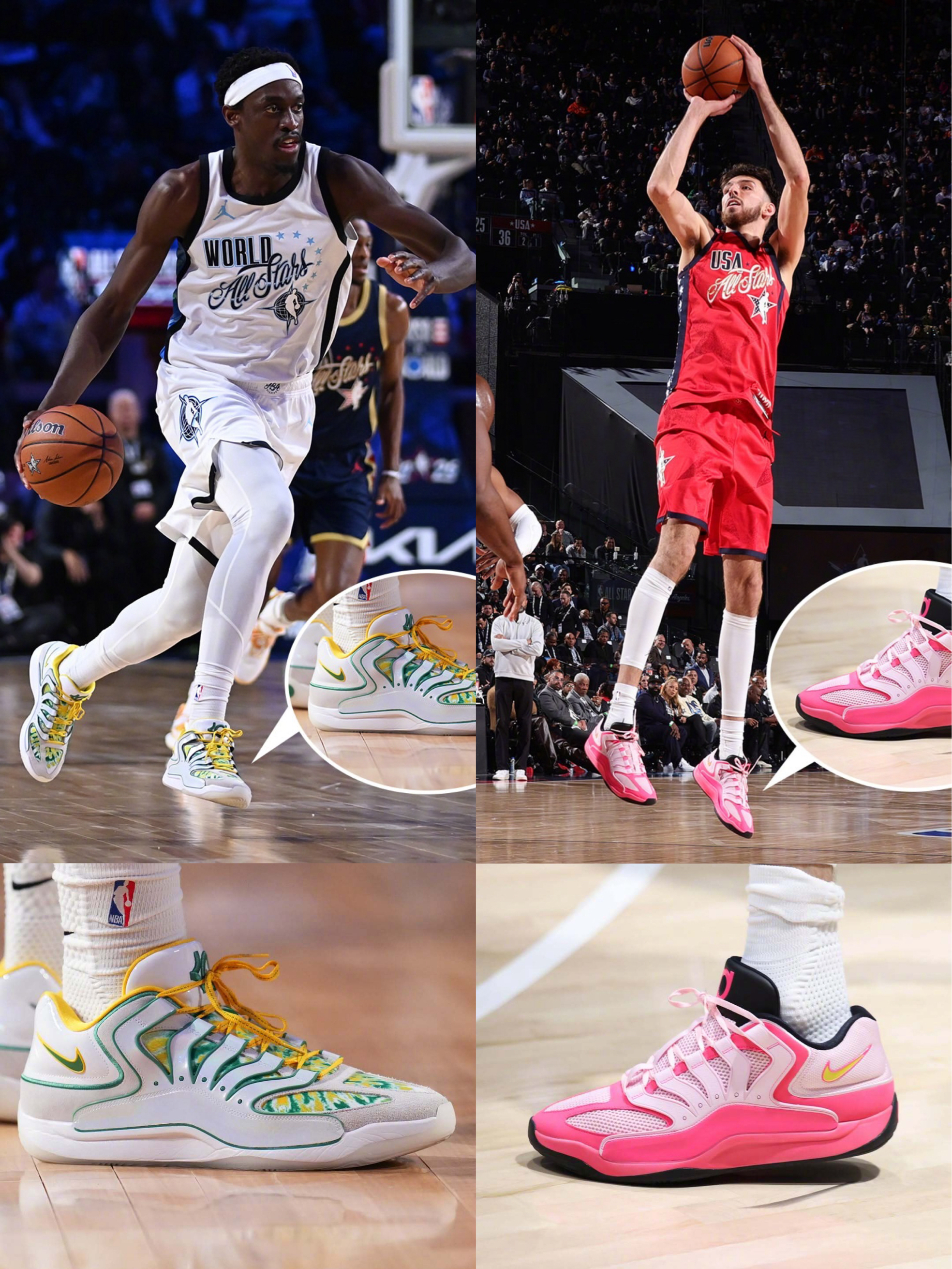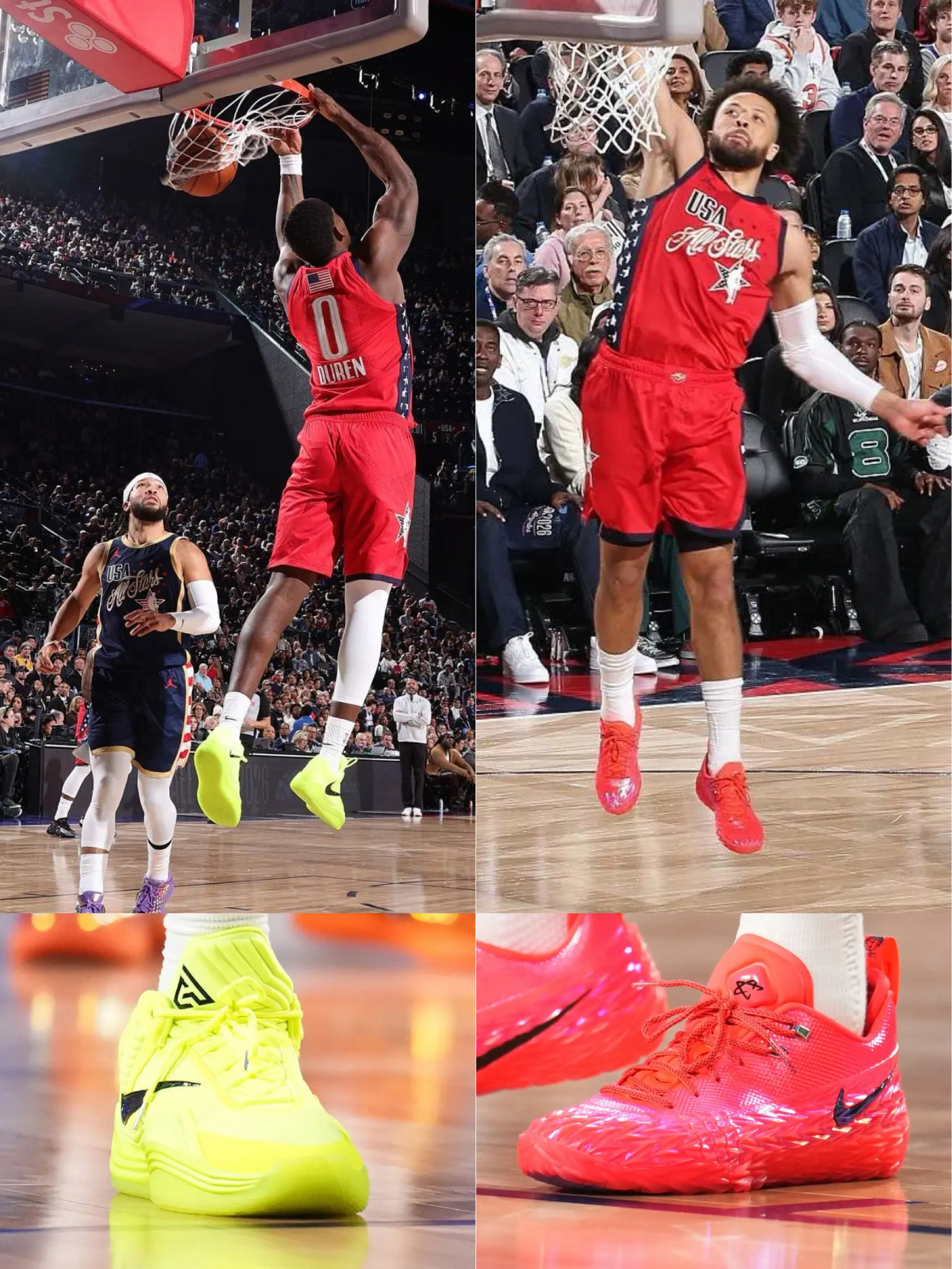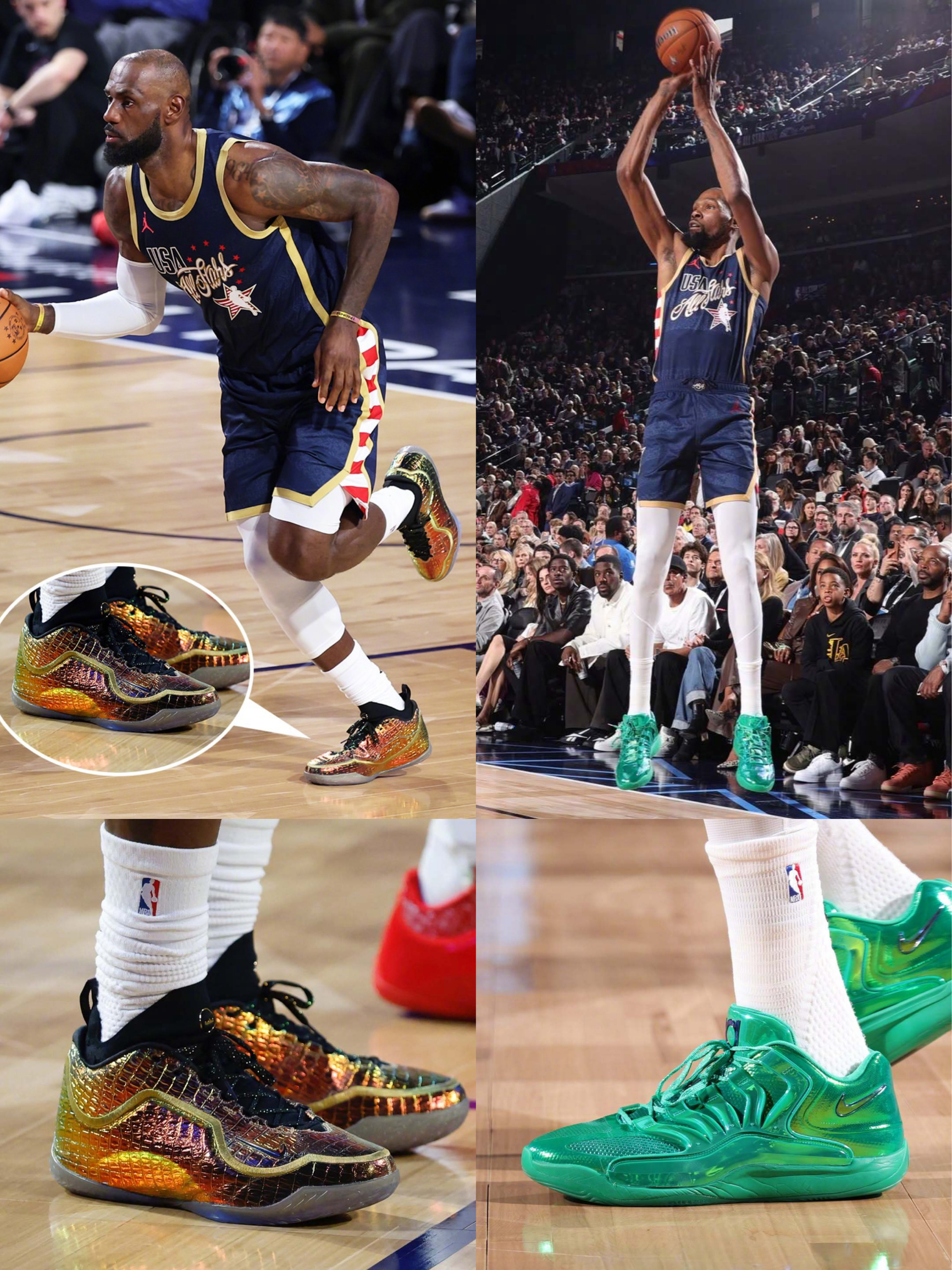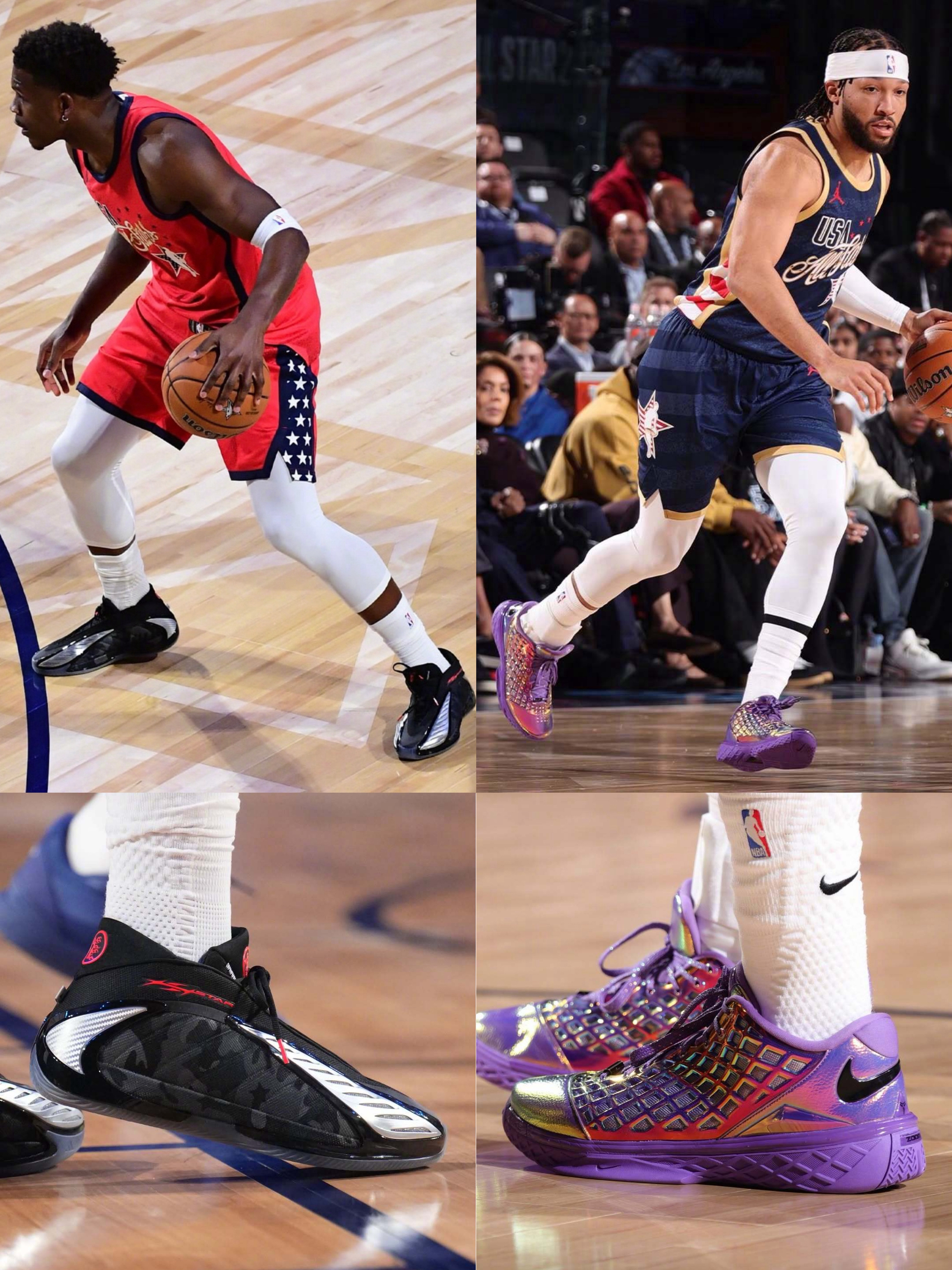 美国条纹队: 伦纳德 New Balance Kawhi5 杜兰特 Nike KD18“Warning Label” 詹姆斯 Nike Lebron23“Warining Label” 库里 安踏 KT11 PE 福克斯 UA CURRY FOX2 PE 布伦森 Nike Kobe 3 Low Protro “Warining Label” 英格拉姆 Air Jordan 40“红外...