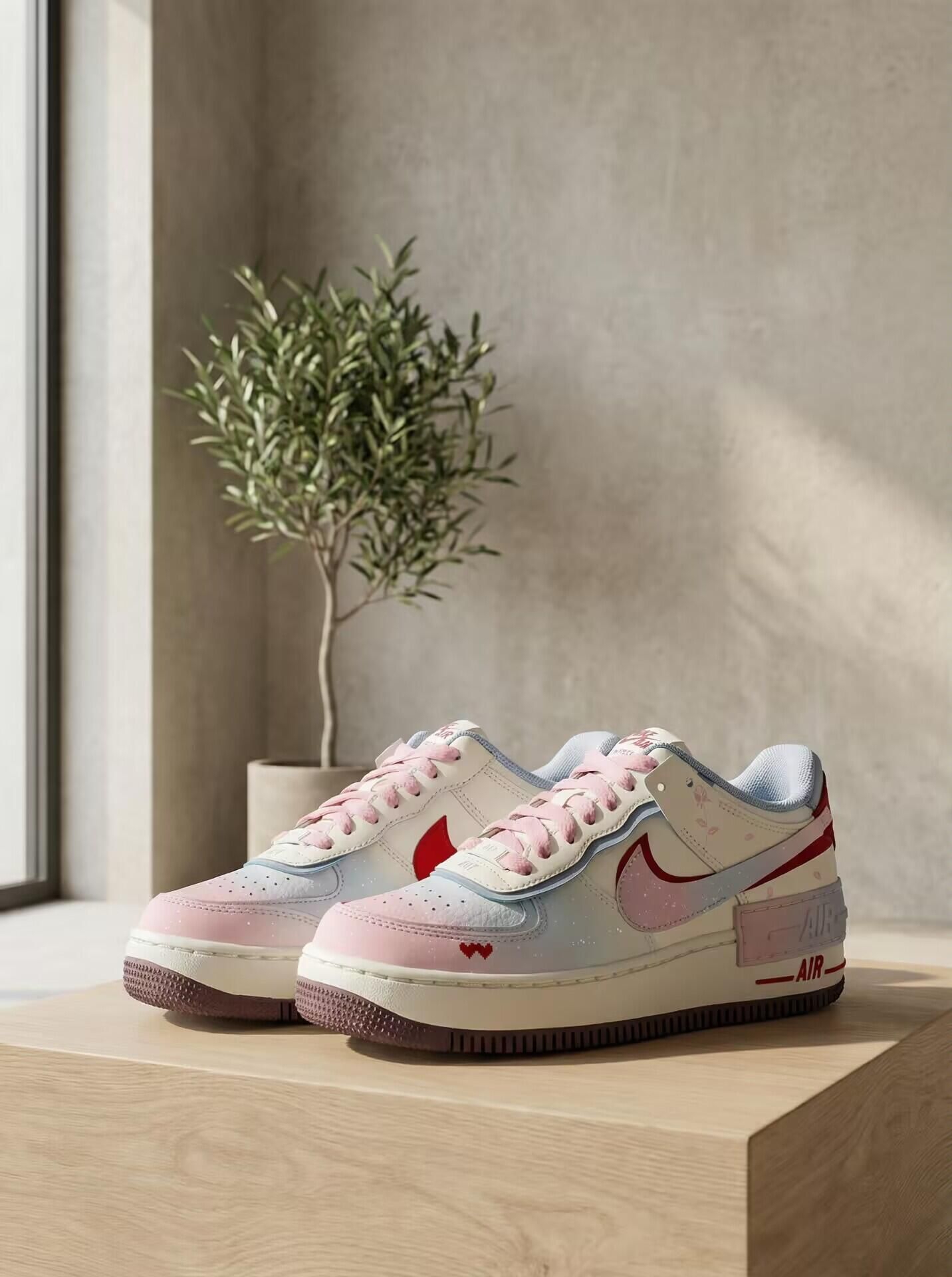 目光所及的甜AF1 Shadow白蓝粉红款太绝了!多巴胺撞色解锁甜系穿搭,CNY情人节双限定藏满心意,特殊鞋盒送礼自留都合适。低帮防滑脚感超赞,浪漫主义穿搭氛围感拉满~