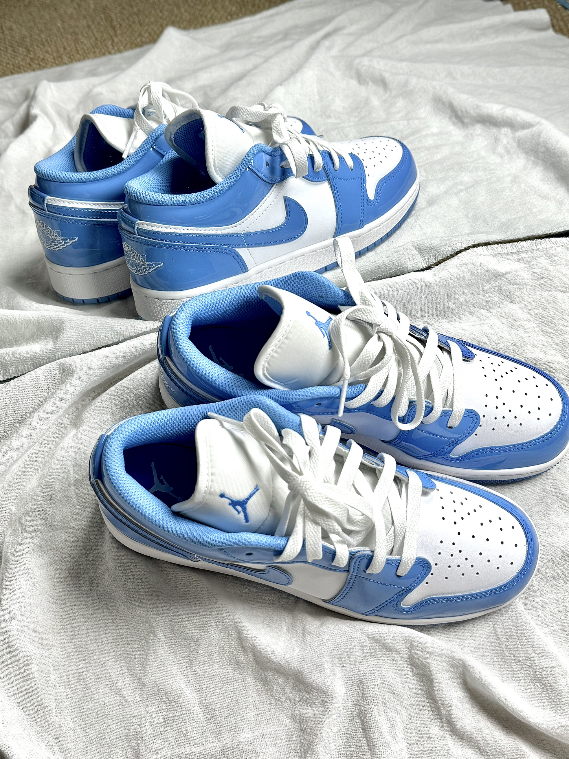 谁懂啊!这双“海盐蓝”AJ1,矮个子也能闭眼冲! 2026新年第一双球鞋,直接被这抹北卡蓝拿捏了💙 作为常年测鞋的博主,这双Low版真的踩在我的审美点上! ✅ 实测优点: 1. 颜值封神:漆皮材质自带光泽感,蓝白撞色干净又减龄,阳光下像裹了层汽水气泡 2. 版型友好:低帮设计完全不压身高,小个子穿阔腿裤也能穿出比例感,走路无束缚 3. 场景全能:通勤、逛街、约会通吃,早春搭卫衣、连衣裙都很出片 ⚠...