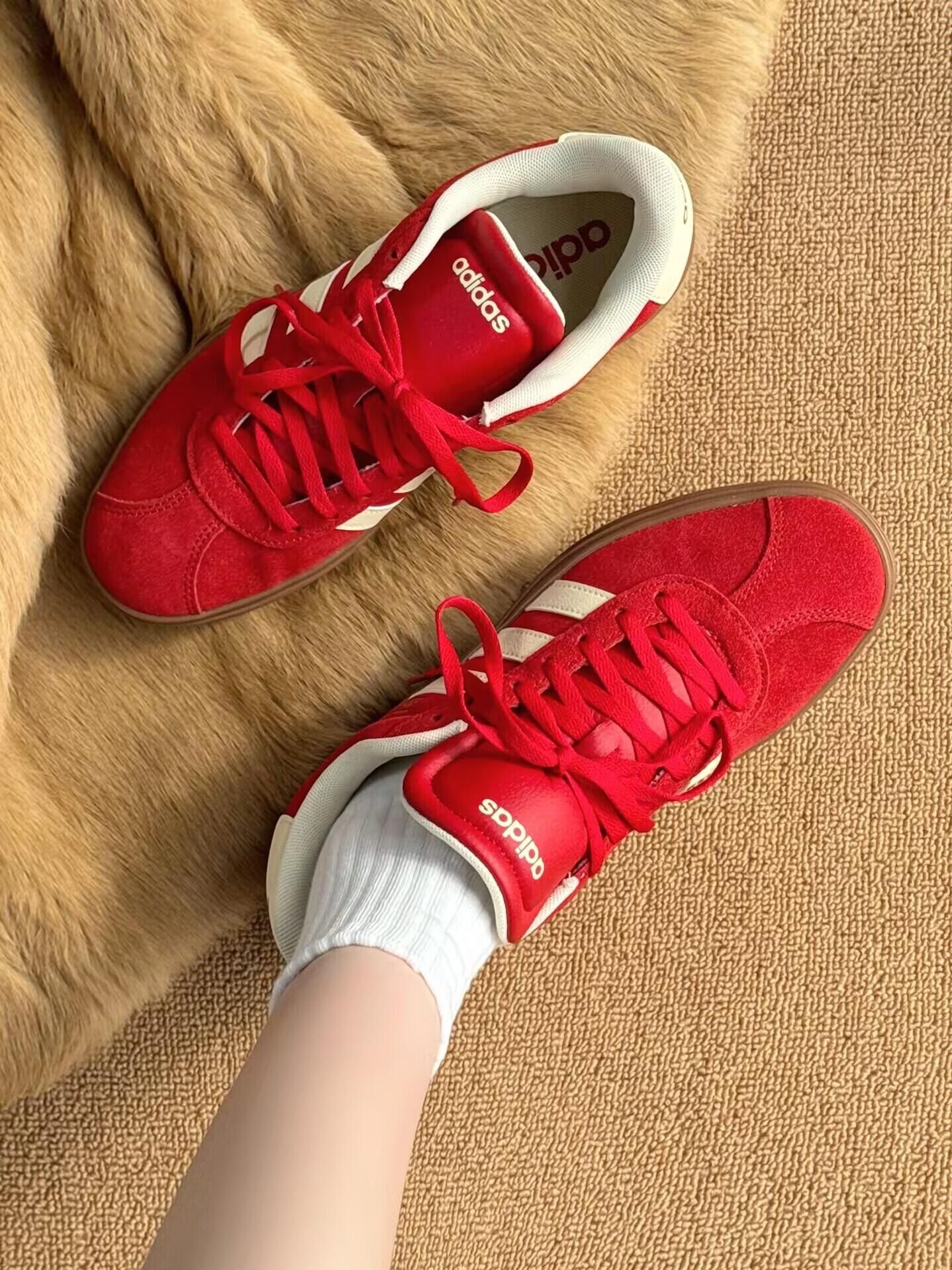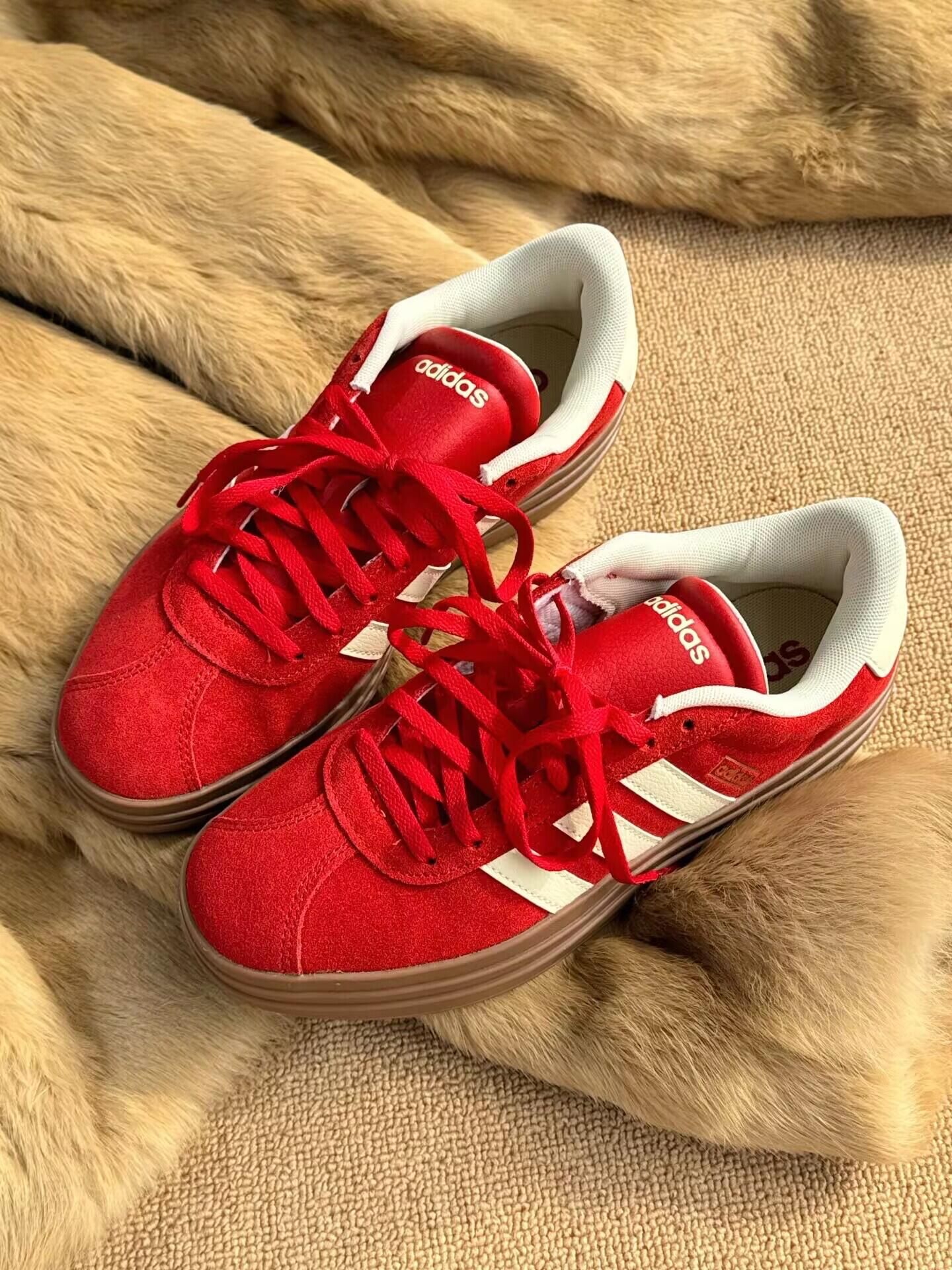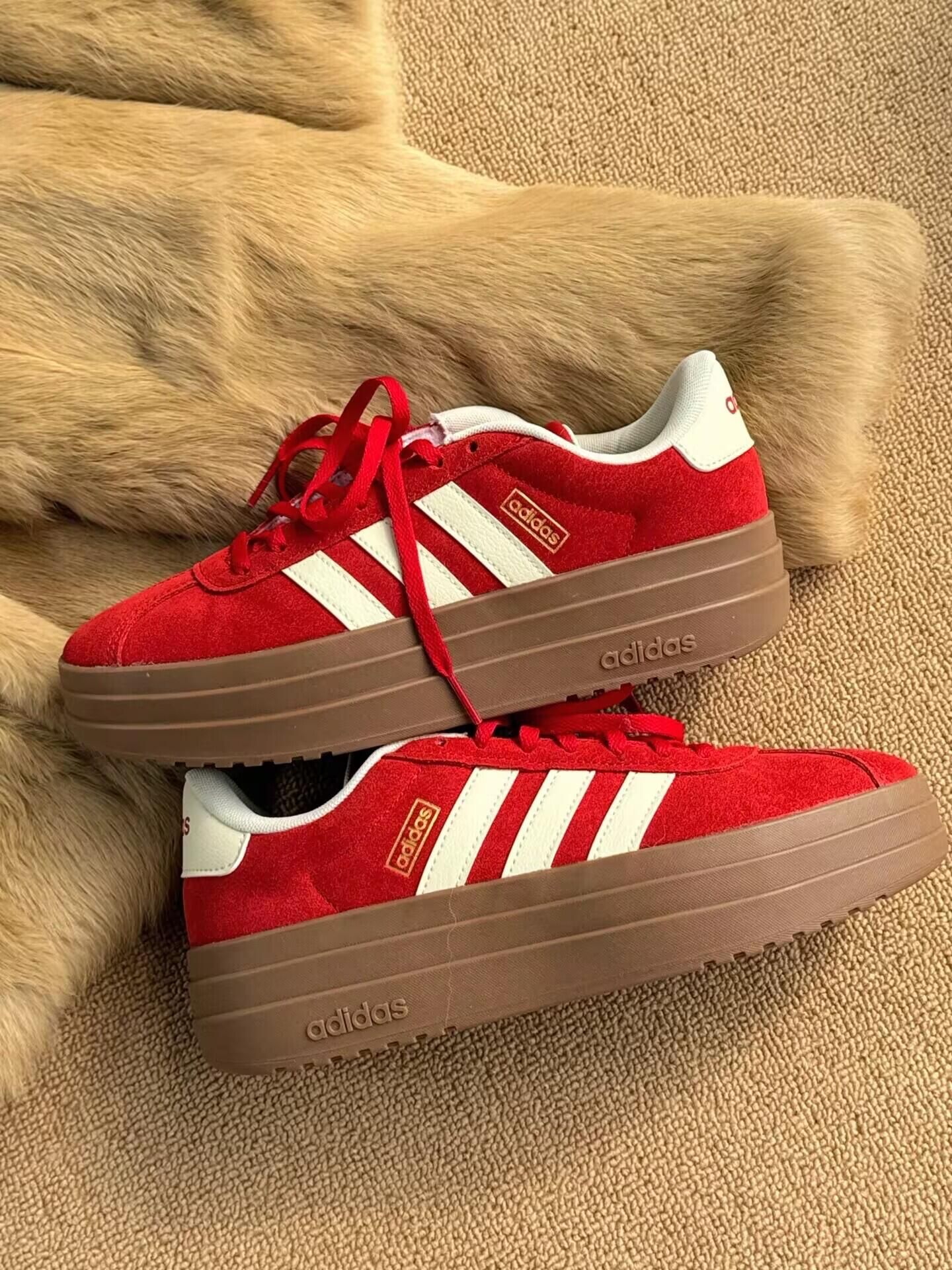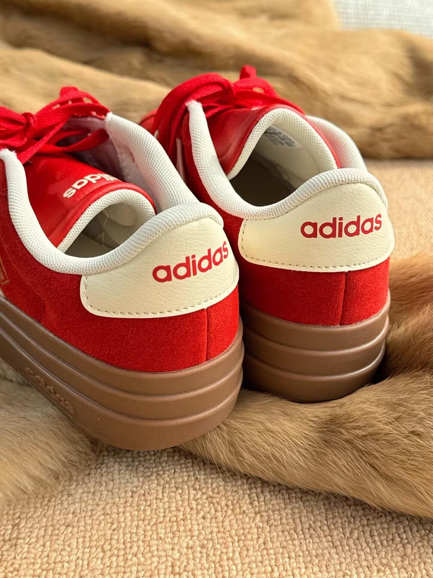 新年就要穿点红! 阿迪介双厚底板鞋❤️就很合适呀 正红色喜庆又显白 节日氛围感满满🥰 增高有3-4cm的样子 对小个子很友好 搭配皮草/大衣🧥炒鸡显贵气~