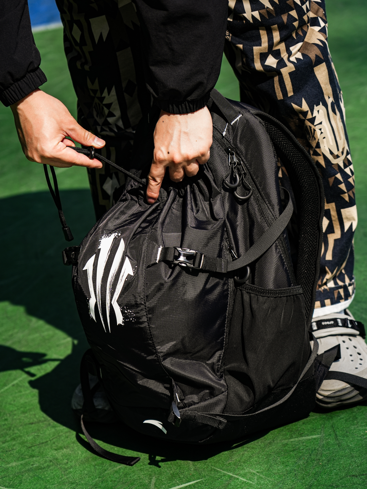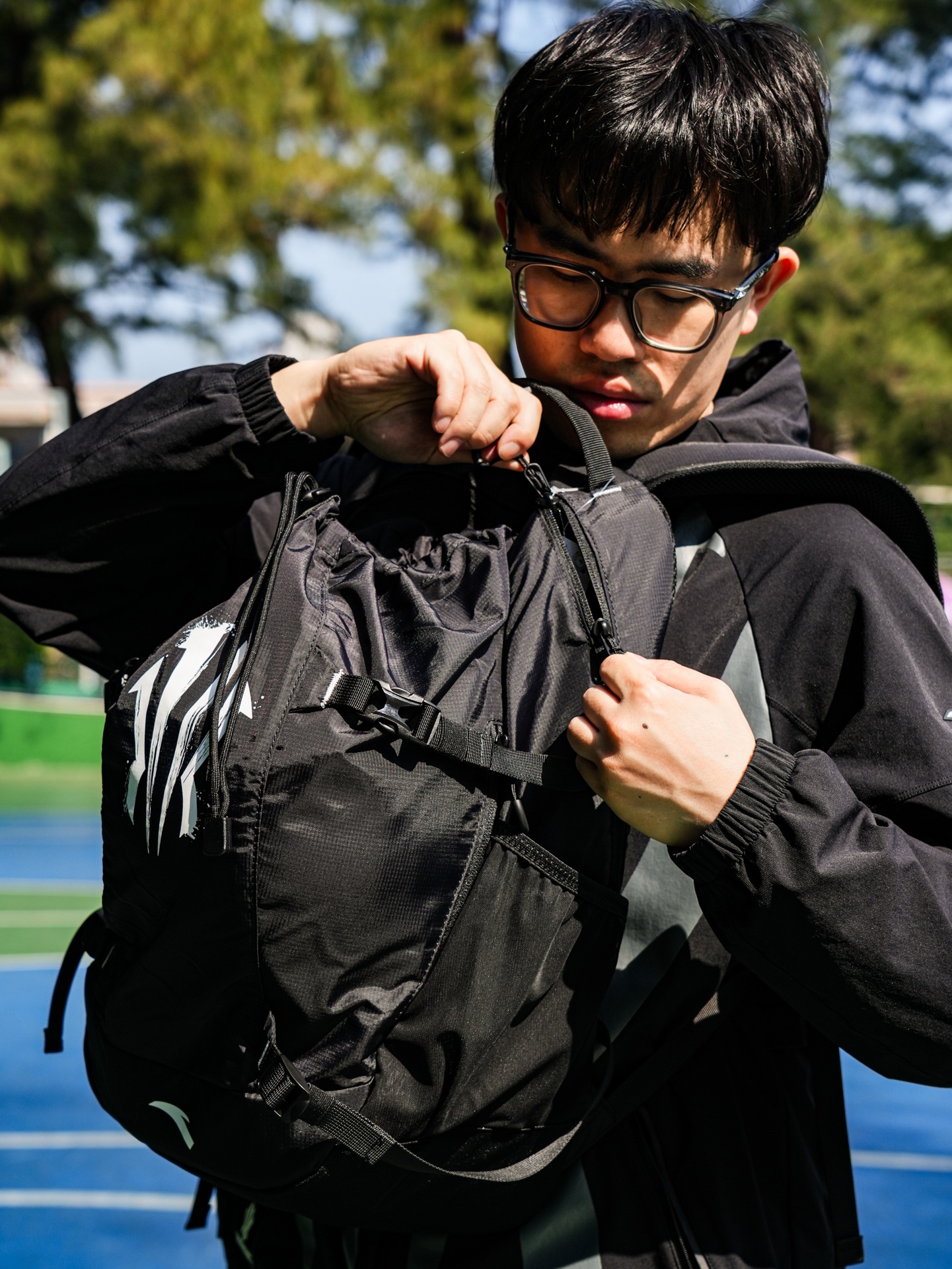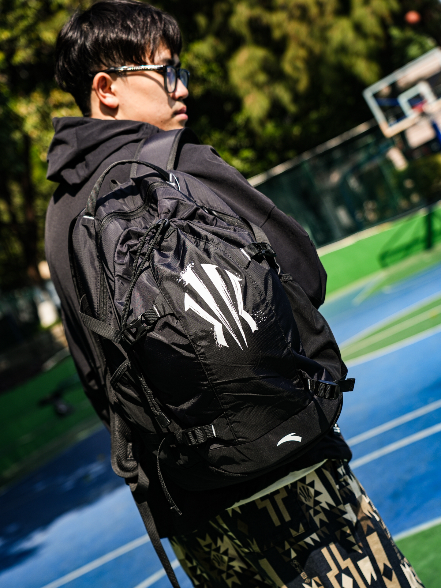 哦哟~穿上这么一套安踏欧文系列的衣裤包去球场 哪个小孩哥不会被馋哭?尤其是这安踏欧文书包也太宝藏✨ 涤纶➕PU的面料耐用抗撕裂 摸起来也滑滑的~ 书包的容量很是可观 除了打球的装备还能塞下一个篮球 束绳的细节 有种梦回初高中热爱背束绳包的时光 除了束绳外还有着拉链的格口 可放置随身物件 很是实用 黑色为主色调也更为耐脏 让白色的欧文之盾logo更醒目 家里的小孩哥新年礼物要是能收到这个宝藏背包 能...