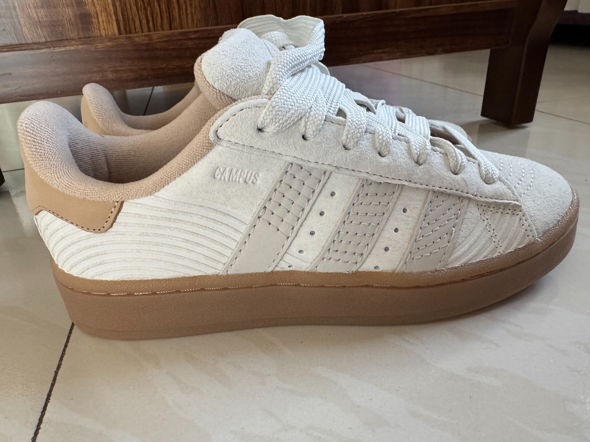 姐妹们!我宣布今年的“氛围感鞋王”就是这双adidas Campus 00s!奶fufu的米白+生胶底,上脚直接温柔到骨子里,温柔韩系、美式复古、clean fit都能轻松拿捏😭 ✨ 颜值暴击:把“温柔感”焊在脚上 • 奶咖配色:米白翻毛皮+浅棕后跟+生胶底,像一块刚出炉的奶咖面包,软乎乎的质感直接戳中审美点。 • 复古细节:鞋身的压纹线条、粗鞋带、加厚鞋舌,都是90s复古味儿,自带滤镜,随便...