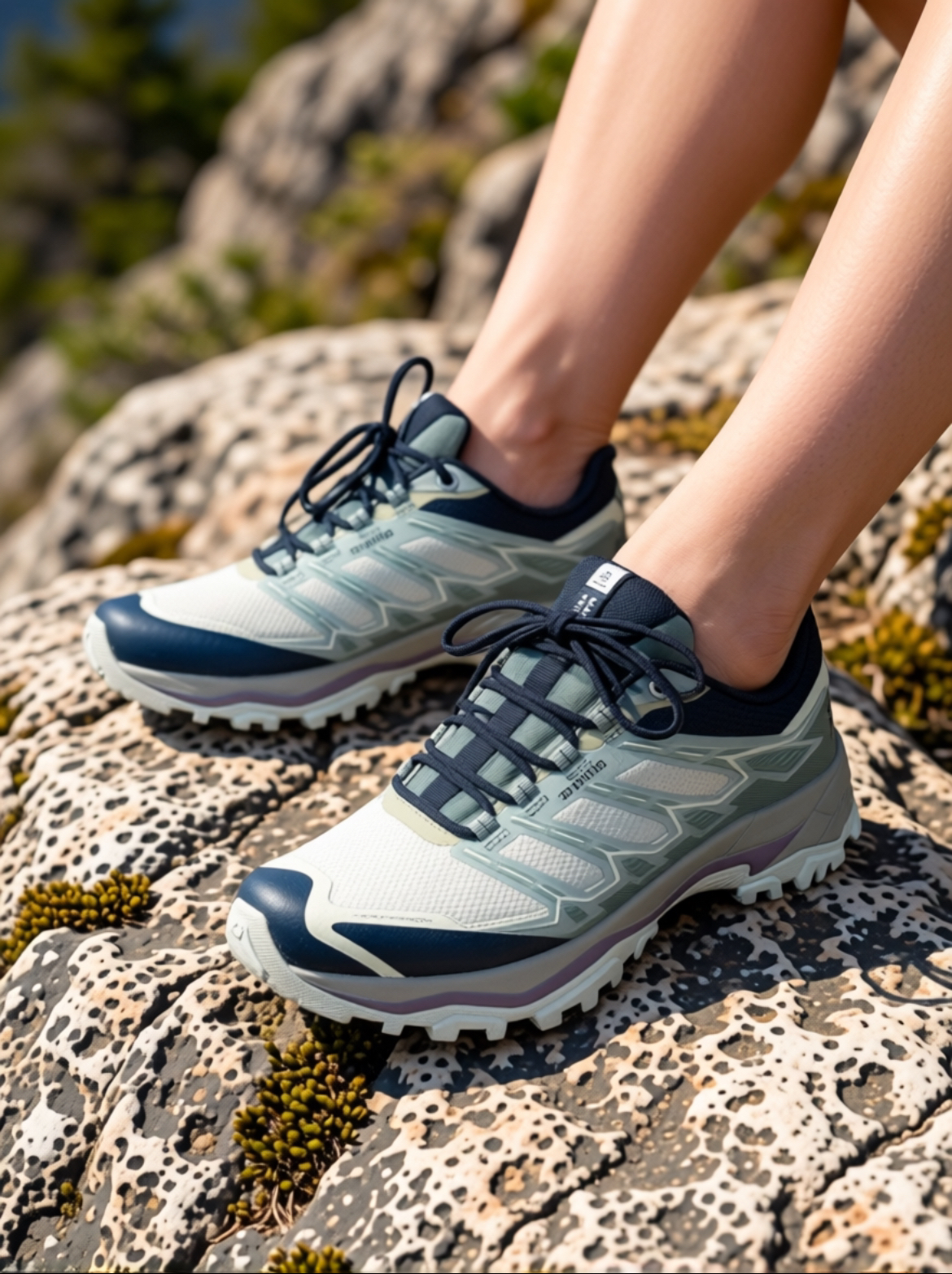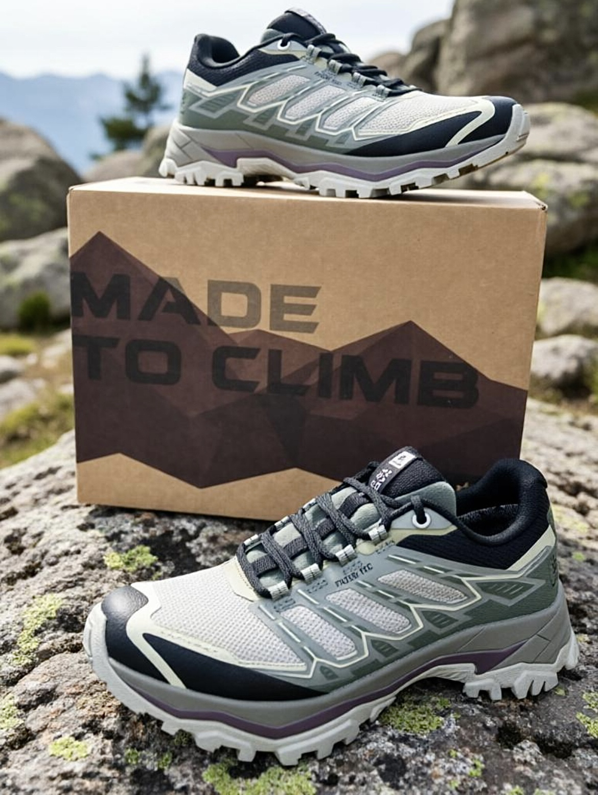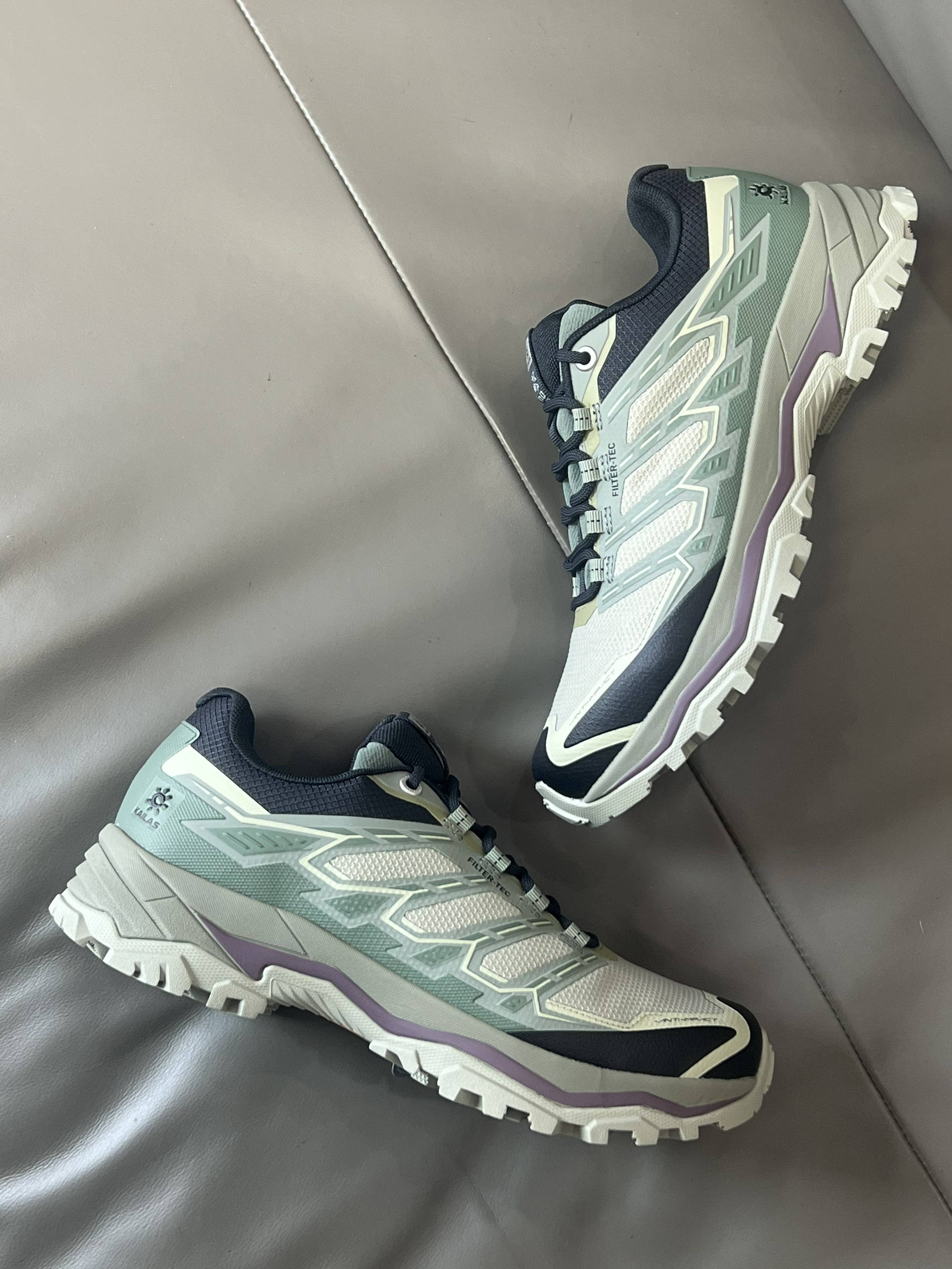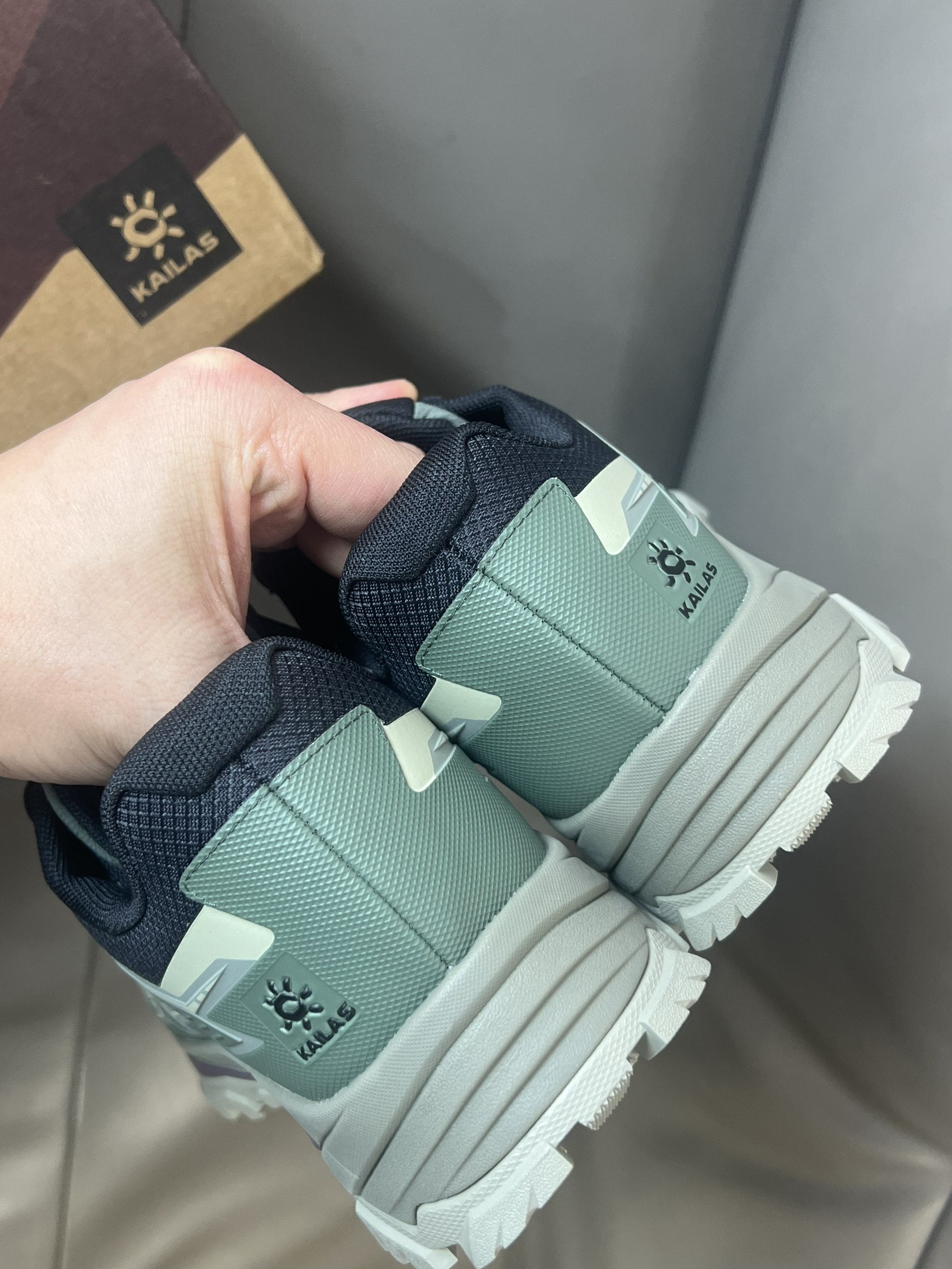 这款凯乐石的鞋 配色比较青春朴素 大底耐磨防滑 鞋面材质防水防雨 在户外活动是不二之选!