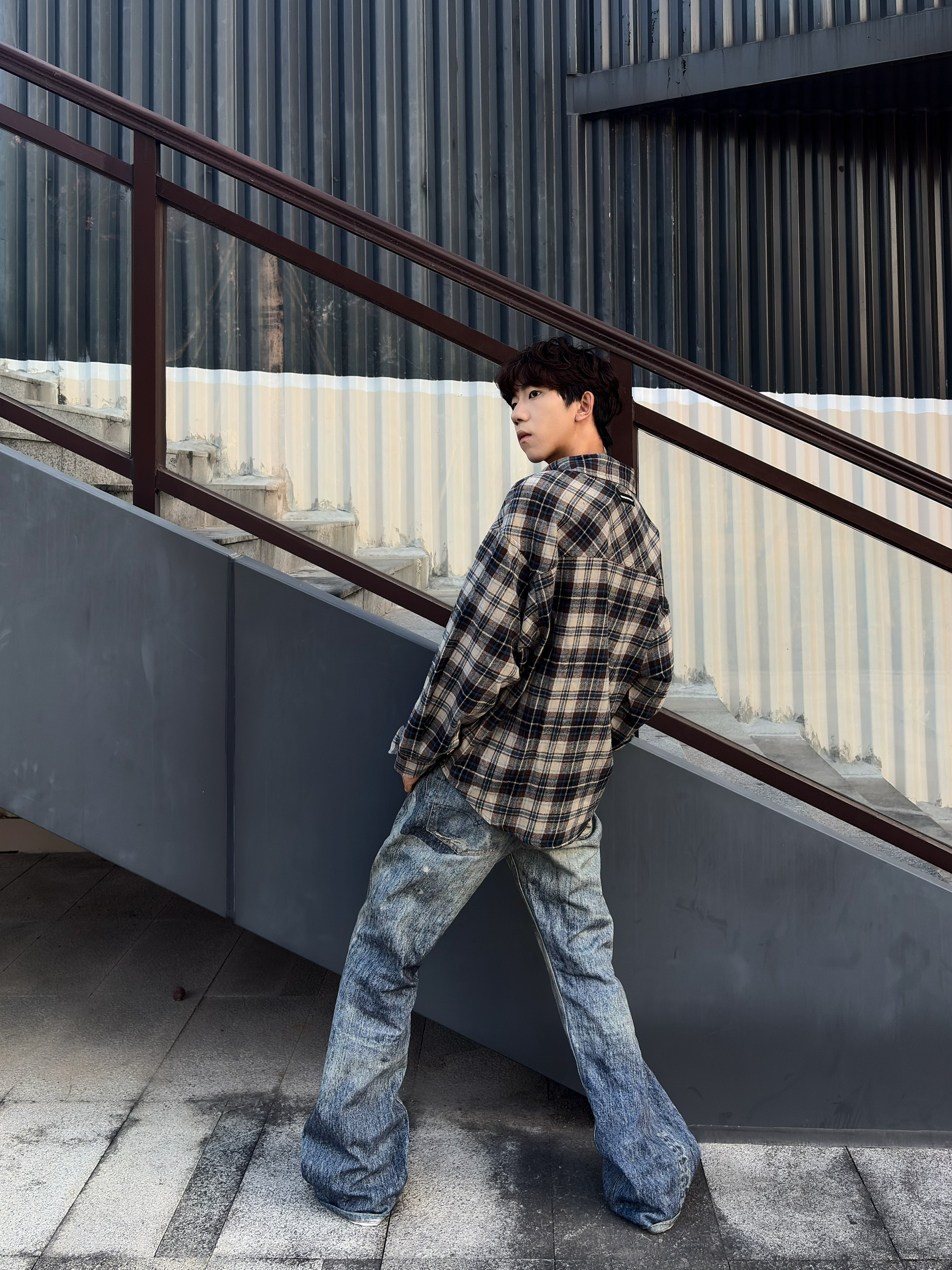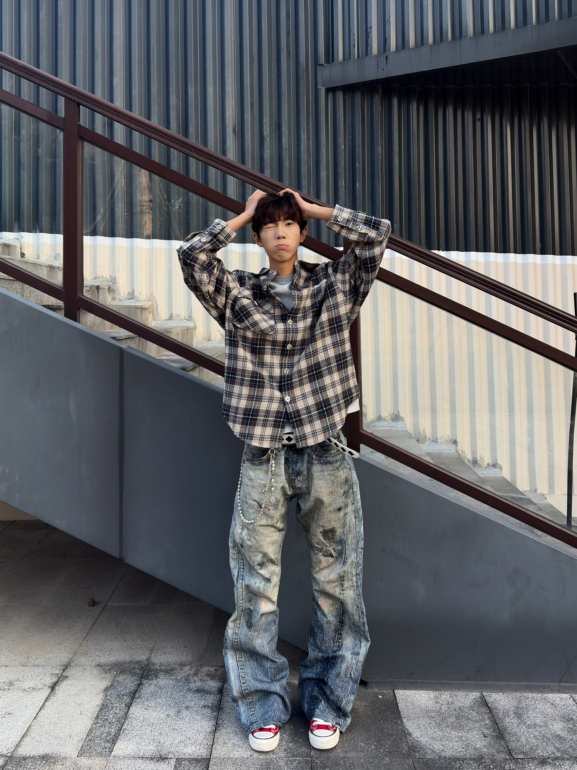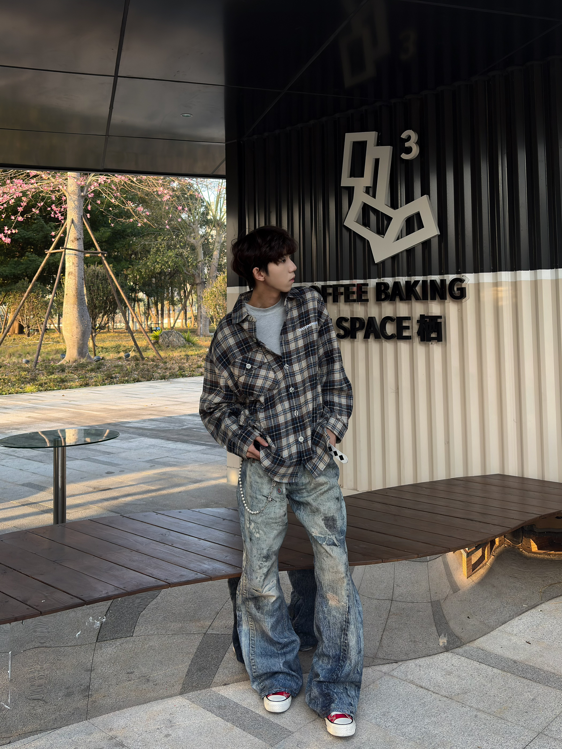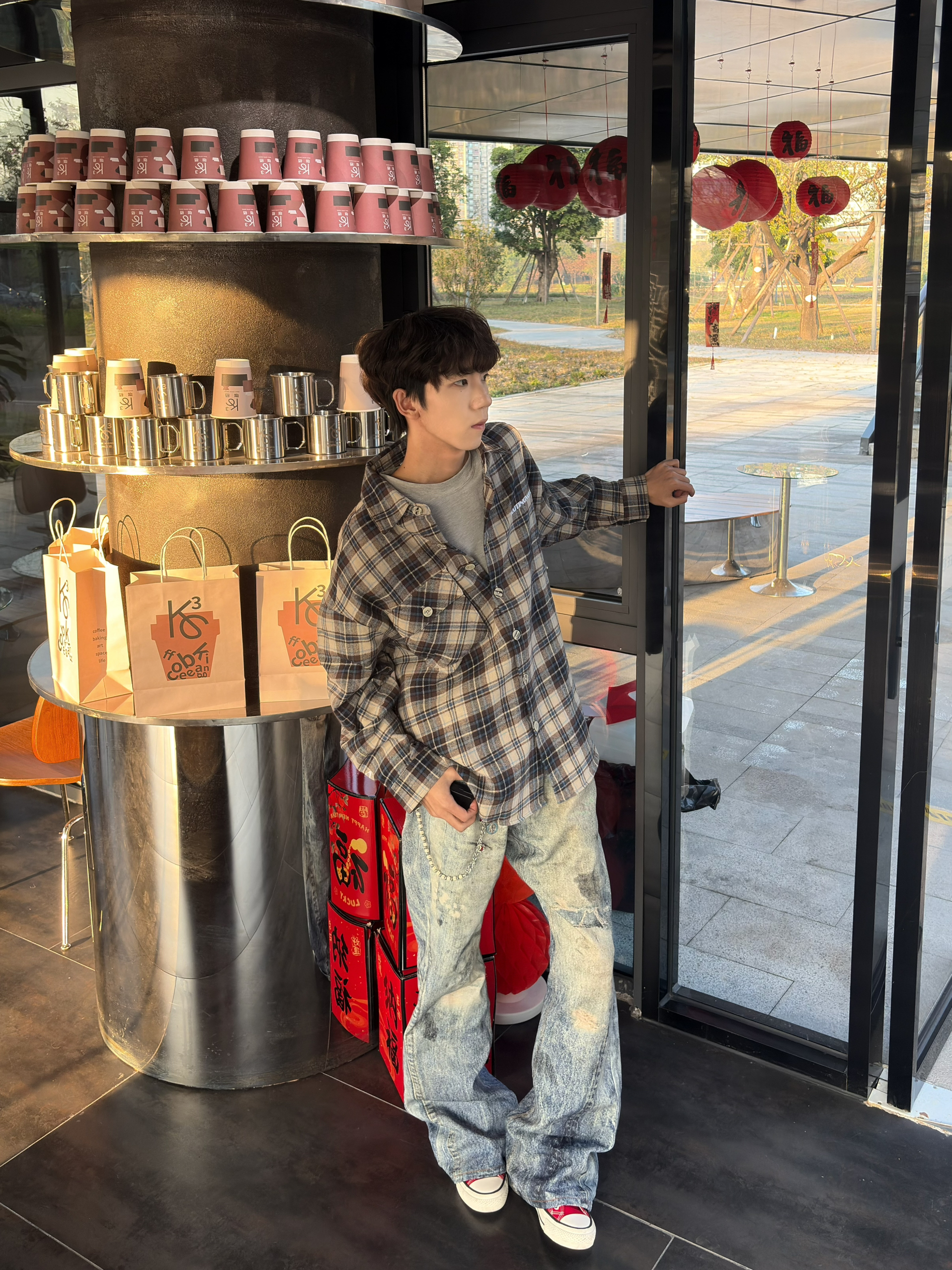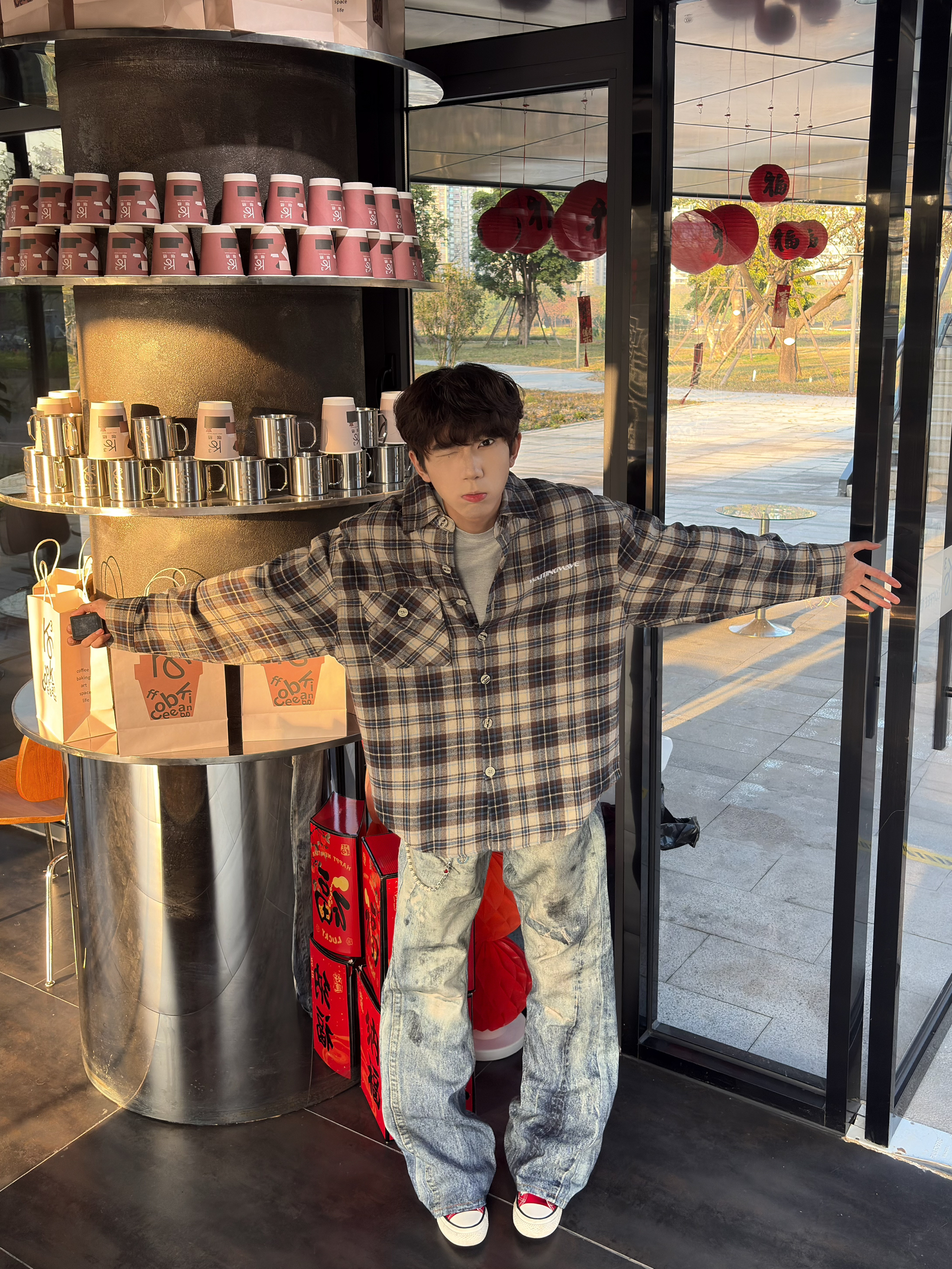 哈喽👋今天分享一套超适合春日的松弛感穿搭 把复古格纹和街头感融合得刚刚好❗️ 出街喝咖啡也能轻松出片~ 👔:WAITINGWAVE/候浪 👖:BLOOD RULE 🚶博主身高 178cm 体重55kg 👔M|👖L 可参考~