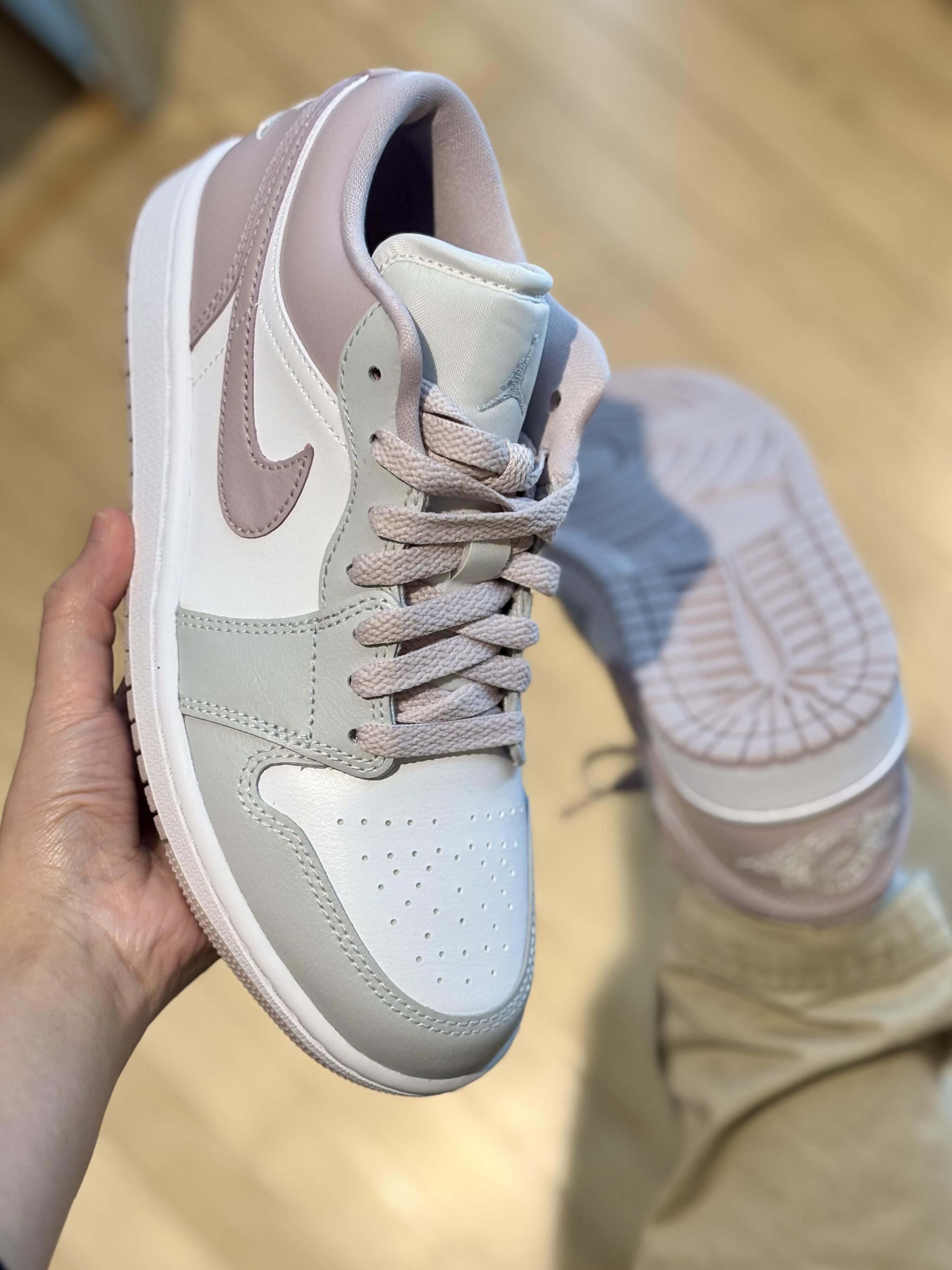 这双AJ1 Low真的把莫兰迪色系玩明白了 灰调藕紫搭配纯白鞋身,温柔到骨子里 低帮设计对小个子超友好 搭配卡其色工装裤,随性又不费力