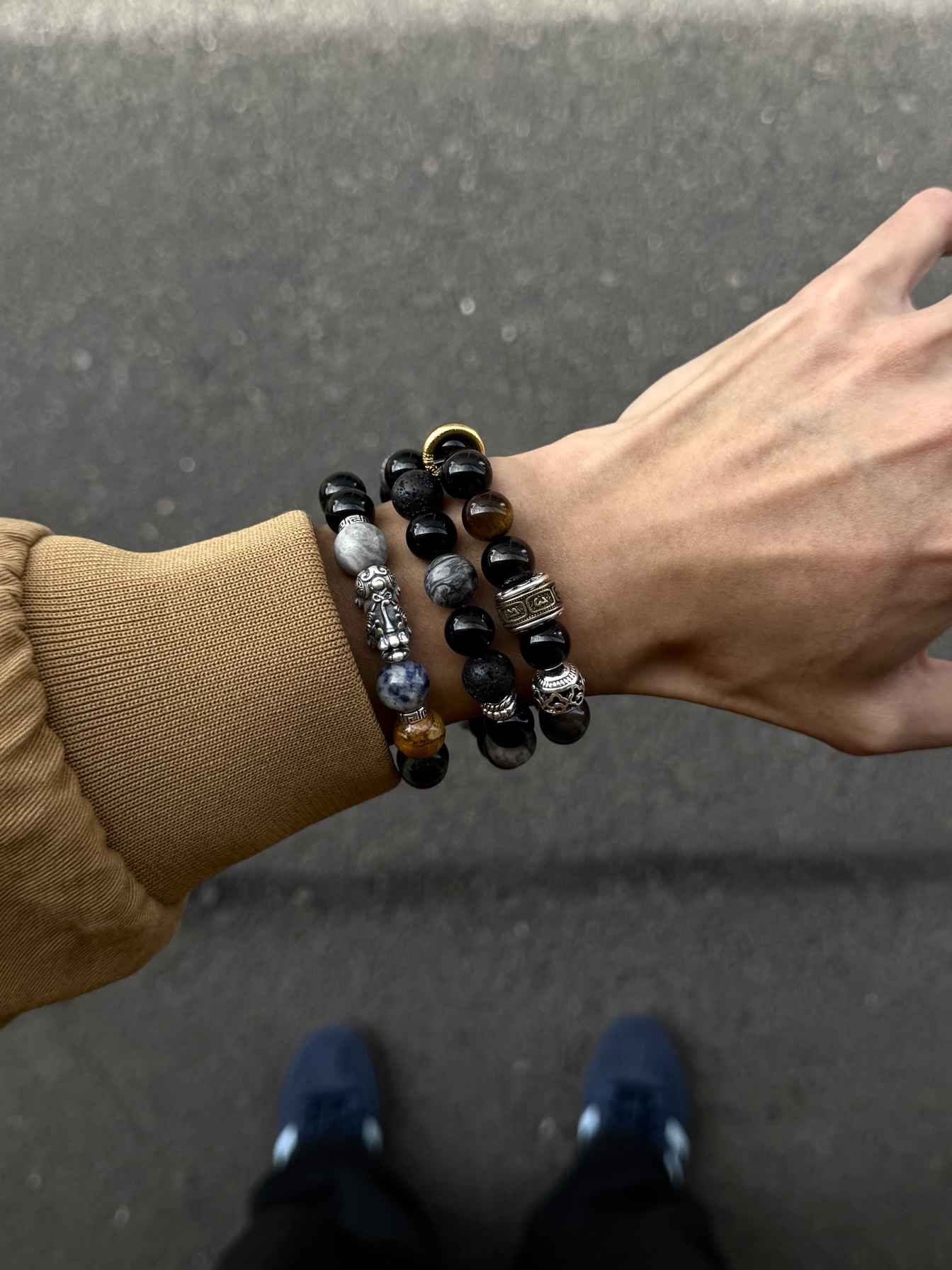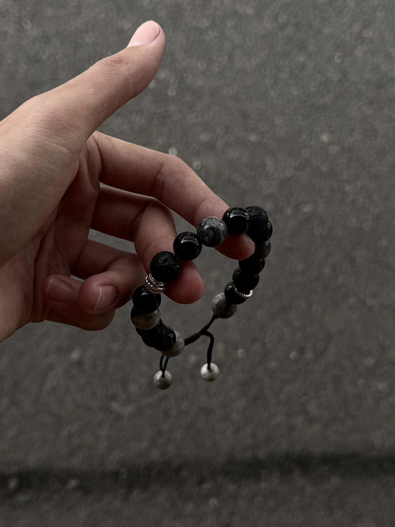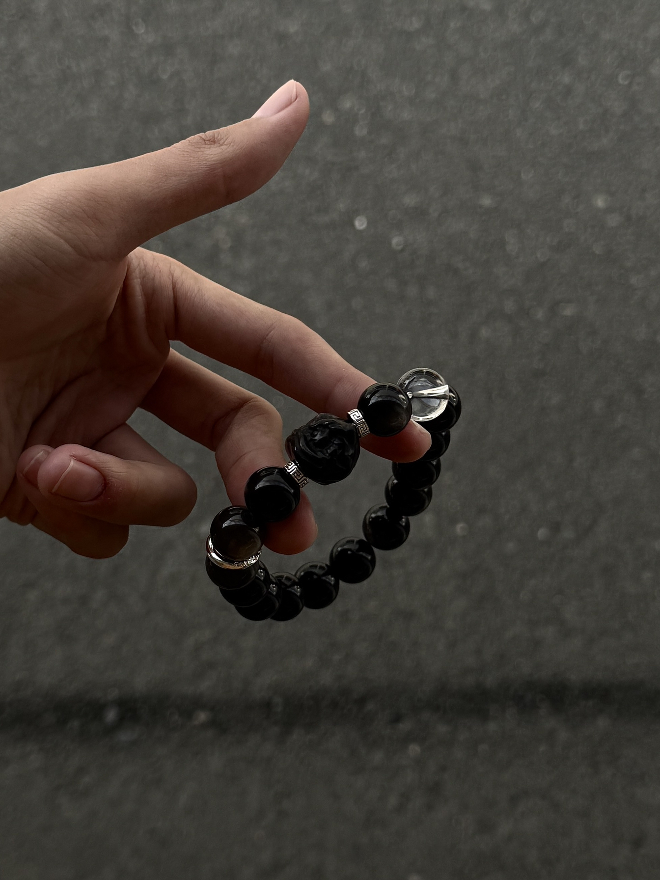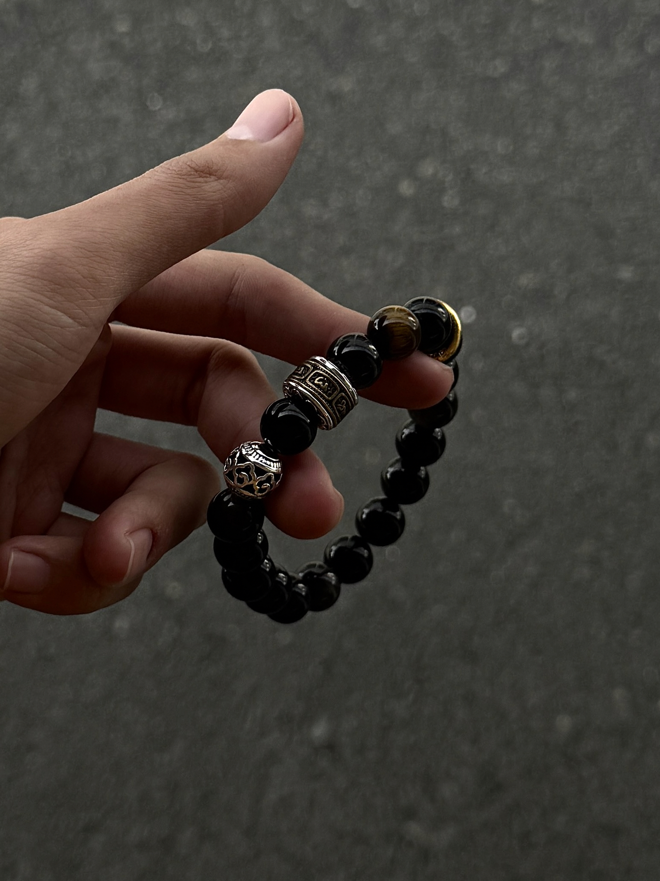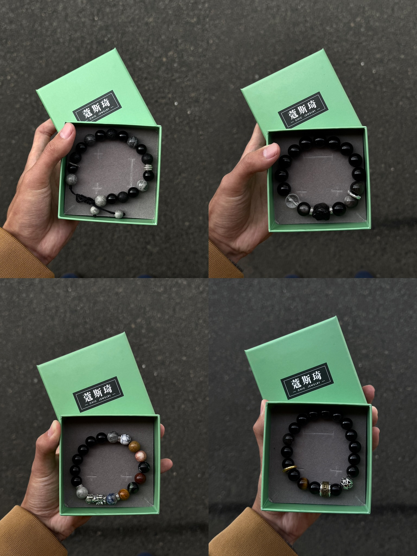 这种黑曜石手串还蛮适合男生的 串珠颗颗饱满 拿到手里蛮有质感 日常戴低调有格调 平时盘一盘还挺解压的 不用特意搭配 随手一戴就很有氛围感 新年戴着去拜年 跟朋友聚会逛街都倍有面 像我现在就天天戴在手上