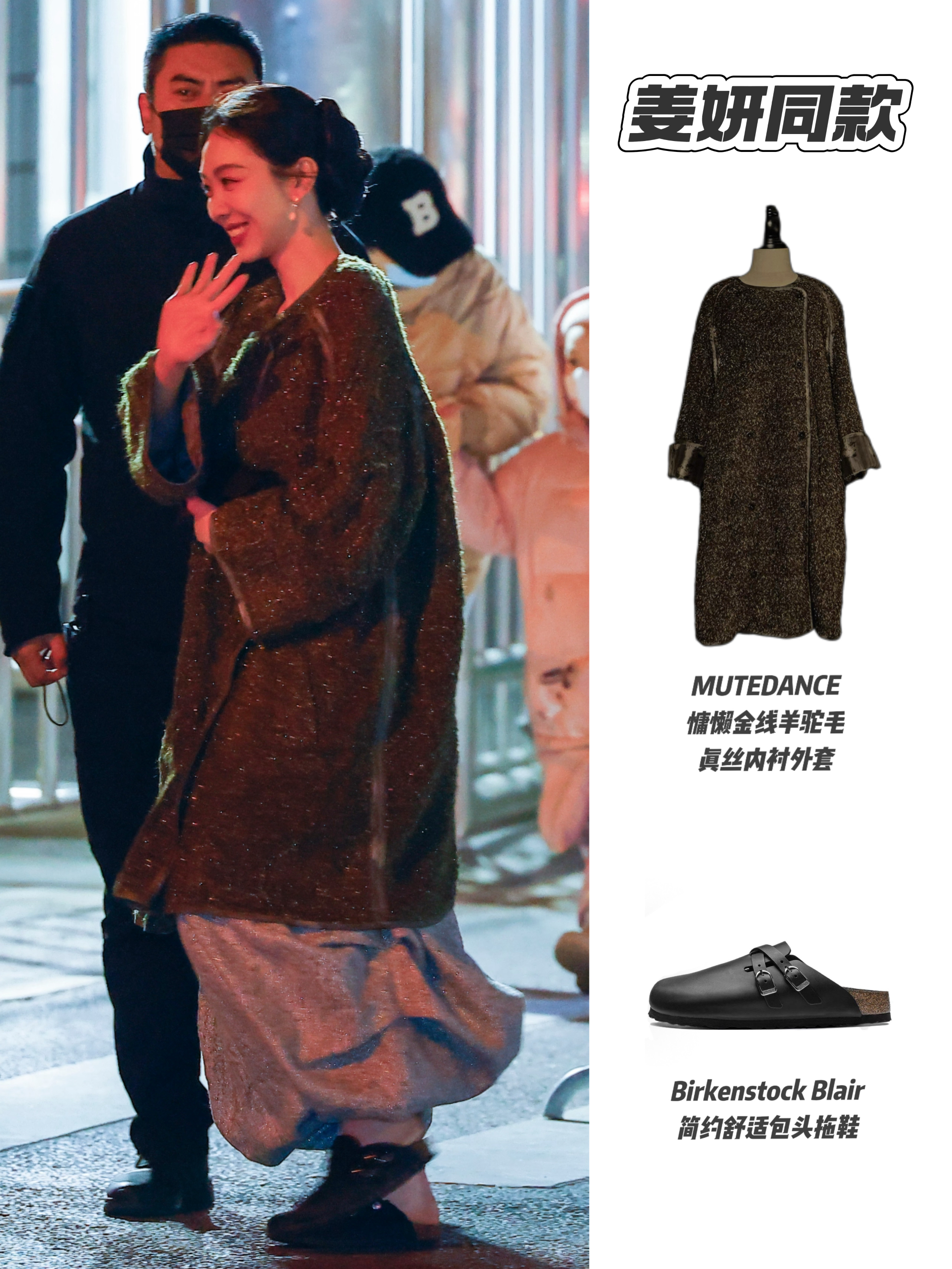松弛感+明媚感双在线!姜妍春晚备播这身穿搭真是温柔又显贵气✨ 金线羊驼毛大衣自带细闪光泽,在夜色里也透着高级感;搭配半裙和勃肯包头拖,随性又不失格调。整体造型色调温润柔和,松弛又明媚~
