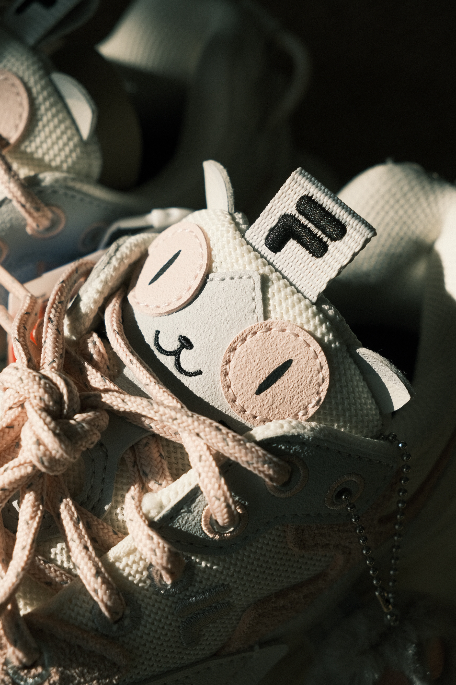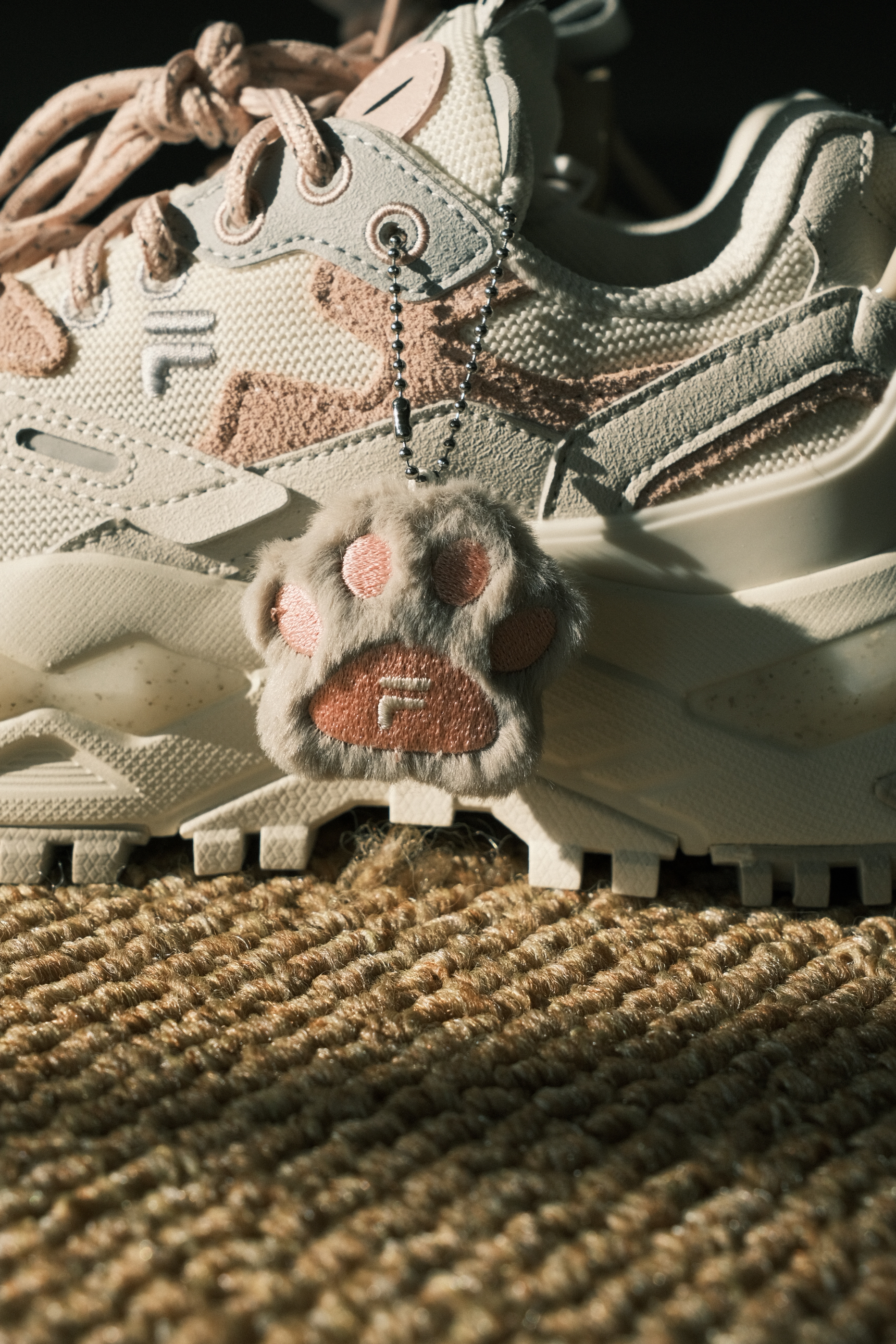 谁能拒绝带猫爪挂饰的FILA FUSION猫爪鞋?🐾 米白粉的配色温柔到骨子里,厚底增高又显腿长,脚感像踩在云朵上一样软乎乎。不管是配卫衣还是小裙子,都能瞬间变身甜妹,走在路上都想蹦蹦跳跳~