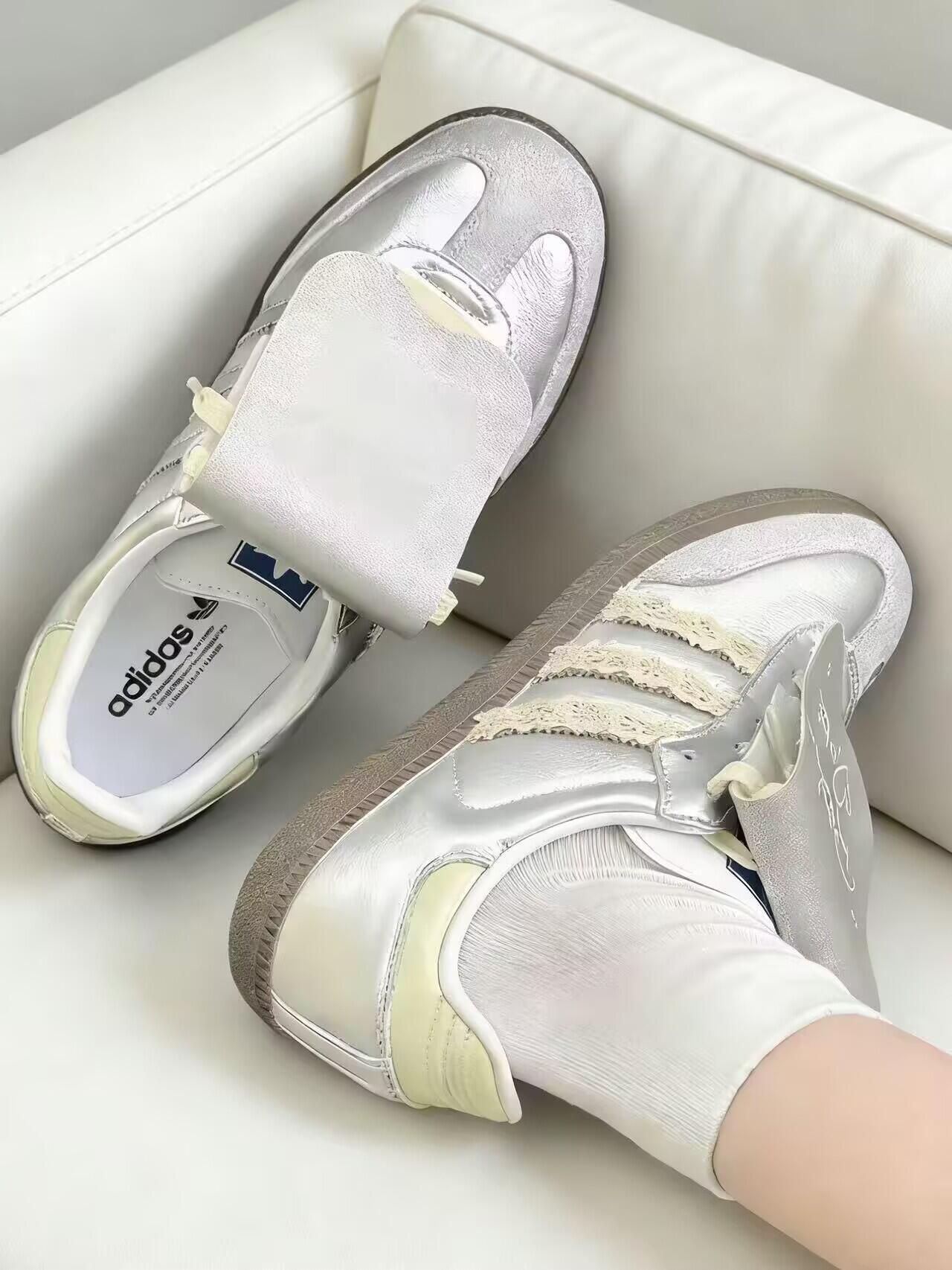 这双橄榄绿灯芯绒贝壳头真的长在审美上,低饱和橄榄绿配米白鞋头,温柔又有质感,搭休闲裤、工装裤都巨出片,粗麻绳鞋带自带复古感,系一次能管好久不松,鞋身拼接的细节也做得很精致,随手搭都氛围感拉满 小缺点也客观说]:灯芯绒面轻微粘毛,出门前简单粘一下就好;鞋头偏硬,宽脚姐妹穿前建议松松鞋带;鞋帮偏低,春秋搭长袜就刚好,整体完全不影响颜值适配度。 为颜值入完全不亏,小细节稍作注意,日常穿超合适。