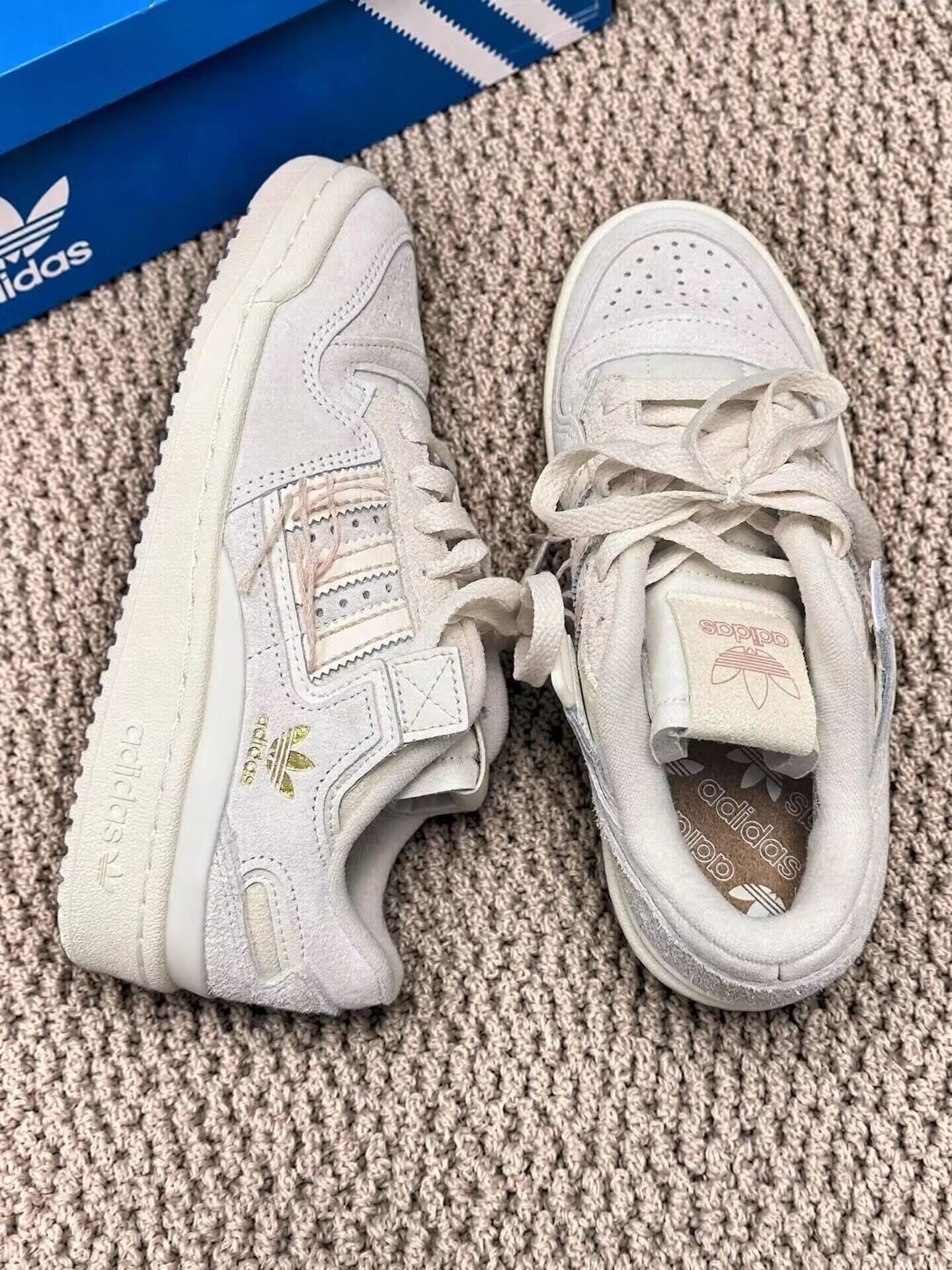 本篇笔记关联了adidas Originals Forum 板鞋 轻便复古防滑时尚魔术贴篮球风 线头/米色/米白等商品,为用户提供真实的使用体验和购买参考。