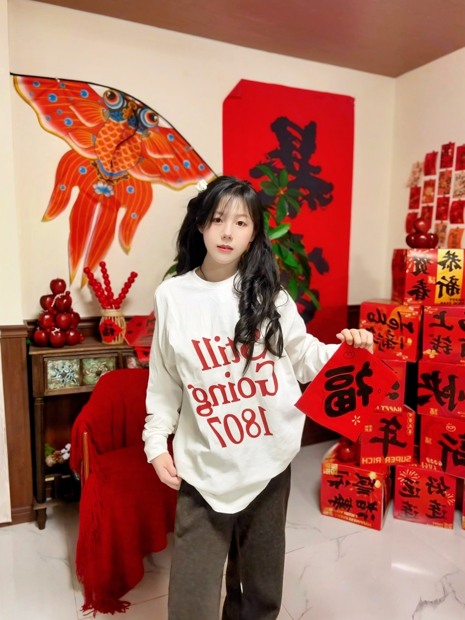 身上穿的1807家的卫衣😻 宽松版型对各种身材都很包容 面料软糯亲肤 ^_^ 贴身穿完全不扎 日常宅家或出门都很舒服 ! 正面的红色字母印花很有设计感 复古又时髦 😻 随便搭条休闲裤就很出片 过年穿它拍照 氛围感直接拉满我身高160 体重55kg 穿m码