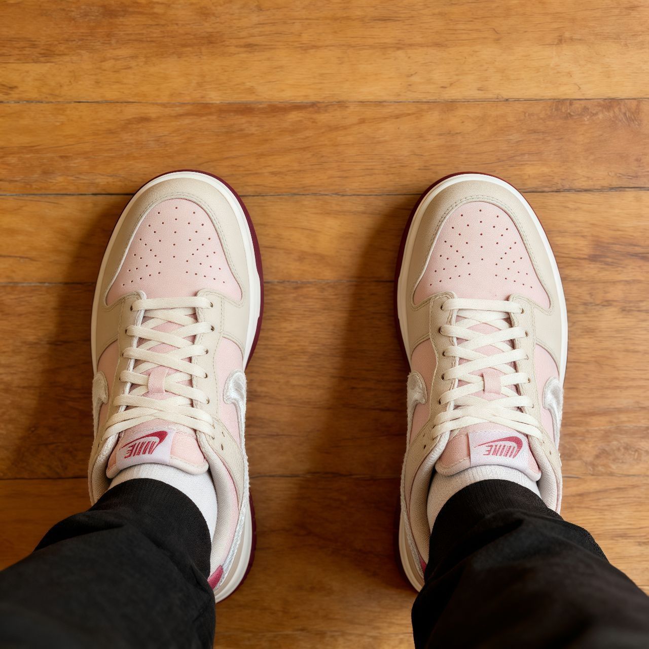 最近新入的这双鞋,配色真的很戳我——米白、浅绿、酒红的组合,不扎眼却很有味道,细节处越看越喜欢。 特意穿去走了段路测试脚感,鞋底厚度适中,踩下去是中等偏软的脚感,走了半小时脚底板完全没酸胀感,日常通勤穿应该没问题。 鞋面是皮质加织物的拼接,清洁起来挺方便,污渍用湿纸巾擦一擦就能搞定。穿到第五天,鞋头出现了一点轻微的褶皱,这也是皮质鞋面的正常现象,不凑近看基本察觉不到。 整体来说,它不算一双能带来惊...