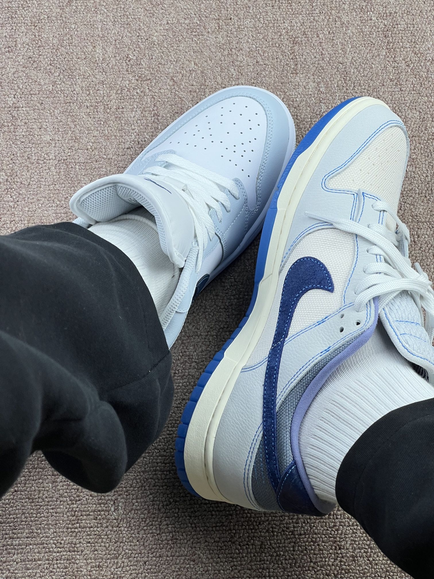 本篇笔记关联了Air Jordan 1 板鞋 运动休闲鞋 复古潮流支撑合成革 男款/浅蓝色/白色、Nike Dunk 板鞋 经典复古百搭 白色/浅蓝色等商品,为用户提供真实的使用体验和购买参考。