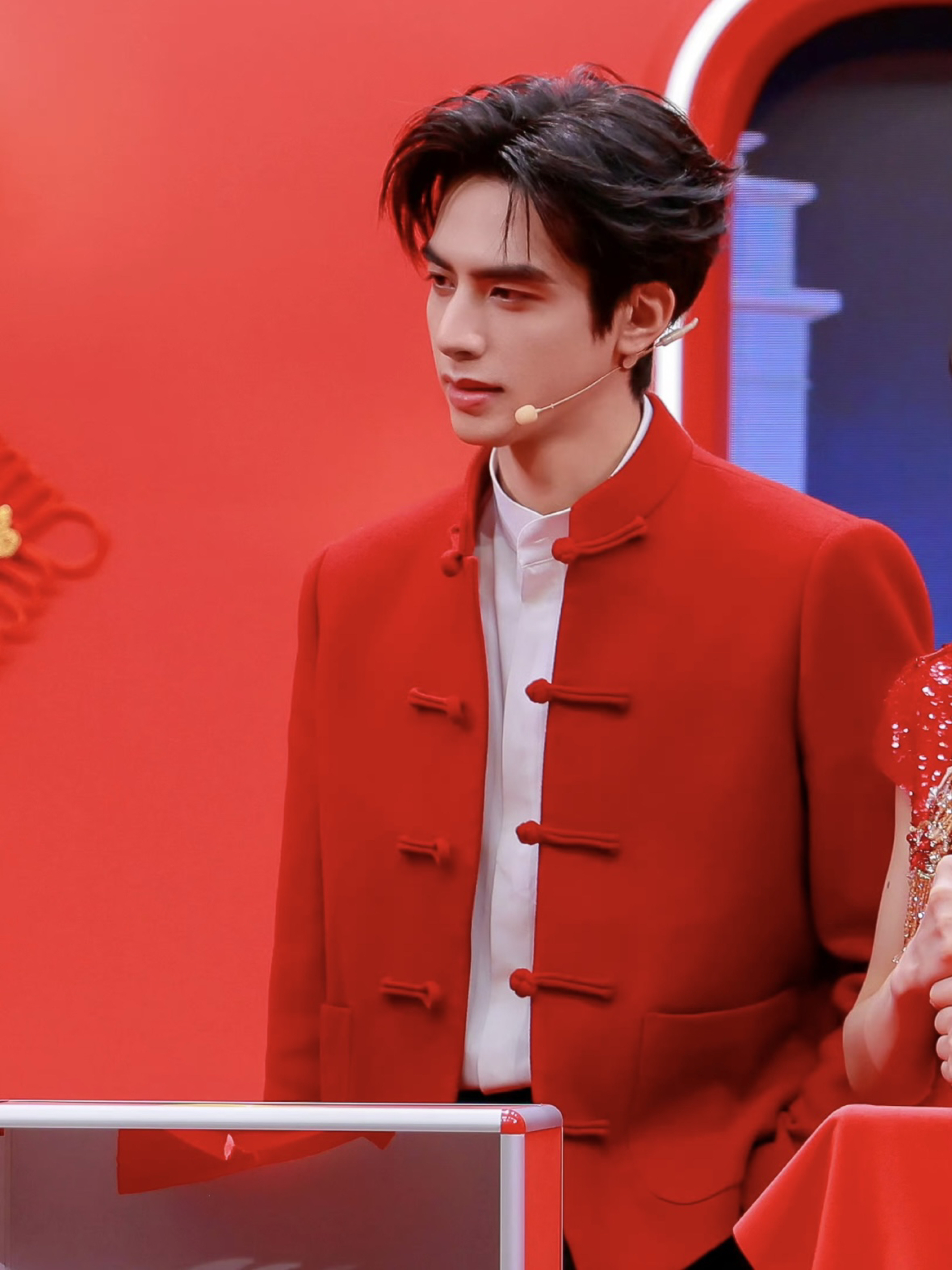 宋威龙《下一站春晚》这套新中式造型国风正气感满满❤️ ELVIS.CHEUNG的红色立领盘扣大衣,将传统盘扣元素与利落剪裁结合,复古又摩登。内搭简约白衬衫,干净高级。 高挑身形撑得起大衣版型,俊朗五官搭配新中式格调,年味浓郁又不失清冷贵气🥰