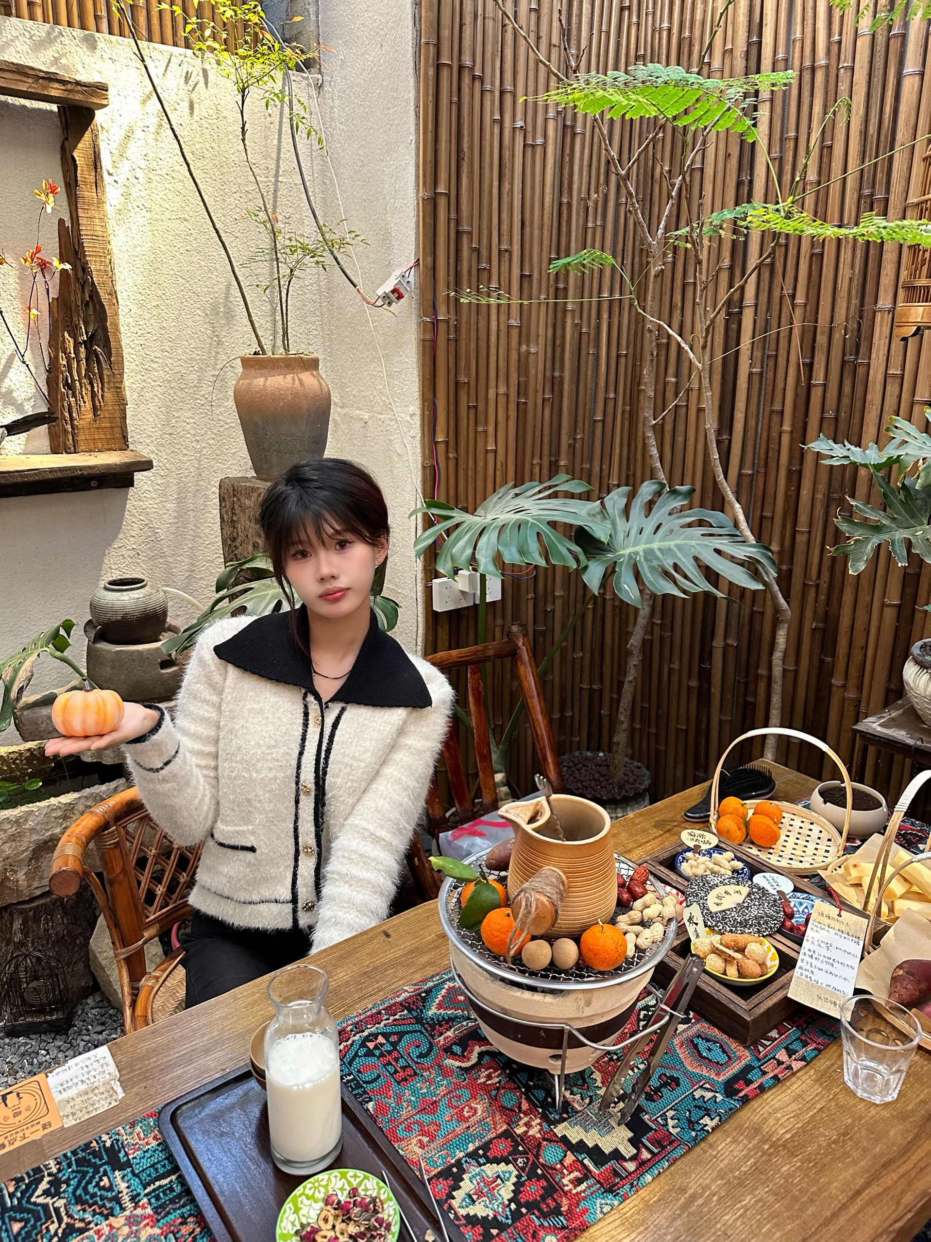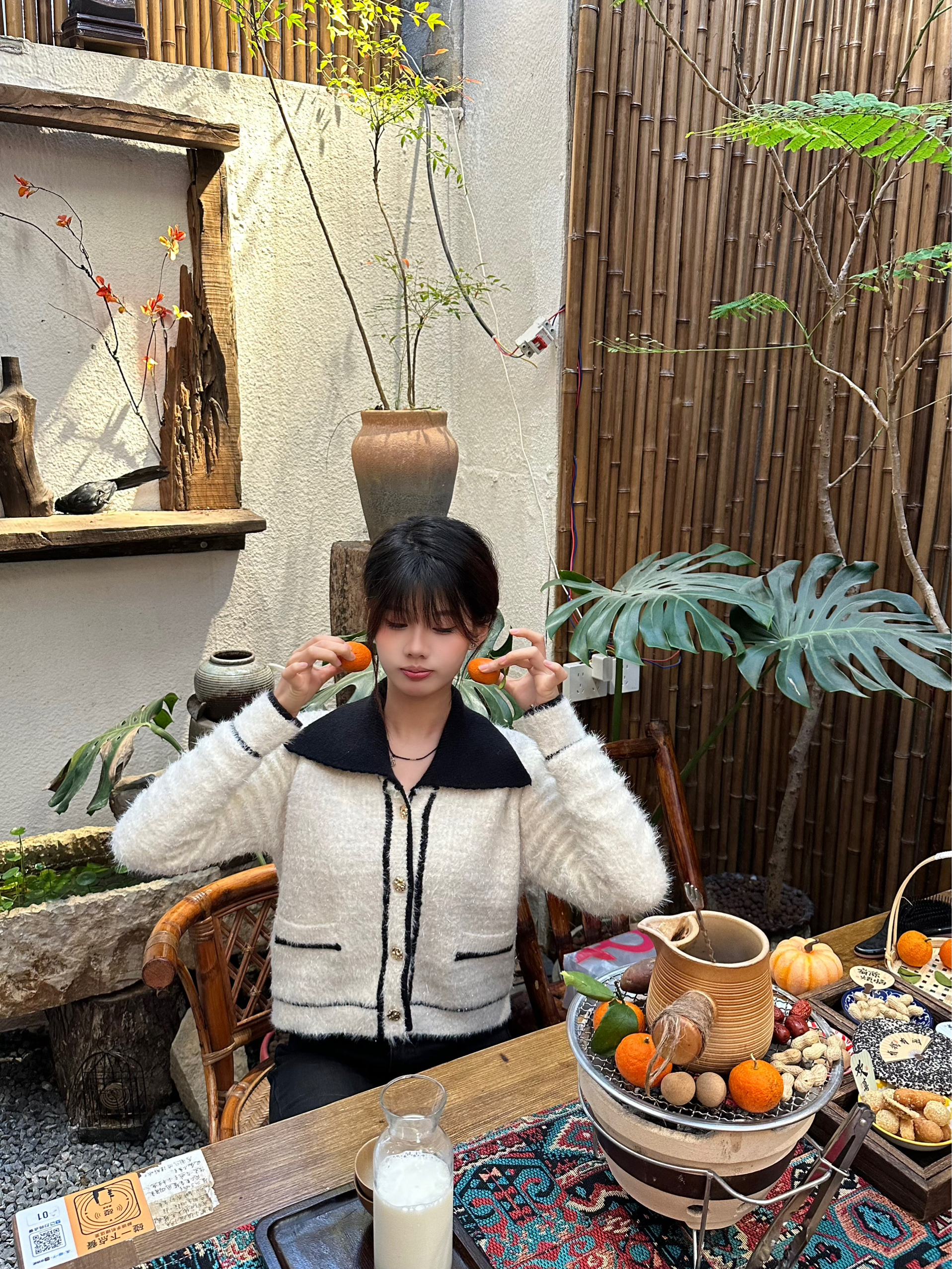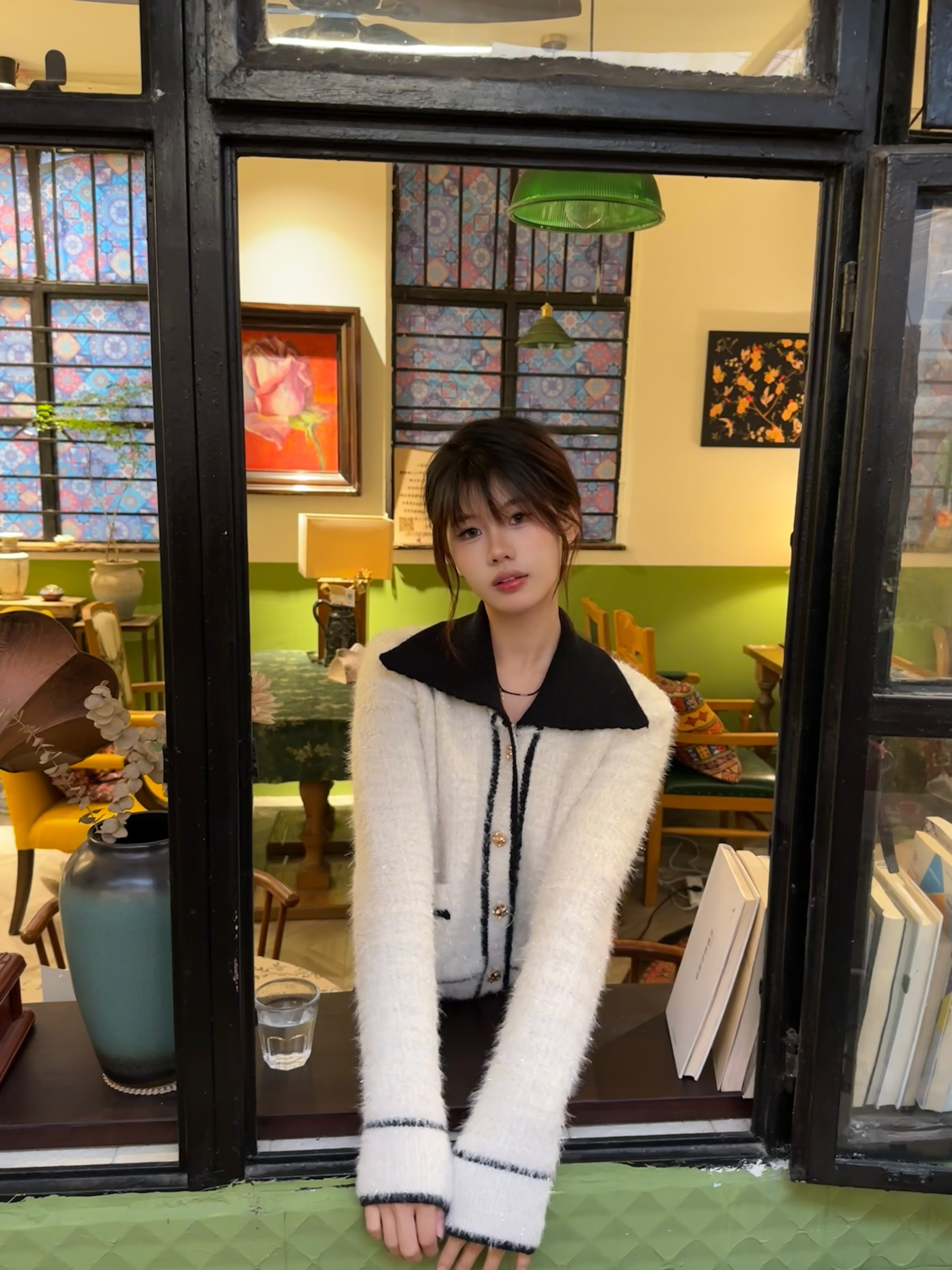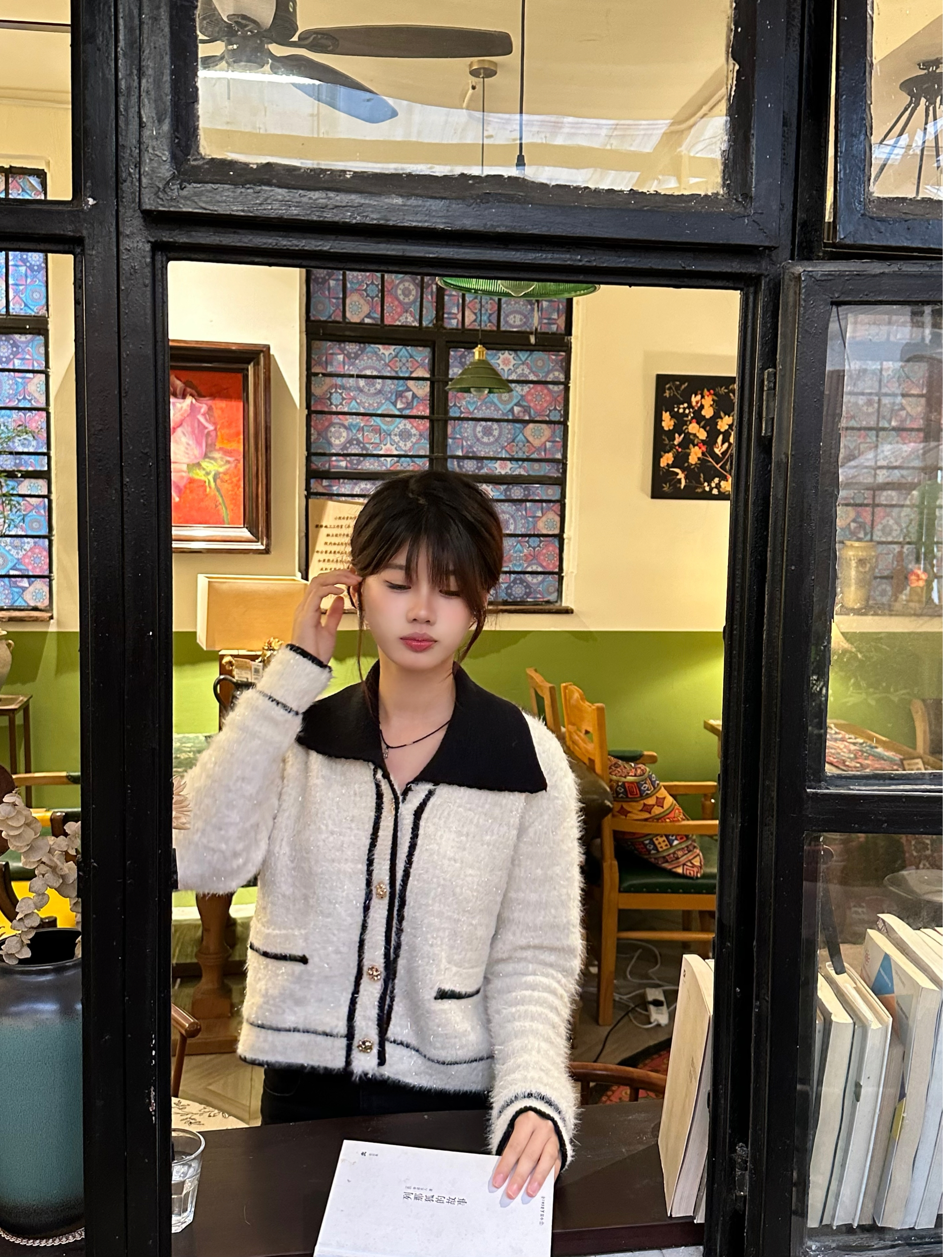 在充满烟火气的小店里,把时间慢下来。 白毛衣配黑领,是冬日里的温柔注脚。 一杯热饮,一份甜点,和自己好好相处。