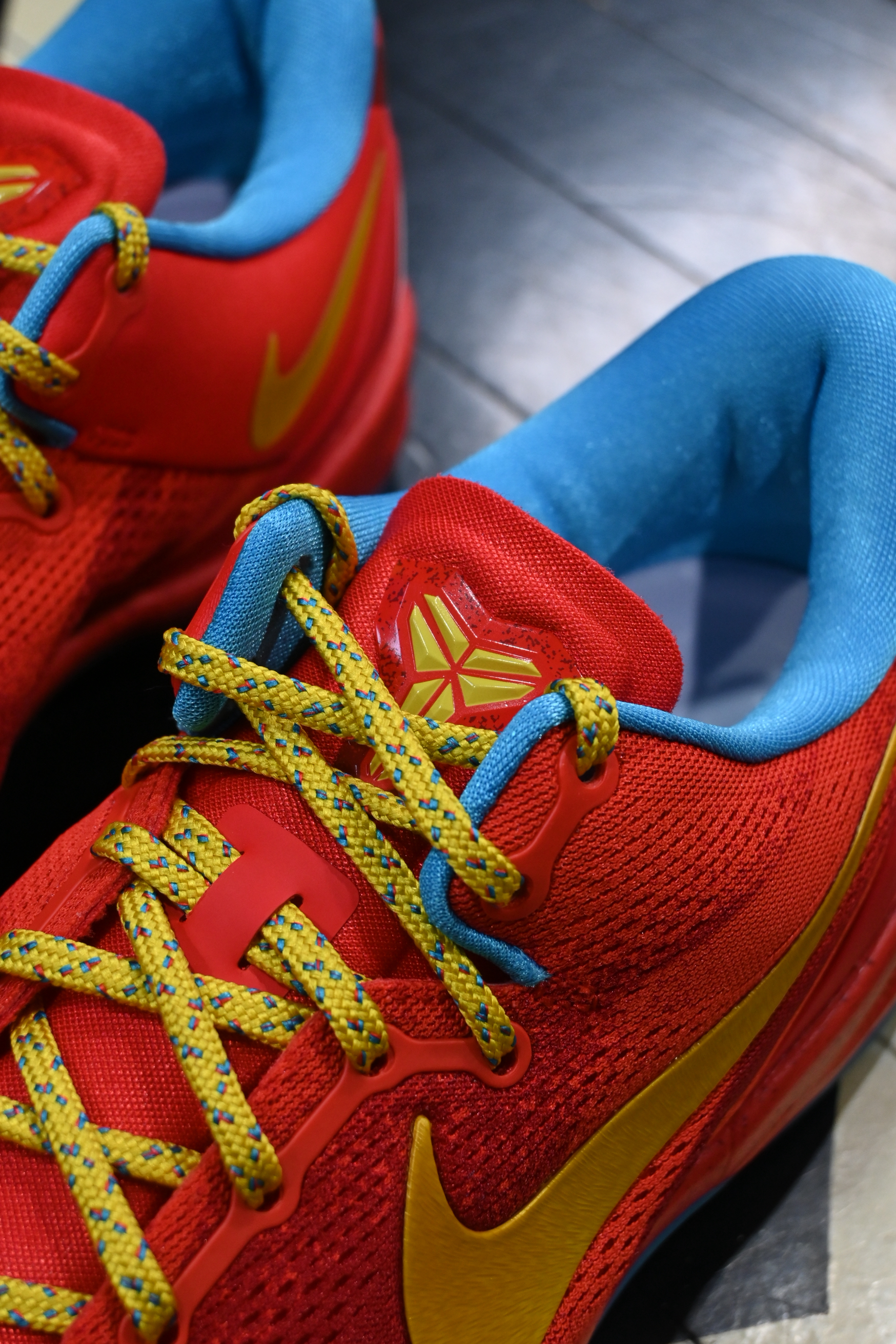 大年初一兄弟们新年快乐!马年大吉! 今天带来的是kobe8马年限定,红金的配色喜气洋洋,金色的钩子上还有马毛雕刻,薄鞋舌原汁原味,内侧有马年图腾印刷,呼应马年 蓝色的内衬和鞋底撞色倒是挺有意思,如果当年不这么设计,可能还少了点味道,不得不佩服nike玩配色这方面真是独一档 现在打球少了,对于实战方面不一定能做到深度体验以及详细的实战感受,但也尽可能的更新自己喜欢的球鞋说说感受,讲讲配色
