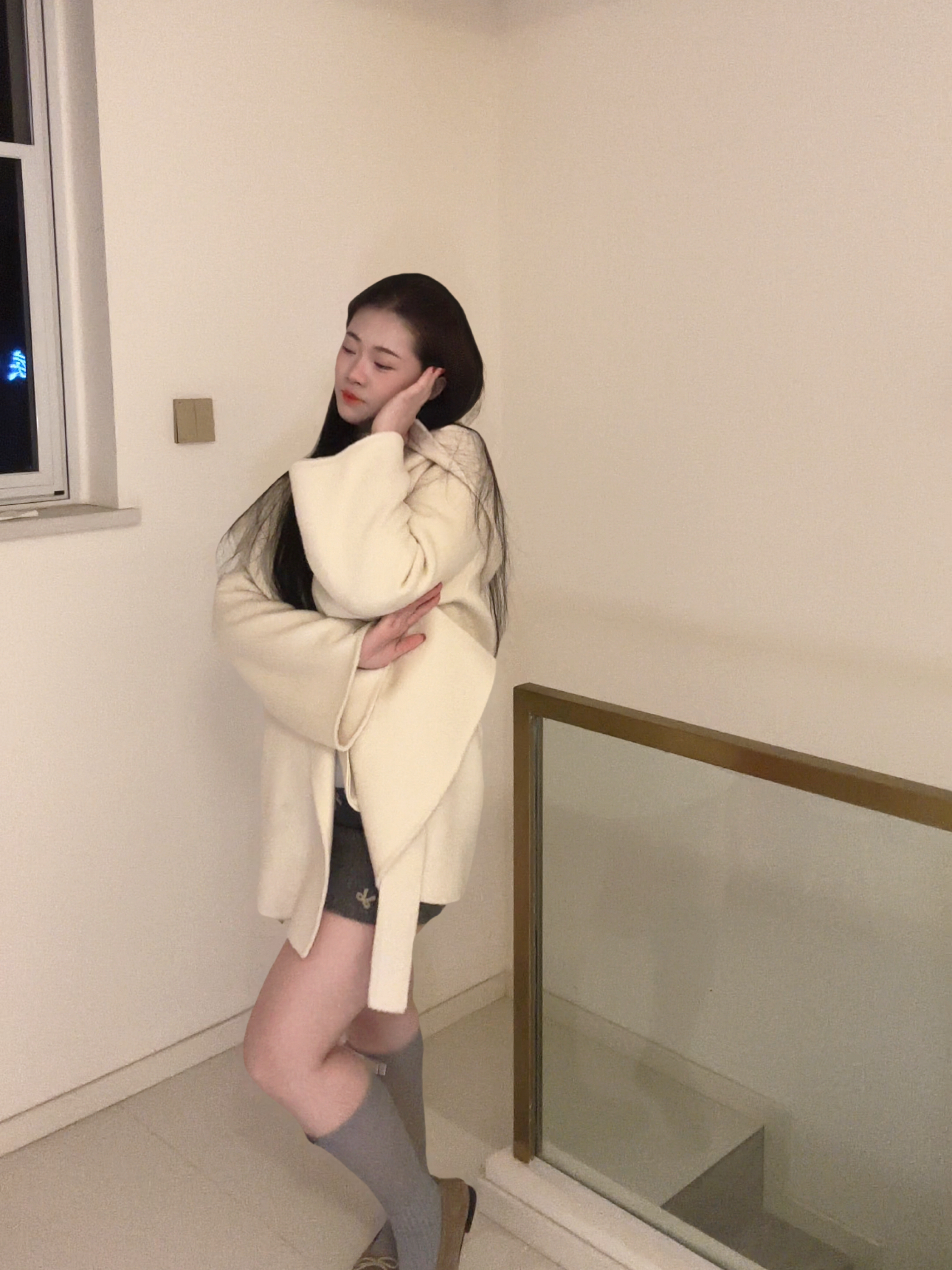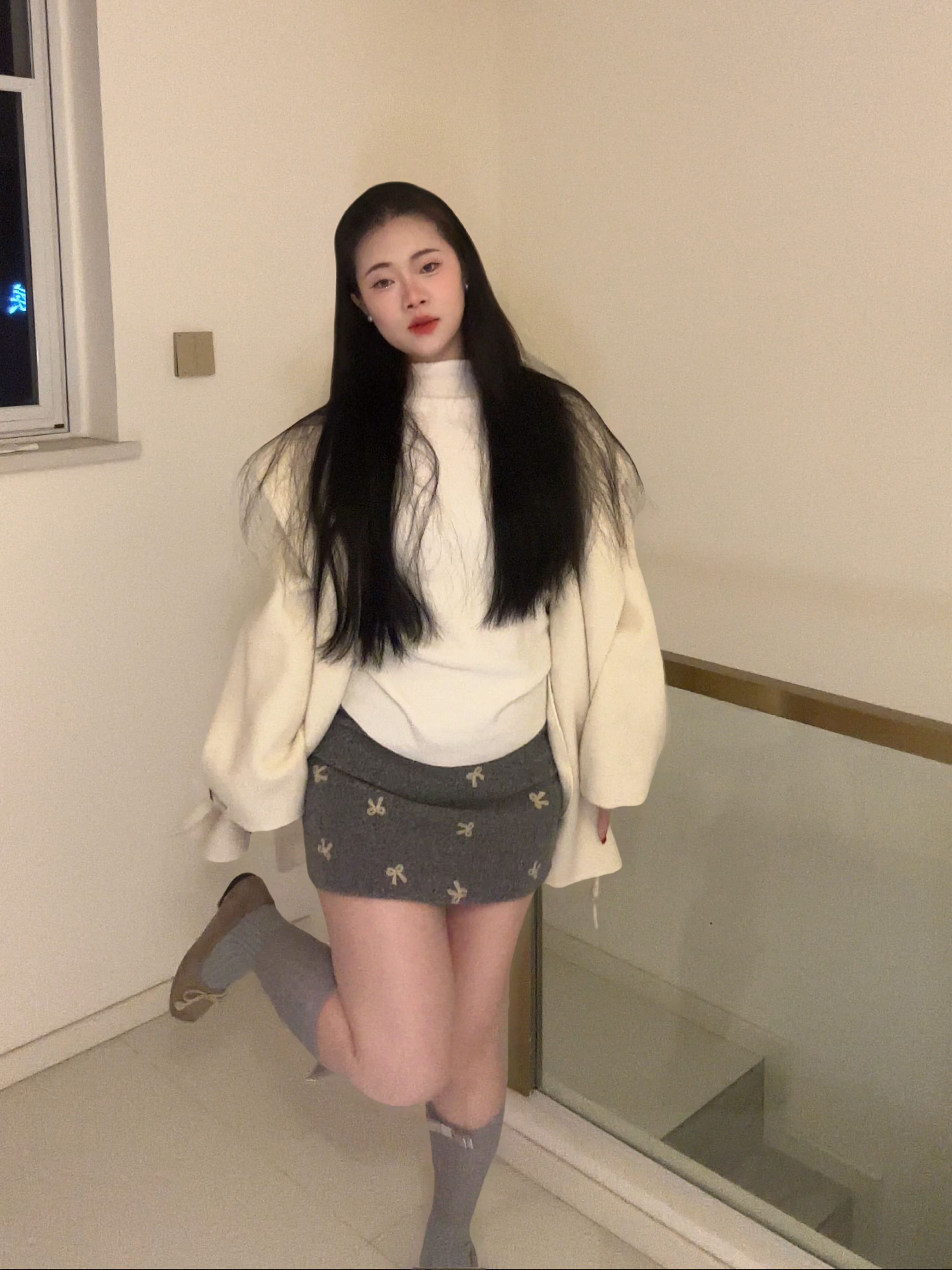 冬天想穿得温柔又不臃肿?这套奶白系穿搭直接封神! 奶白廓形大衣 + 高领内搭,宽松藏肉不压个子;灰色蝴蝶结短裙 + 中筒袜,中和甜腻还显腿细,韩系氛围感拉满,微胖姐妹也能轻松驾驭。 你们觉得这套温柔风穿搭打几分?关注我,下期出同款链接 + 显瘦技巧!