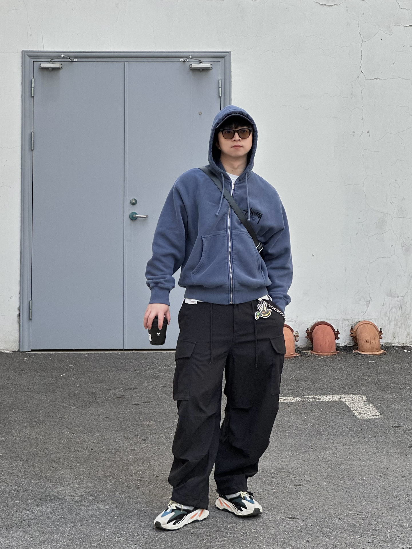哈喽👋🏻大家好哇 这里是🪨石地夫的穿搭小日记📝 - 卫衣真的是诠释街头风ootd的绝佳单品👍🏻 今天出门穿了一件stussy首尔限定的拉链款卫衣 短款版型拉长身材比例✨ 一条黑色工装裤vibe感十足☑️ 👟穿的是 #adidas yeezy 700 OG 鞋面的雾霾蓝细节和上半身的颜色呼应上了💡 #卫衣终于开窍了 #预习一下早春穿搭 #时尚爆品推手 #5G速通春日穿搭 #新年穿对好运加倍...