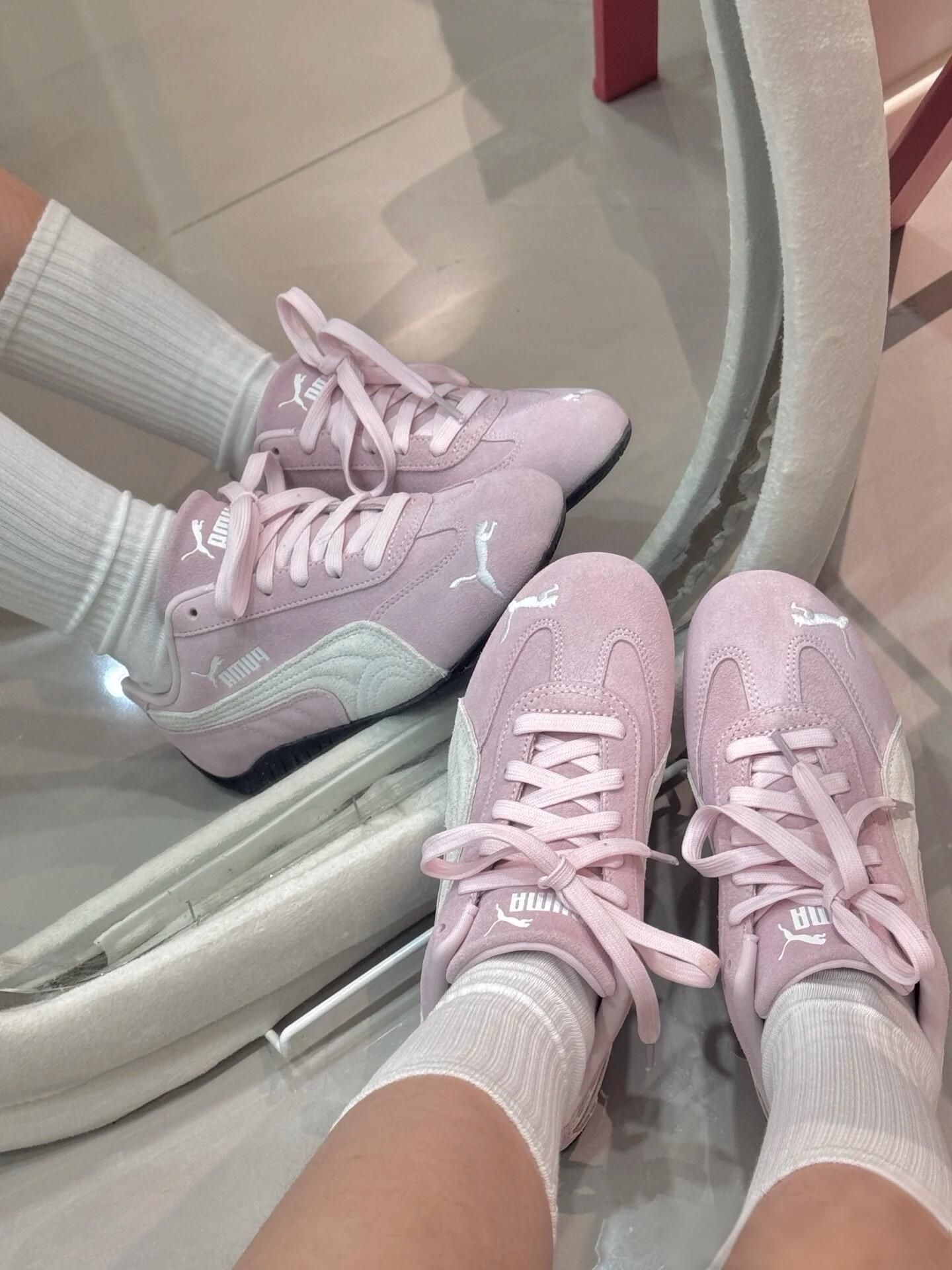 这波直撞我心巴!复古薄底鞋 逃不过puma赛车鞋这双樱花粉 speedcat真的粉粉嫩嫩的~ 实物好看 上脚更好看! 鞋身柔软上脚舒适!