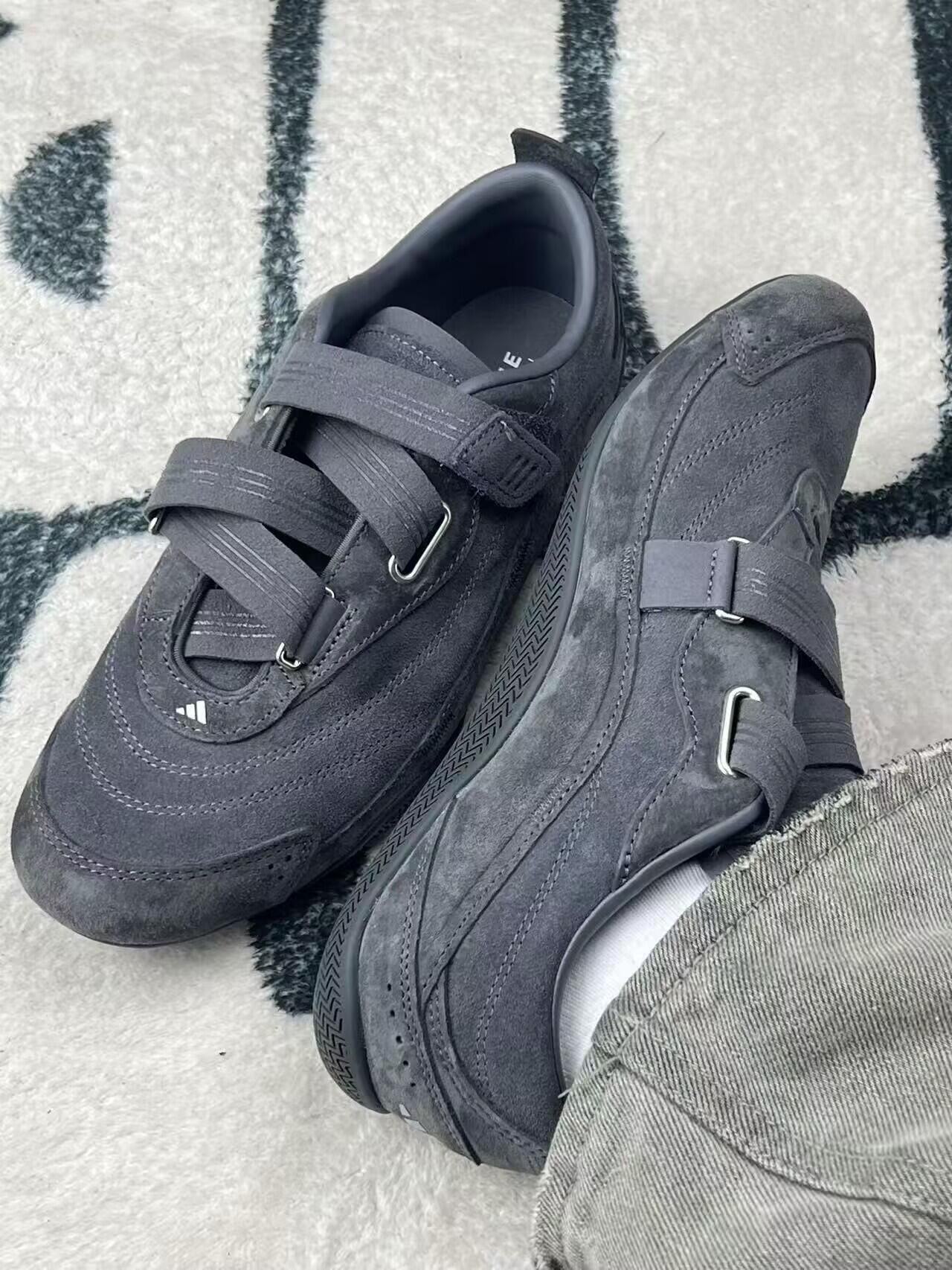 这双深灰色翻毛皮鞋是最近的心头好,日常穿它出门频率很高。 翻毛皮的触感很细腻,深灰色不挑衣服,搭配牛仔裤或运动裤都很和谐,不用费脑子想穿搭。 魔术贴设计穿脱特别方便,出门赶时间时,一贴就走,不用系鞋带真的很省心。