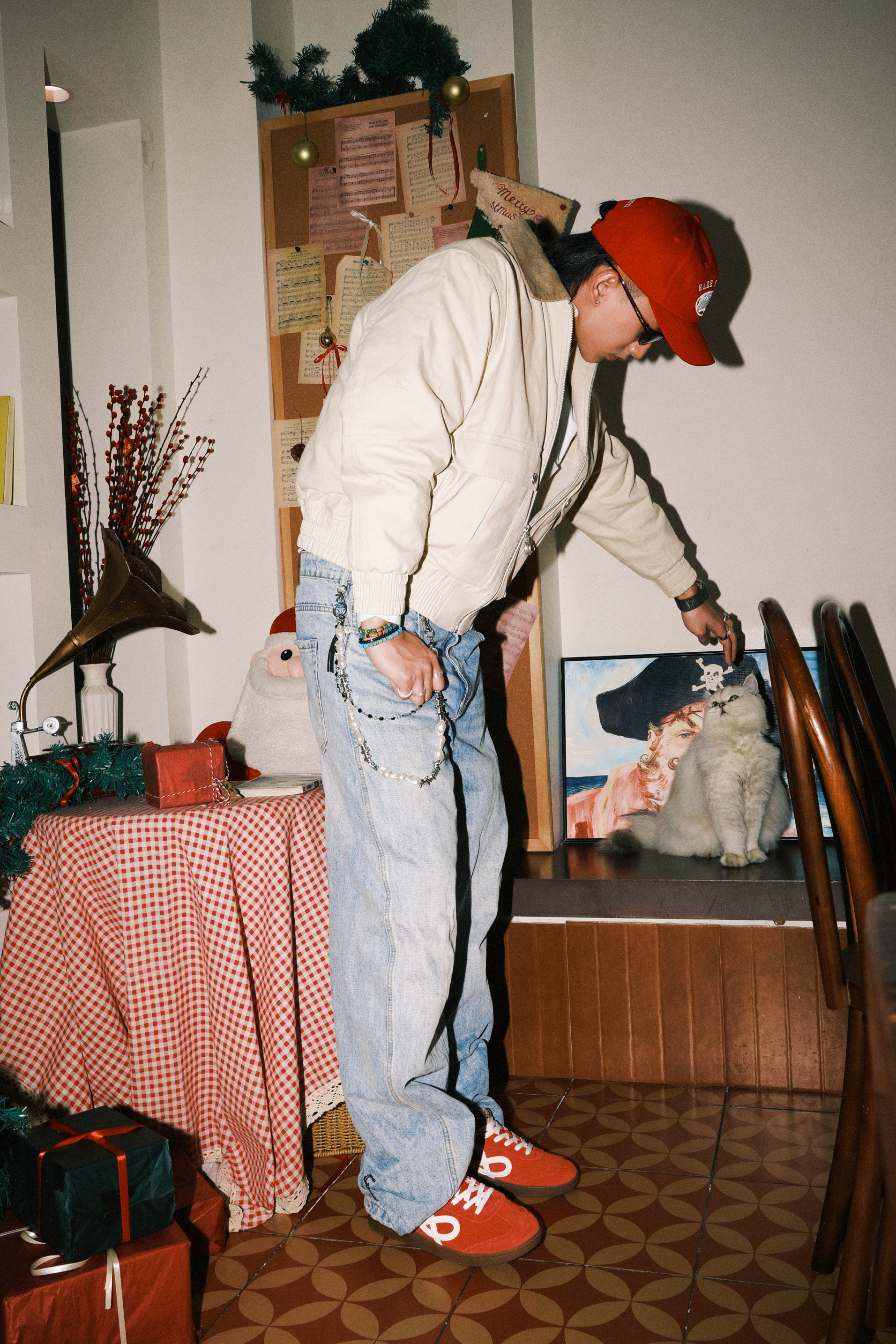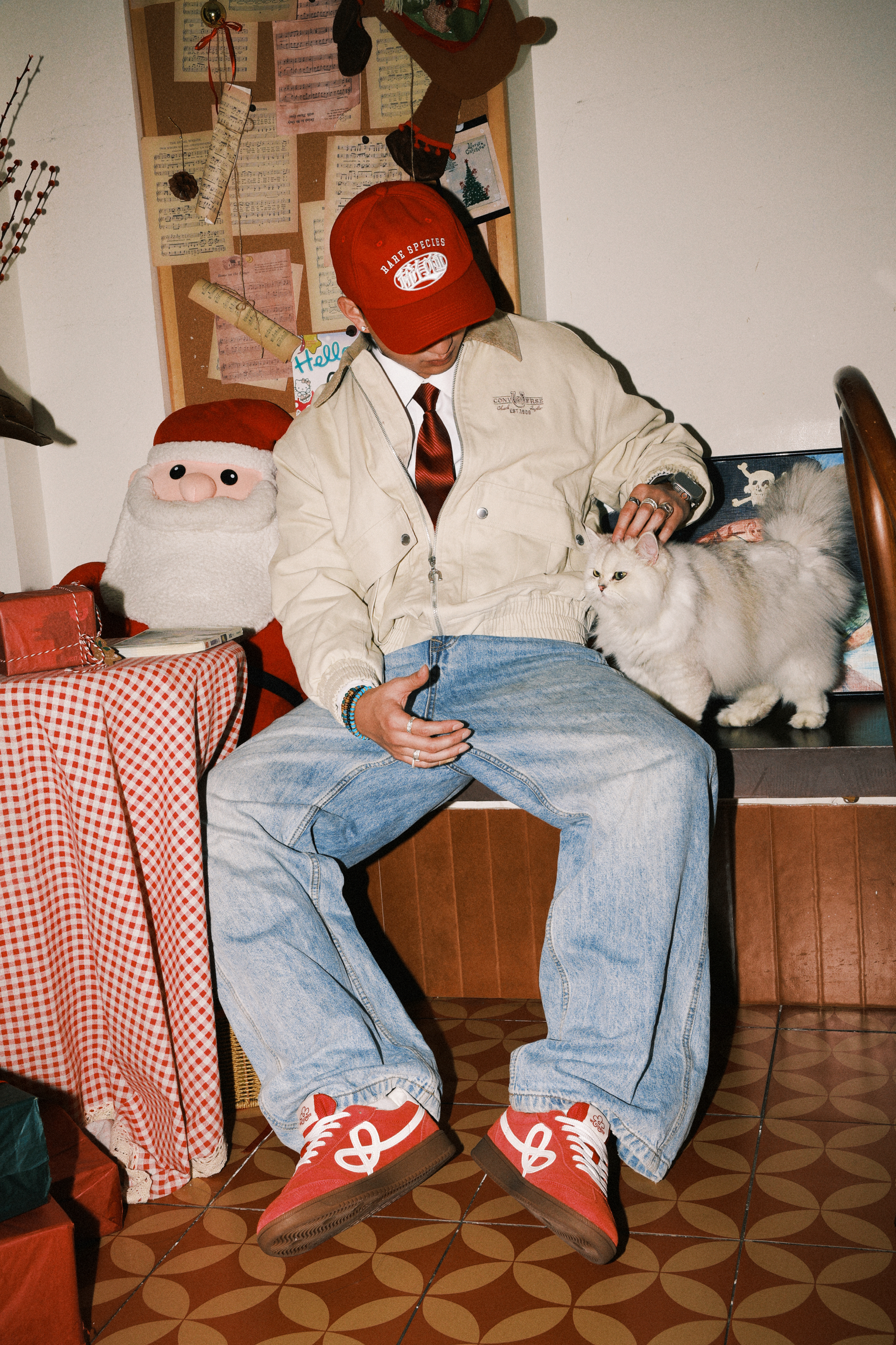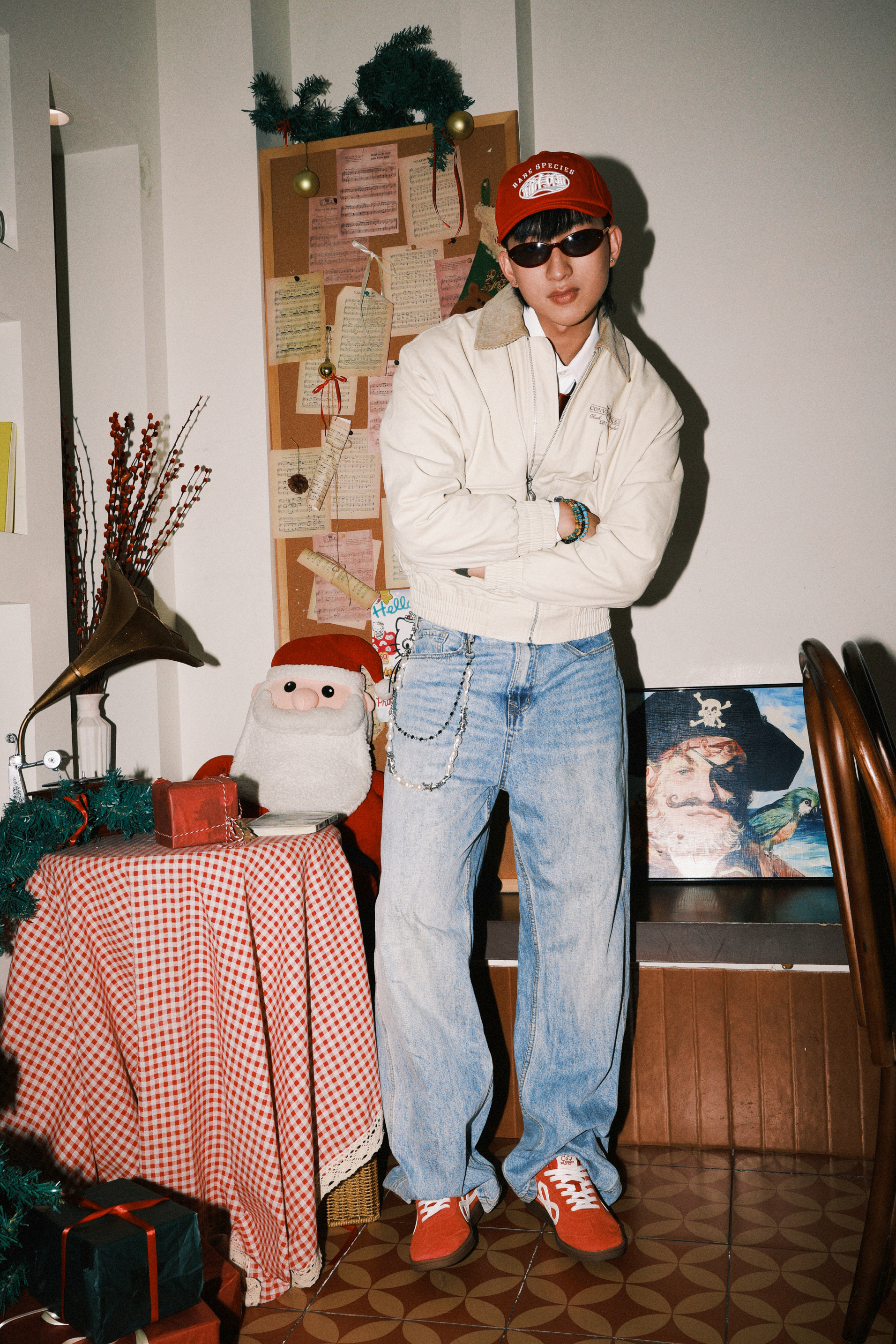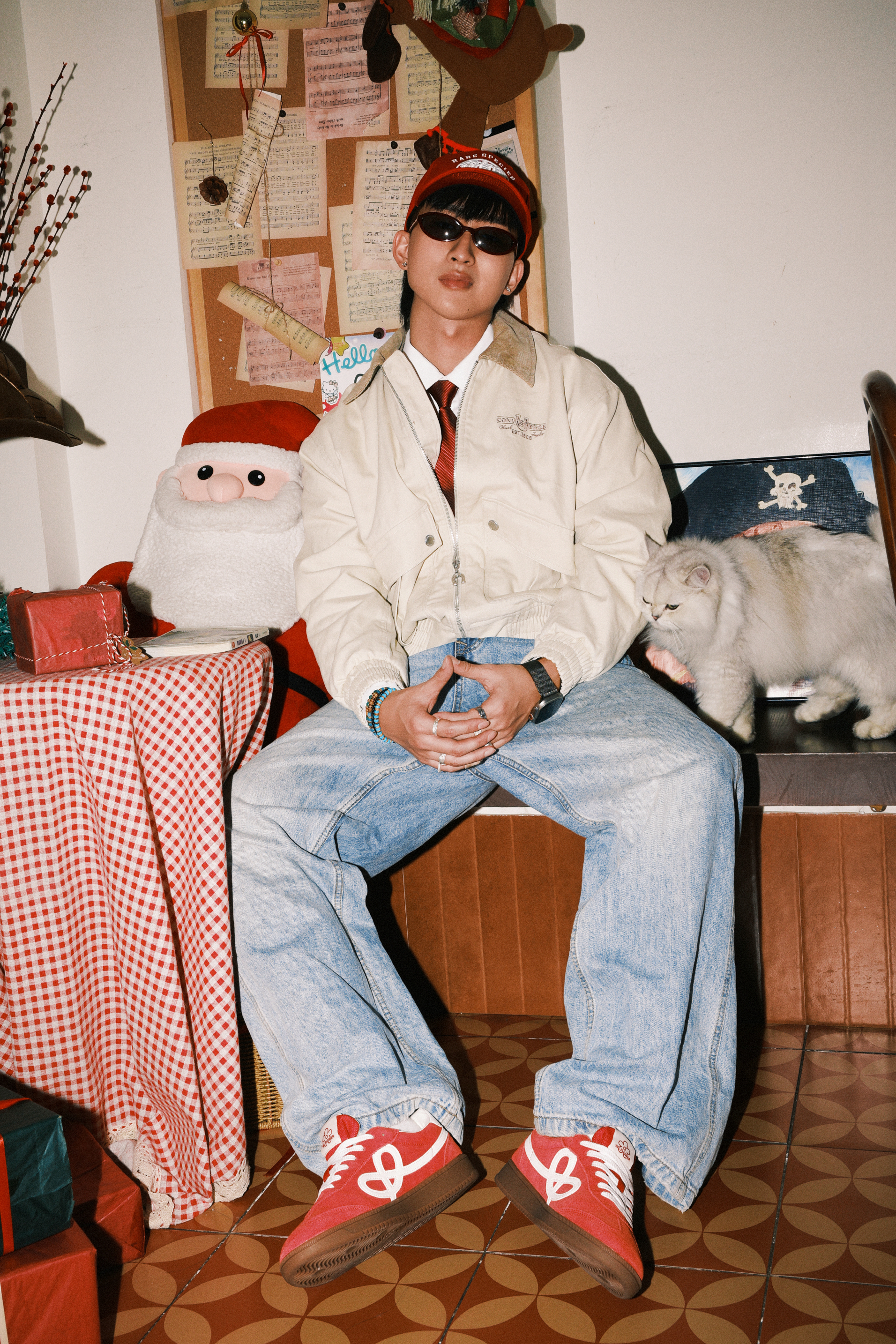 Yo wassup🤞🏻 这里是希望世界和平的Ga🕊️ 春节模仿了说唱明星李大奔穿搭 浅色系夹克内搭衬衫加上亮色领带 在选择宽松的牛仔裤 搭配WE FLOWER × HBD 联名小花鞋 春节就要在细节体现出红色系 喜庆的颜色 祝同学们新春快乐!