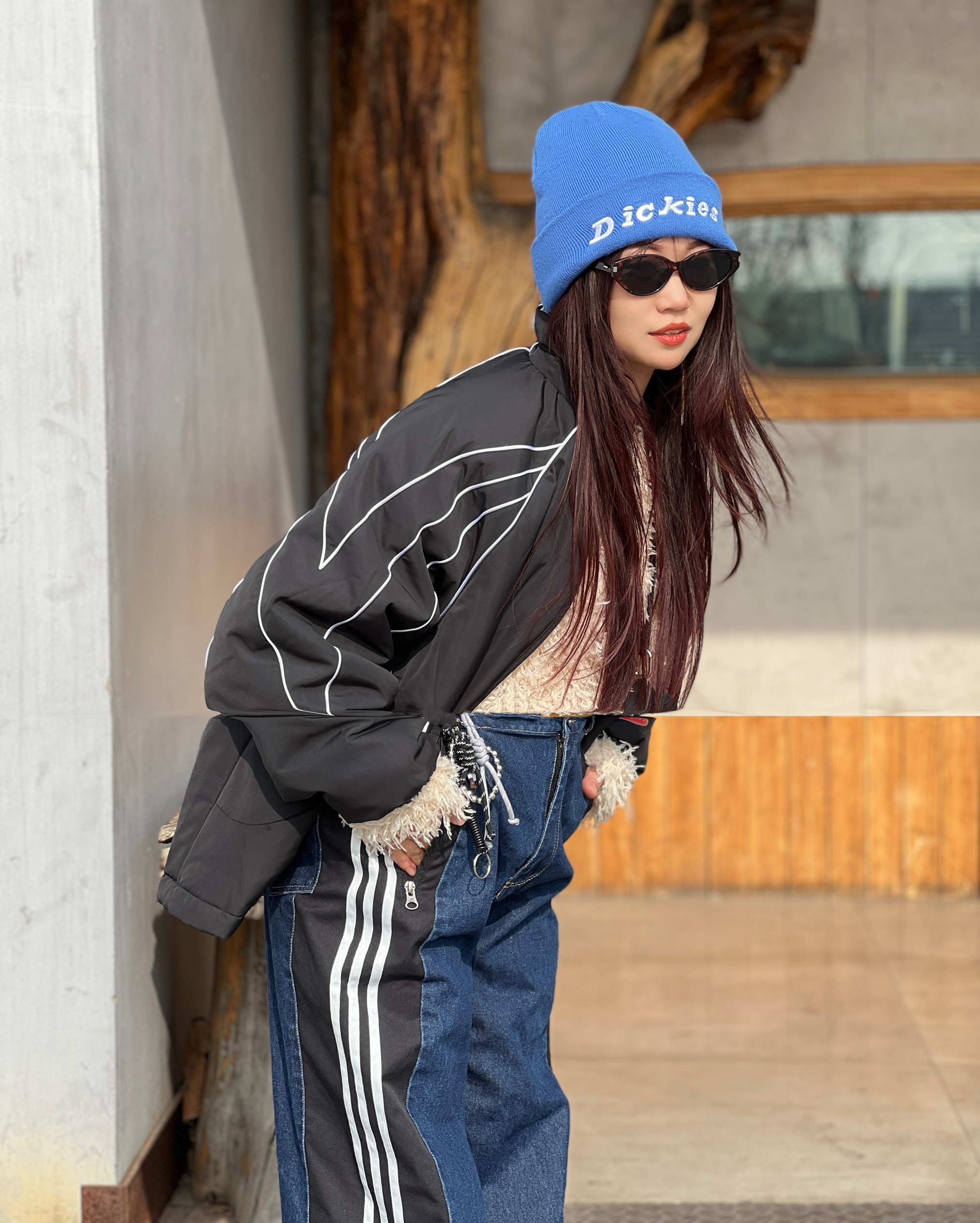 新年穿这套出街拜年🧧~ 亮蓝冷帽点亮沉闷冬日 黑棉服配毛绒内搭又暖又甜 拼接牛仔裤自带复古运动感 松弛又有活力,亲戚见了都夸会穿~