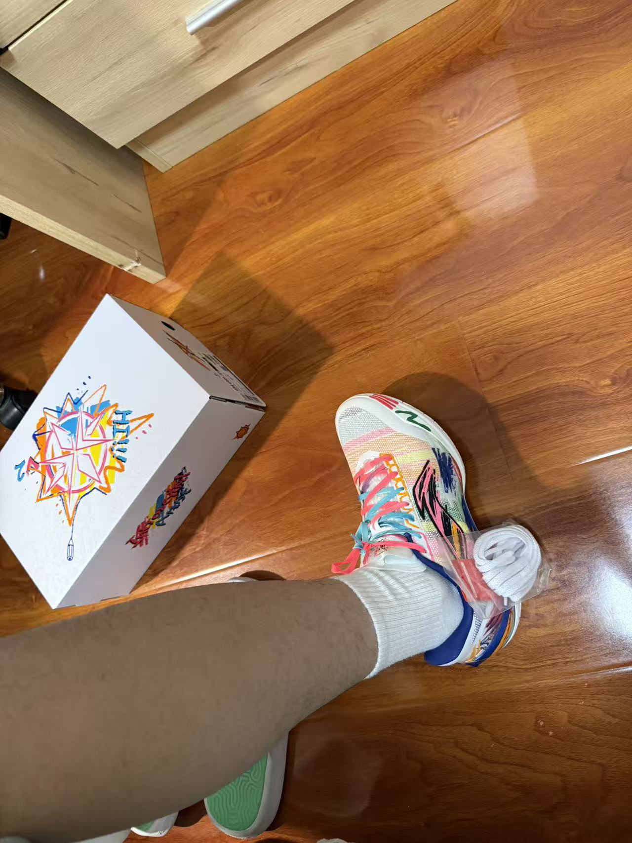 这双颜值很在线,上脚感觉包裹性很强,启动也很快的回弹很舒服,一直买李宁的篮球鞋,好评好评