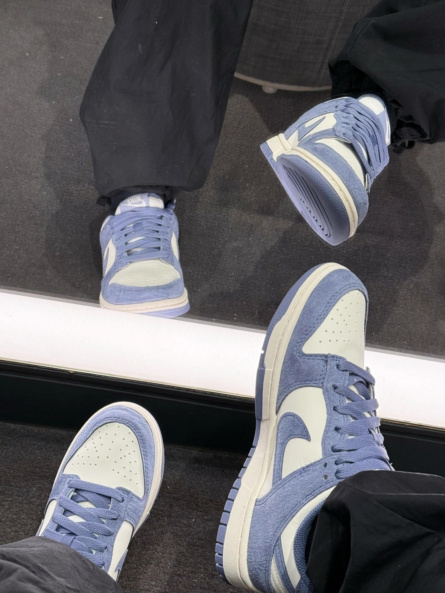 🌸春天就是要穿这种软fufu的颜色啊! 这双Dunk的紫粉渐变配色真的长在我审美点上,低饱和度的香芋紫+甜妹粉勾边,温柔又显嫩,配牛仔裤、百褶裙都超搭~ 皮质摸起来很细腻,鞋型也很修脚,完全不会显笨重。我平时穿37码,这双选正码就刚好,脚感软软的,走一天也不累。 白色堆堆袜配它真的绝了,露一点袜边显得脚踝超细,日常通勤或者约会穿都很合适。 本来还担心这种浅紫色不好搭衣服,结果发现配浅色系、牛仔色甚...