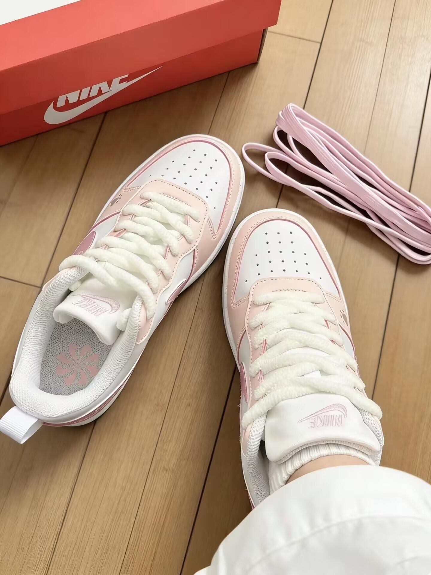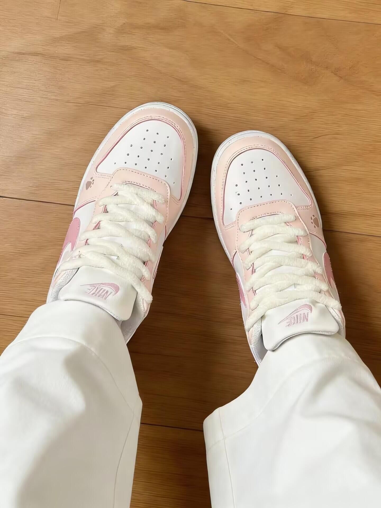💖我真的超级喜欢这个Nike的定制款小鞋子!💖 樱花粉的配色加上侧面满满的kitty元素~✨✨ 毛绒绒的鞋带很有设计感 一整个击中我的少女心✨ 鞋身皮质柔软挺有质感的也蛮轻便的 穿上脚感软乎乎的很舒适走一天也不累脚💨