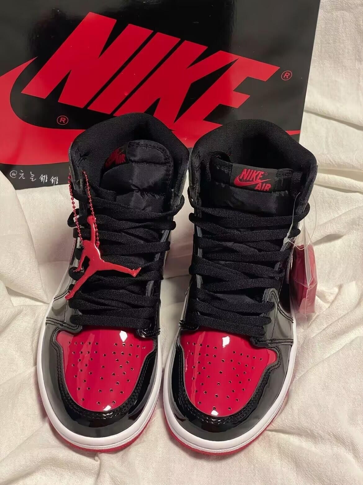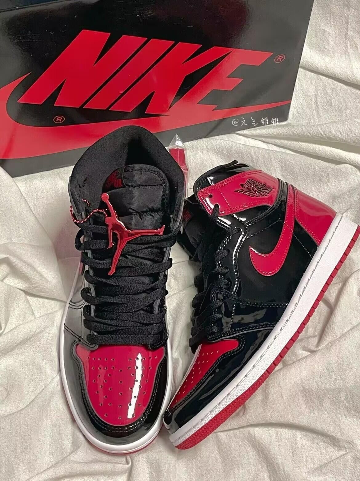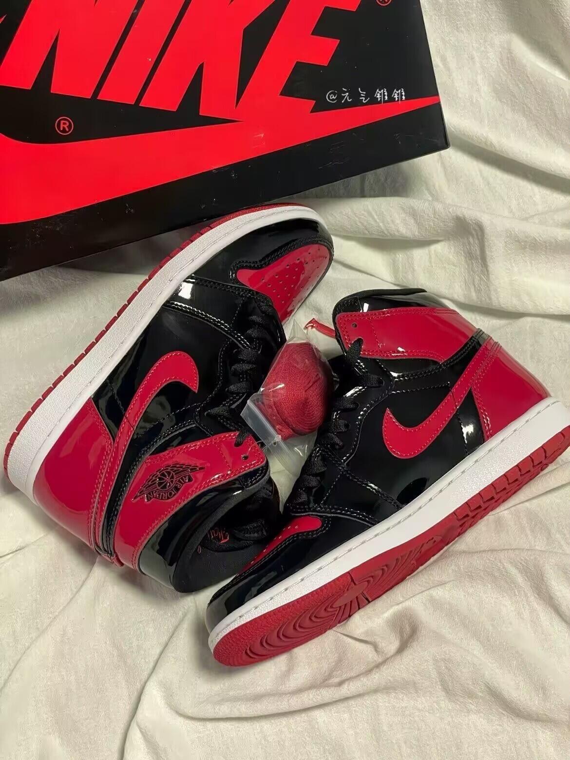 禁穿又亮又经Air Jordan 1 Retro High OG“Paten Bred”高帮复古篮球鞋 黑红禁穿 原价了这双经典黑红!!实物非常亮眼,尤其是这个漆面,鞋身采用最经典的黑红配色,一直都是热度比较高的配色,鞋面采用闪亮的漆皮,回头率也是蛮高的