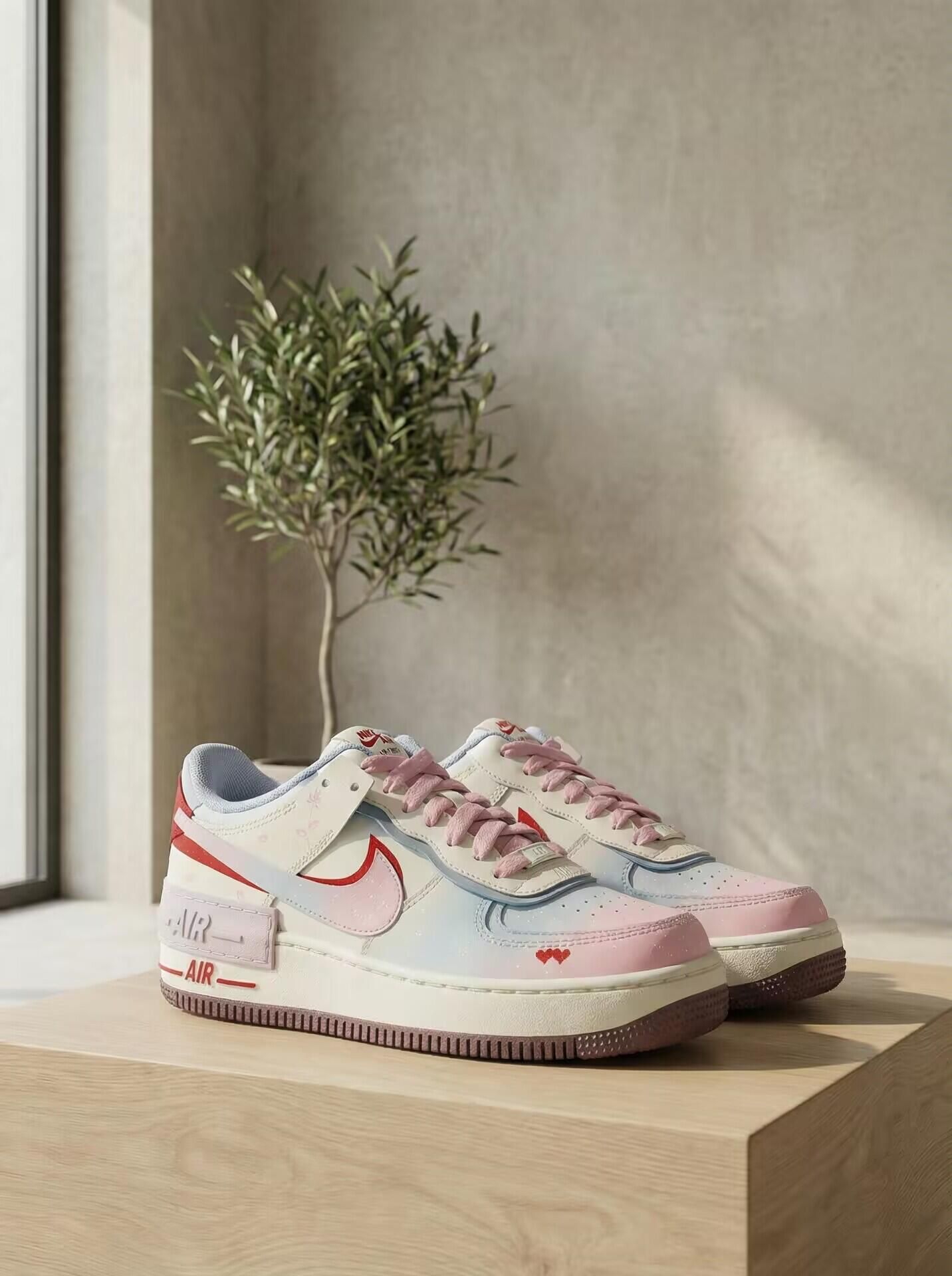 目光所及的甜AF1 Shadow白蓝粉红款太绝了!多巴胺撞色解锁甜系穿搭,CNY情人节双限定藏满心意,特殊鞋盒送礼自留都合适。低帮防滑脚感超赞,浪漫主义穿搭氛围感拉满~