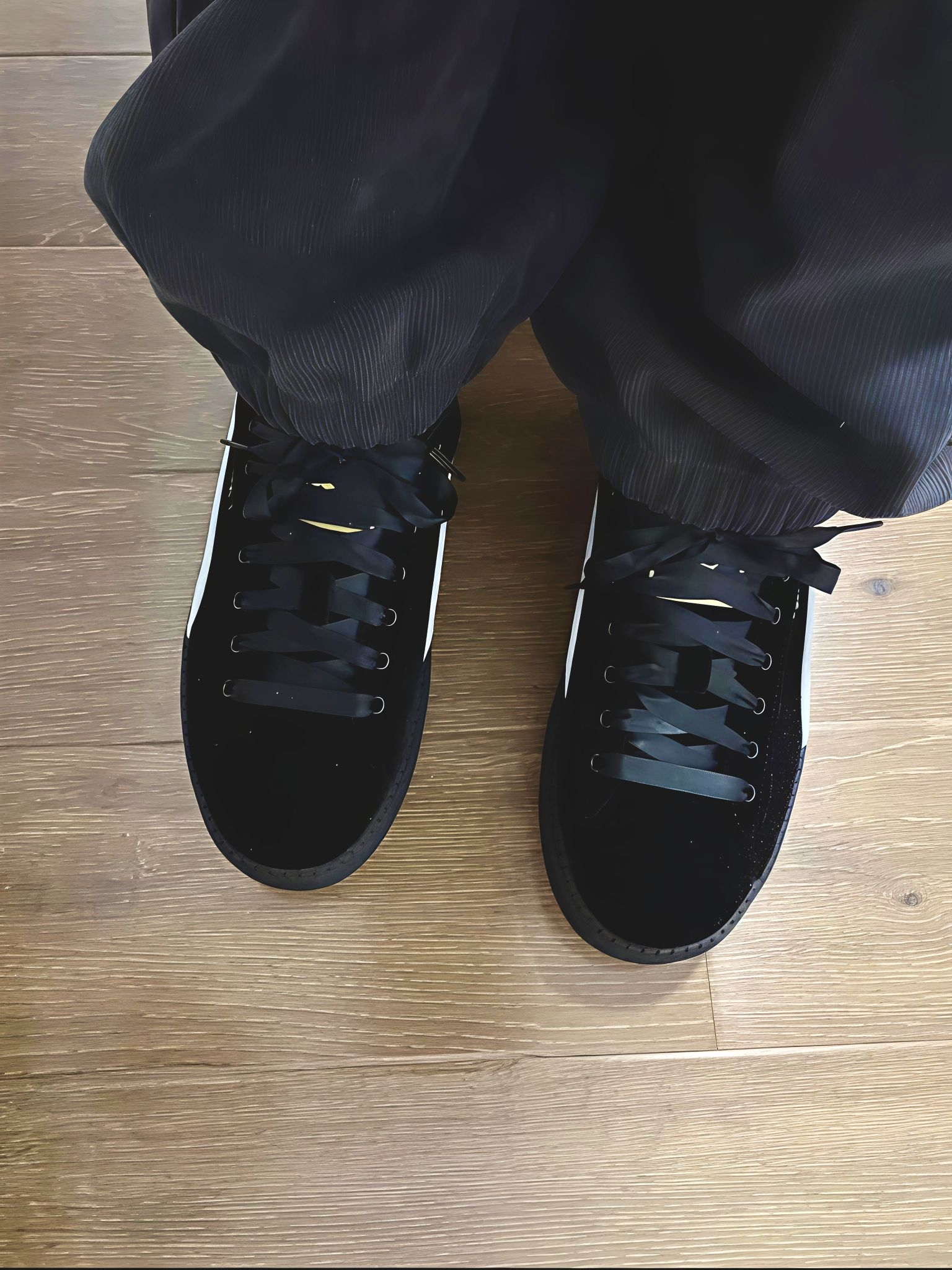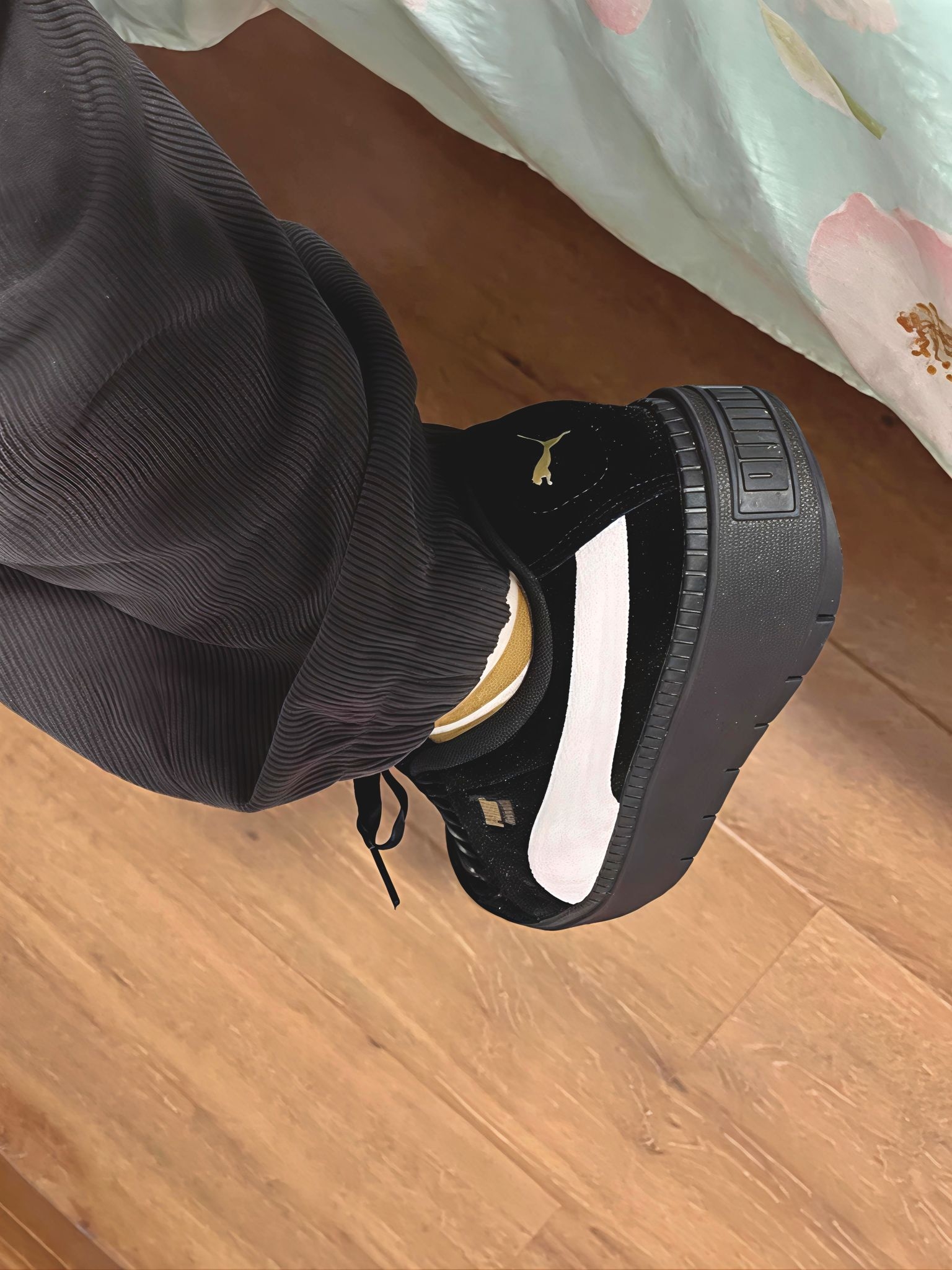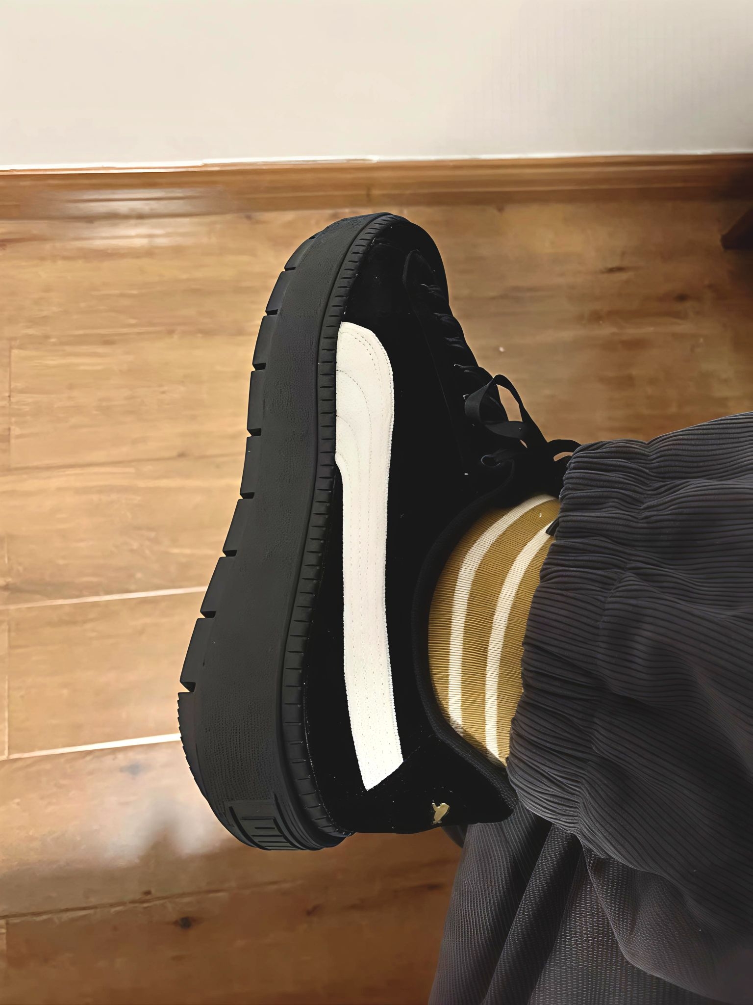 刚拆箱的PUMA真的长在我的审美上!丝绒材质摸起来软乎乎的,黑金标低调又显贵,完全戳中了喜欢简约风的我。厚底设计悄悄拉长腿型,搭配阔腿裤巨藏肉,出门拜年走亲戚,暴走一天脚也不觉得累。黑白配色太百搭了,不管是搭休闲裤还是小裙子都好看,堪称早春万能鞋。新鞋子上脚的瞬间,连心情都跟着亮起来,2026年的好运,就从这双“开运鞋”开始啦✨