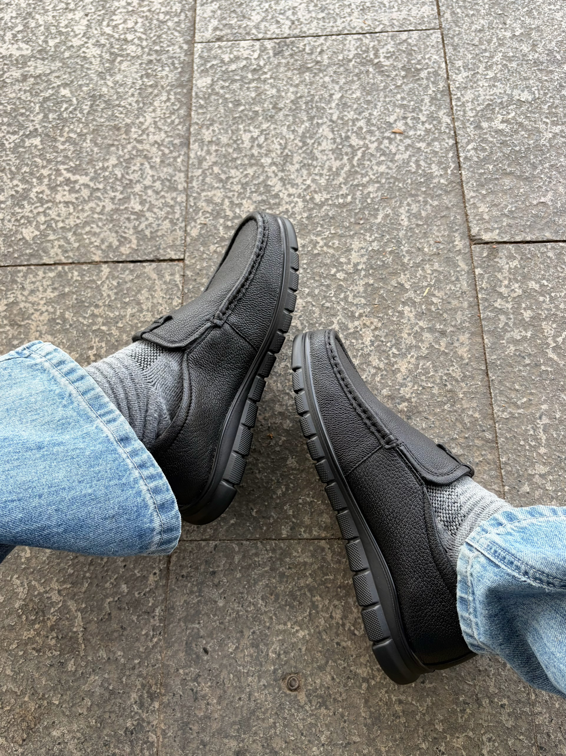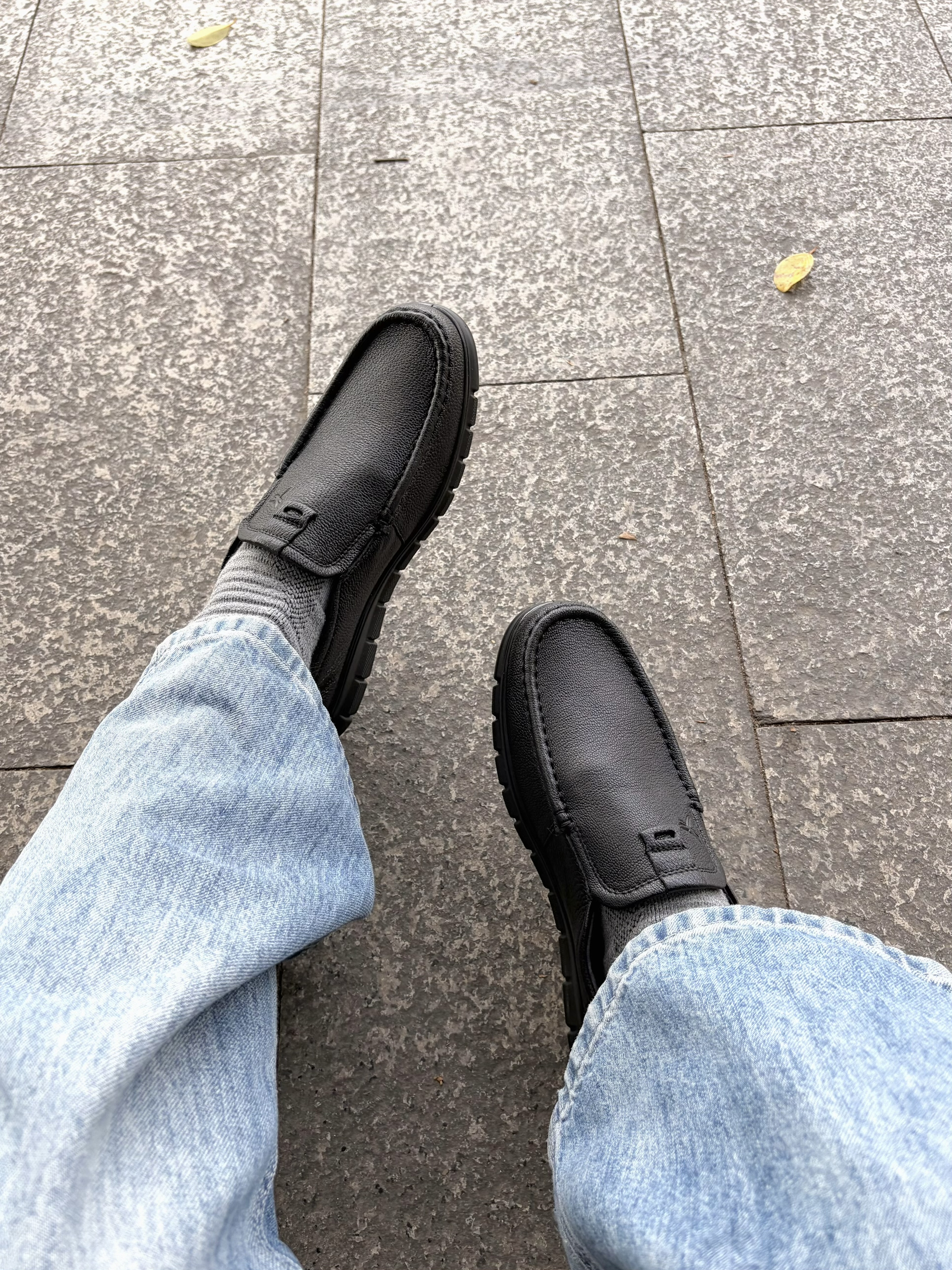 秋冬的风有点凉 选了双 红蜻蜓 的软底羊皮套脚鞋出门👞 鞋面是细腻的羊皮 质感十足🔥 脚感舒适透气 一脚蹬很方便 软弹的鞋底走久了也不累🌬️ 搭配做旧牛仔外套👔和浅蓝牛仔裤👖 日常通勤或散步都很适配
