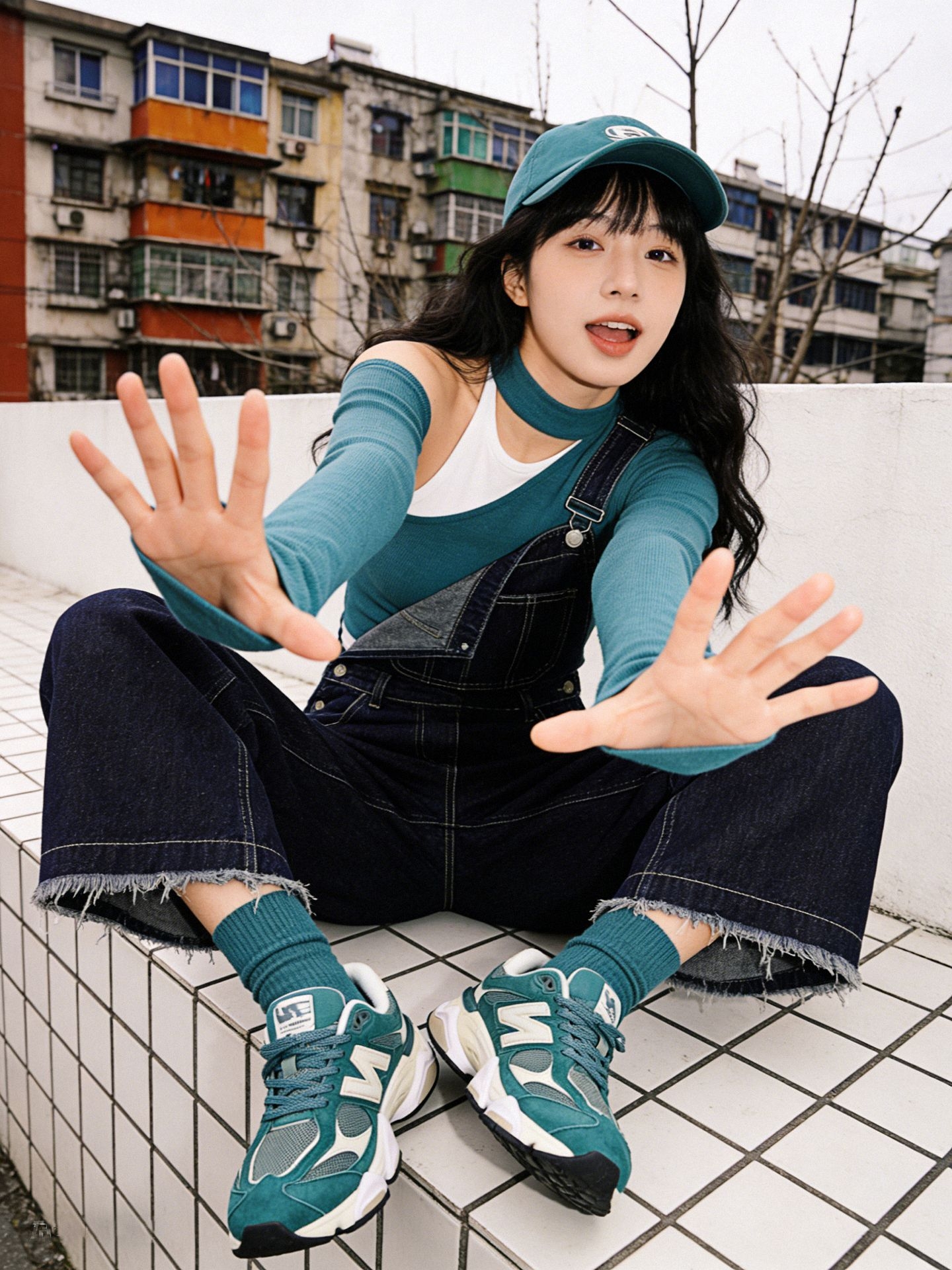 今日份甜酷出门 look 来啦👟这双 New Balance 9060 真的是近期心头好,复古感拉满的墨绿配色,麂皮拼接网面材质,质感细腻又透气,复古鞋型完美适配各种街头穿搭,上脚舒适度满分💯同色系挂脖上衣搭配牛仔背带裤,随性又不失甜酷感,同色系棒球帽和中筒袜呼应鞋子,细节感拉满,阴天的老街区自带电影滤镜,松弛感这不就拿捏住了#OOTD #复古穿搭 #NewBalance9060#newbalan...