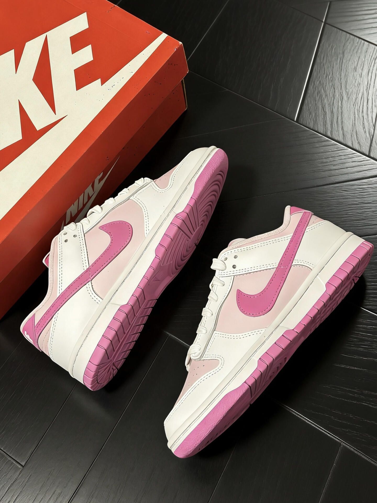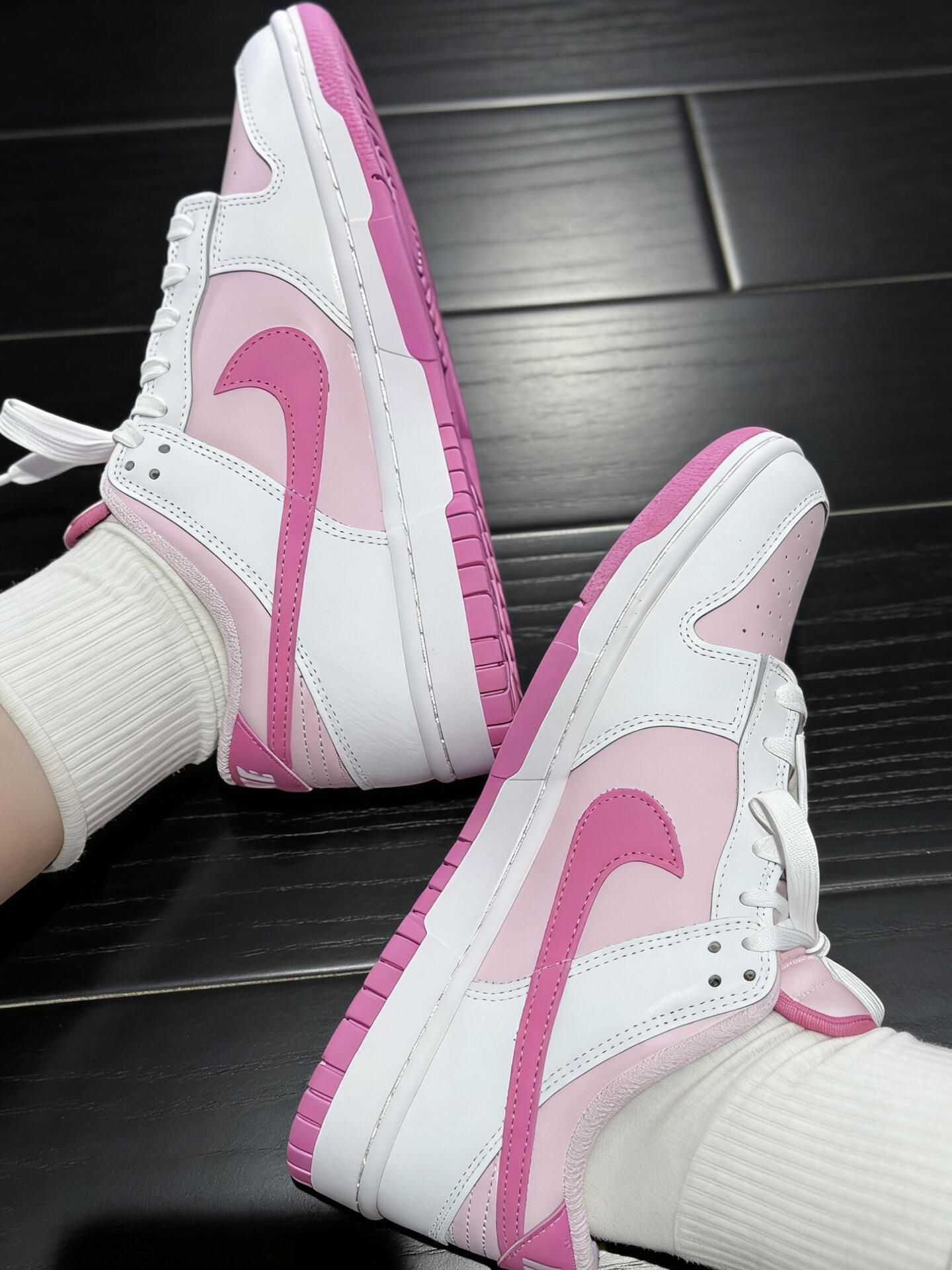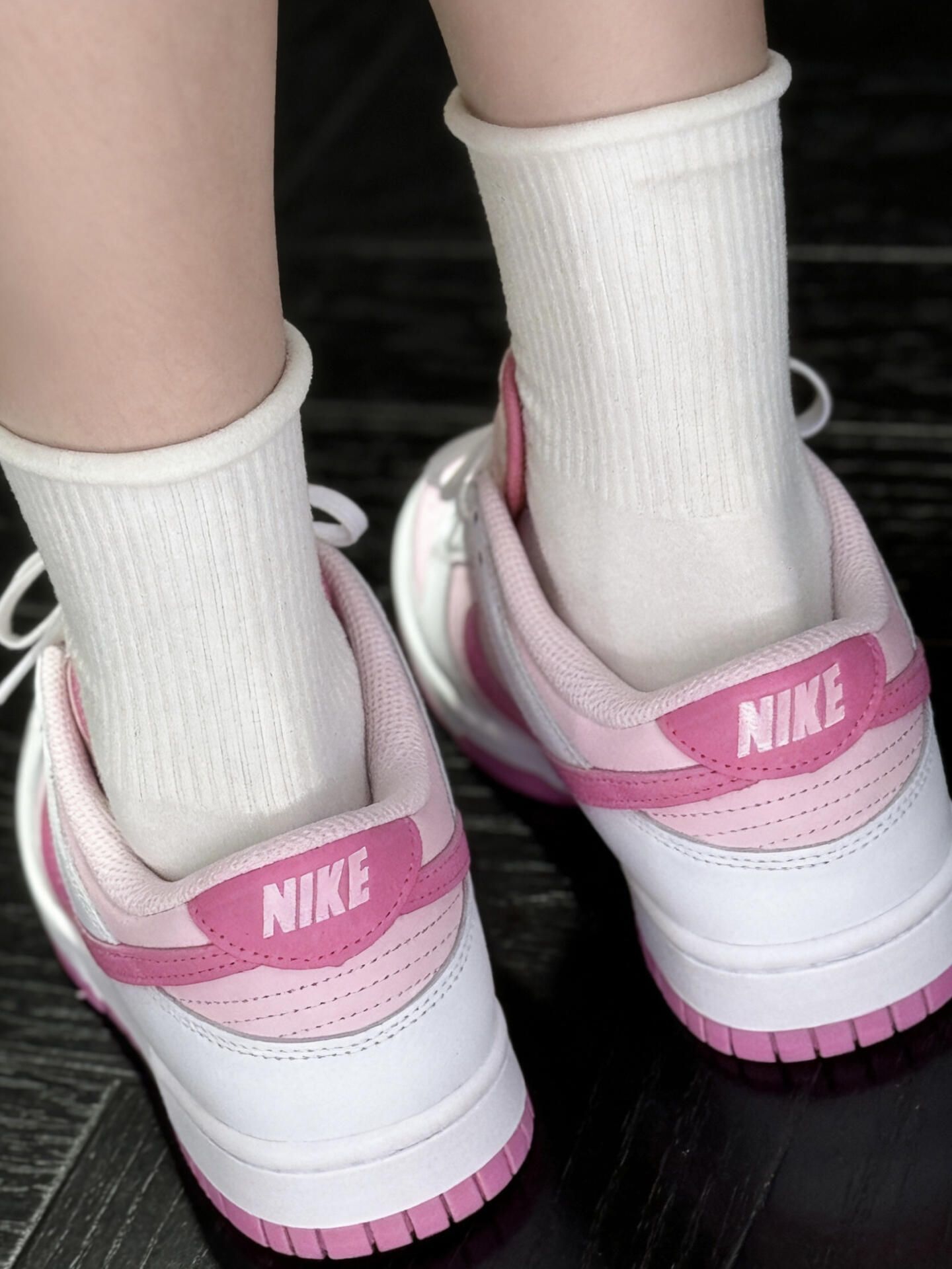 甜而不腻的少女心直接拿捏~这双粉白Dunk配色直接戳中我啦💖 奶白基底搭渐变粉细节,甜而不腻, 鞋面是软乎乎的皮质,摸着手感很舒服~ 鞋侧的粉标线条很利落, 后跟的“NIKE”字样也刚好提了点质感✨ 鞋型偏秀气,不会显脚大, 日常穿轻盈又自在,试走了小半天, 鞋底的软度刚好,不会硌脚。 你们觉得搭配什么裤子好看呢?