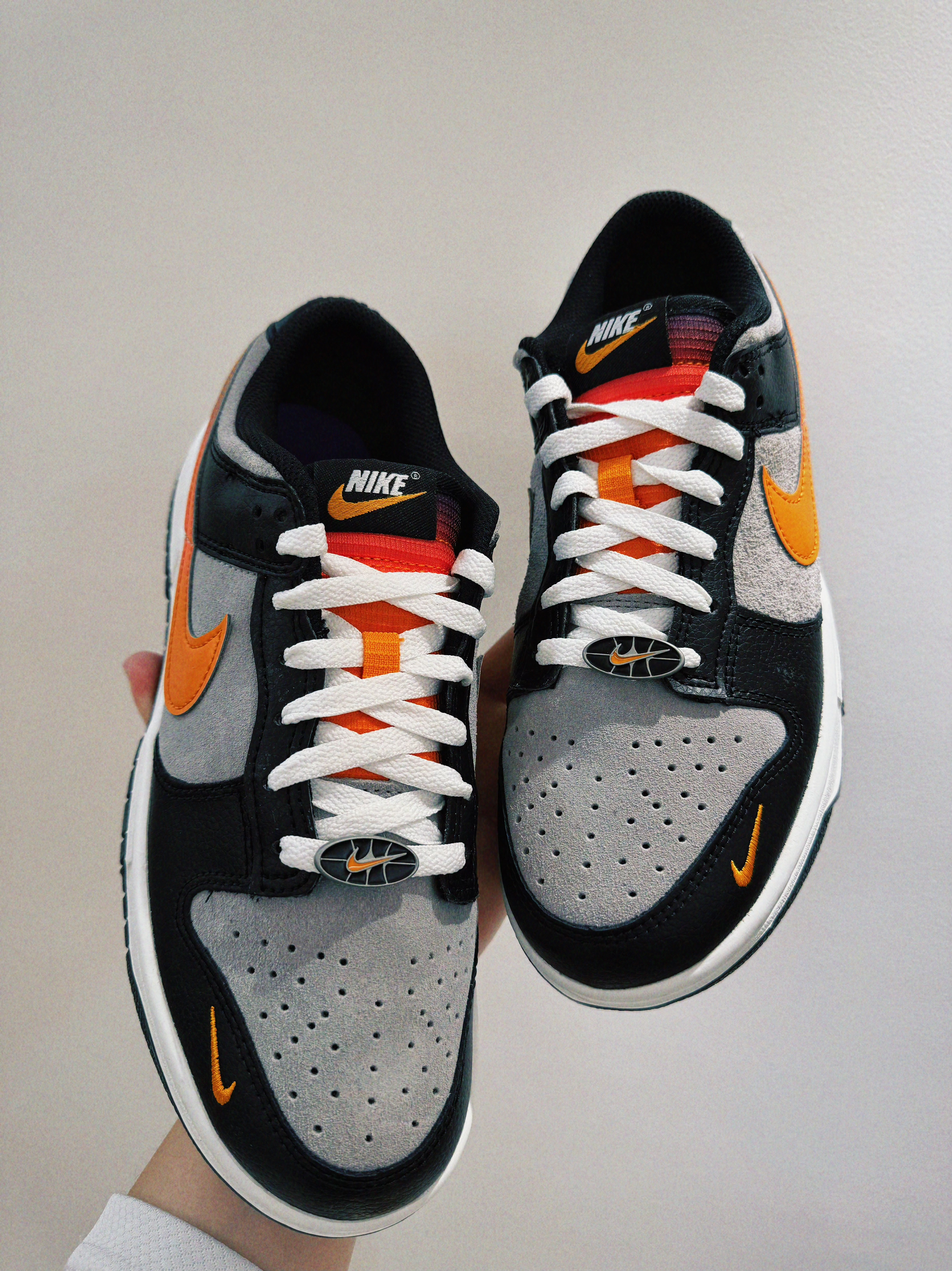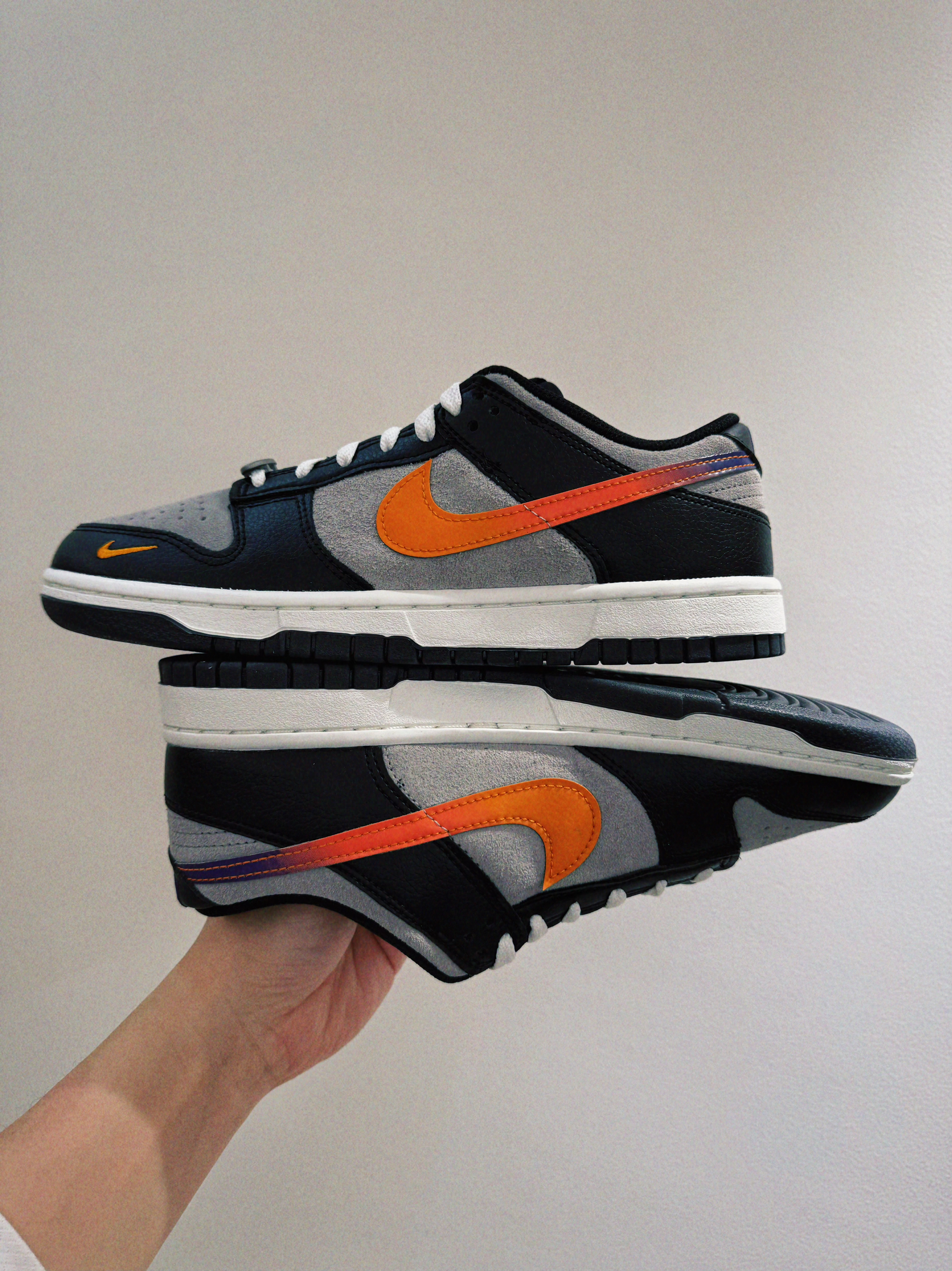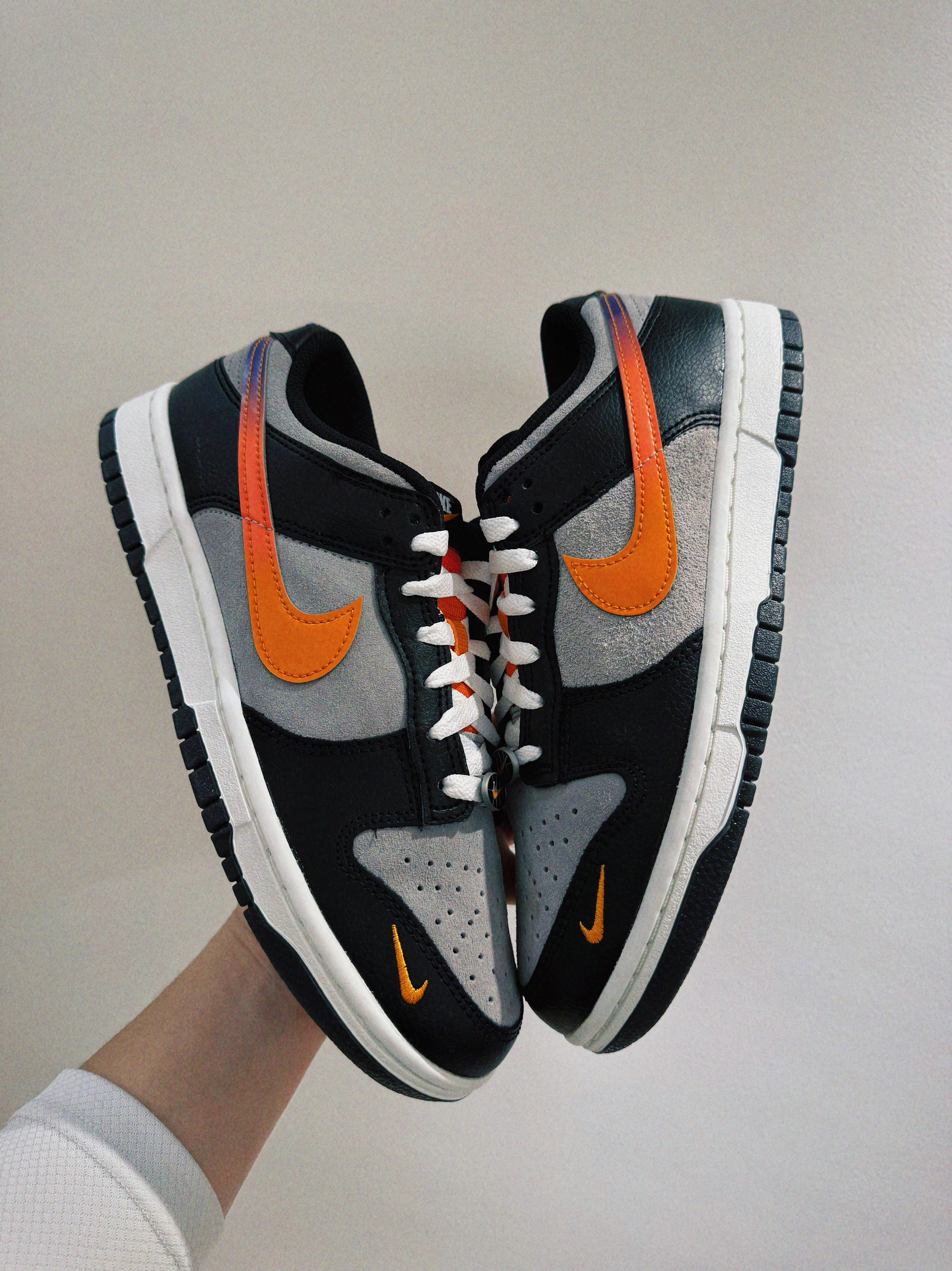 #就是个板鞋脑袋 #就是这个板鞋脑袋 #板鞋界来了个彩色 #质感不错的dunk #分享宝藏dunk板鞋 穿多了篮球鞋,换上一双板鞋 感觉脚🦶🏻一下舒服了很多 没有运动束缚的紧绷感 双皮革拼接增加了高级感 耐脏又好看,鞋子细节细腻 落日橙swoosh,灰黑色半透底 鞋头橙色小耐克logo,质感拉满 板鞋鞋头开心过大年。