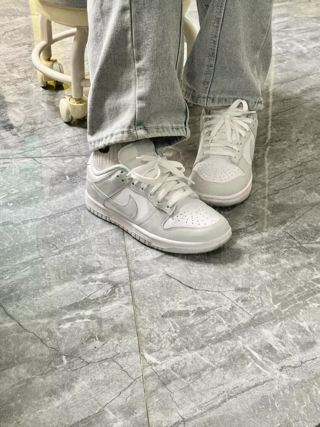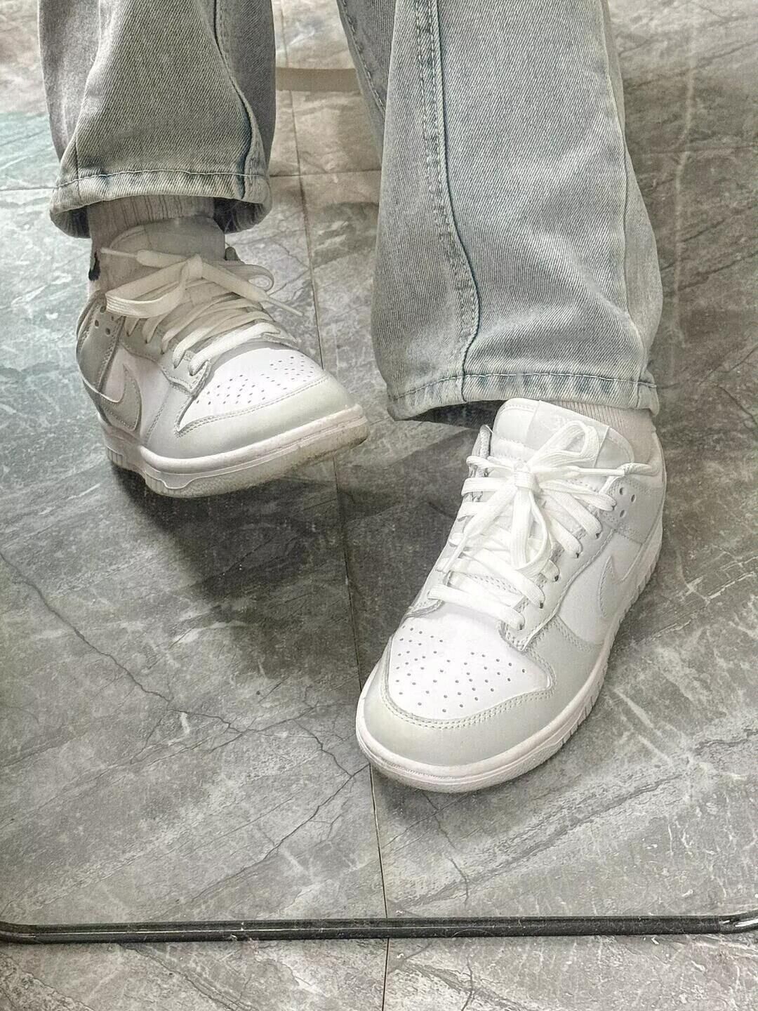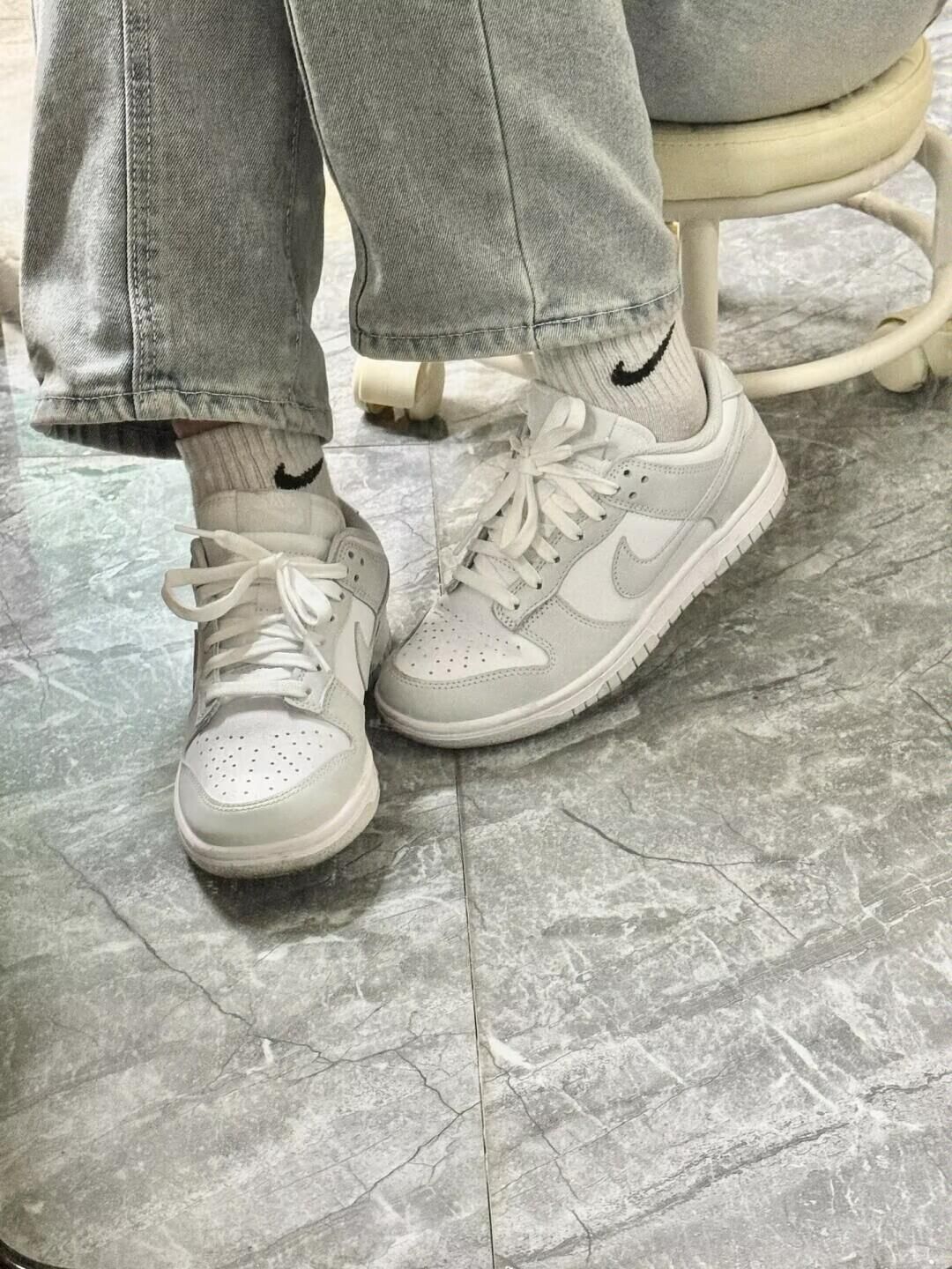 这双白灰dunk是牛皮革的材质穿起来非常舒服,穿多了牛皮革真的觉得其他合成革穿起来难受 一年四季都可以穿的颜色,越简约越高级,很干净纯粹的感觉,意外的非常上镜!这真的是我穿着率最高的dunk,基本买来天天都在穿 搭配浅色系牛仔裤+一字肩或者百褶裙/花苞裙/+收腰t或者白色长裙什么的都很好搭 随时拍照打卡上班上学出门都能穿
