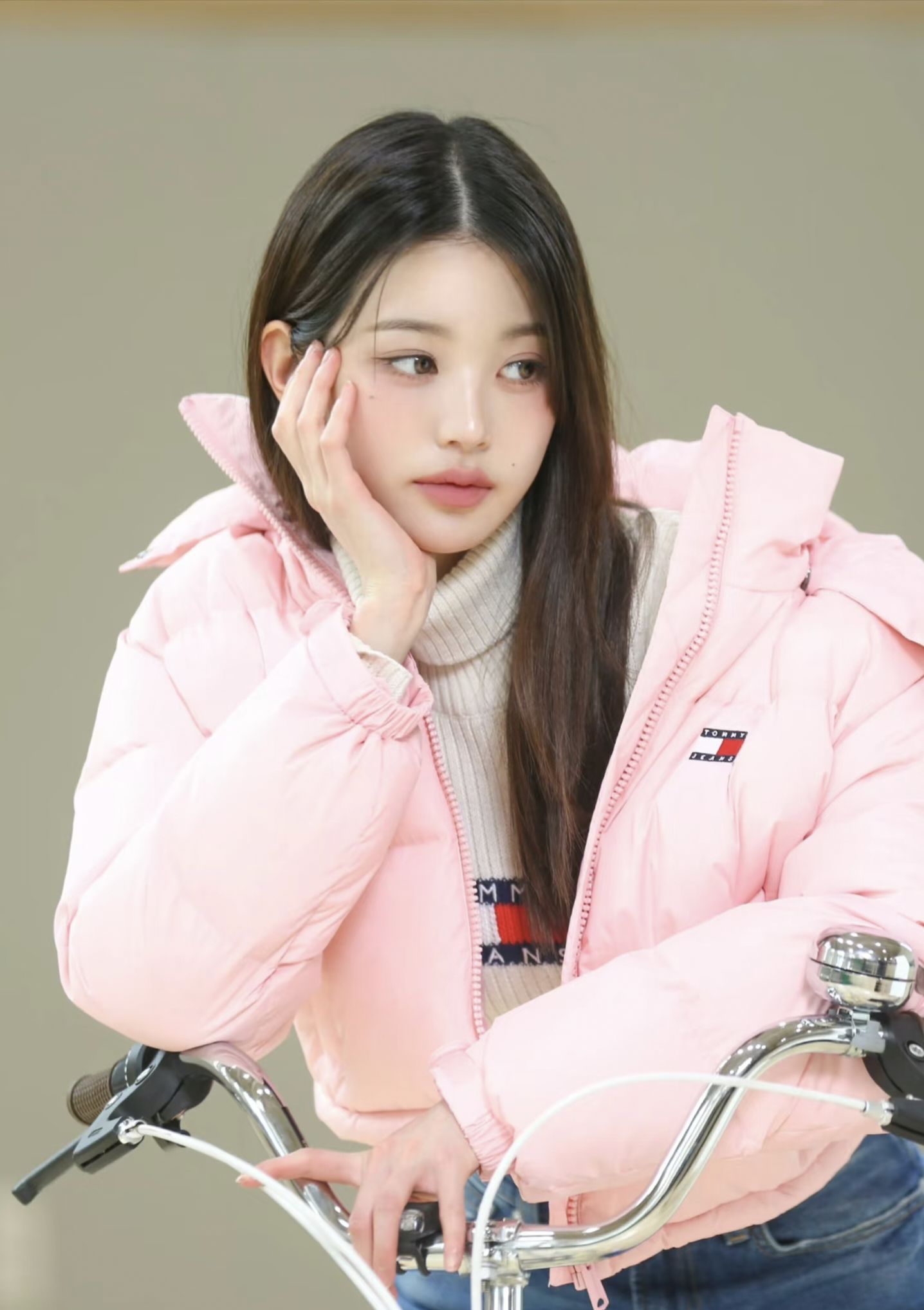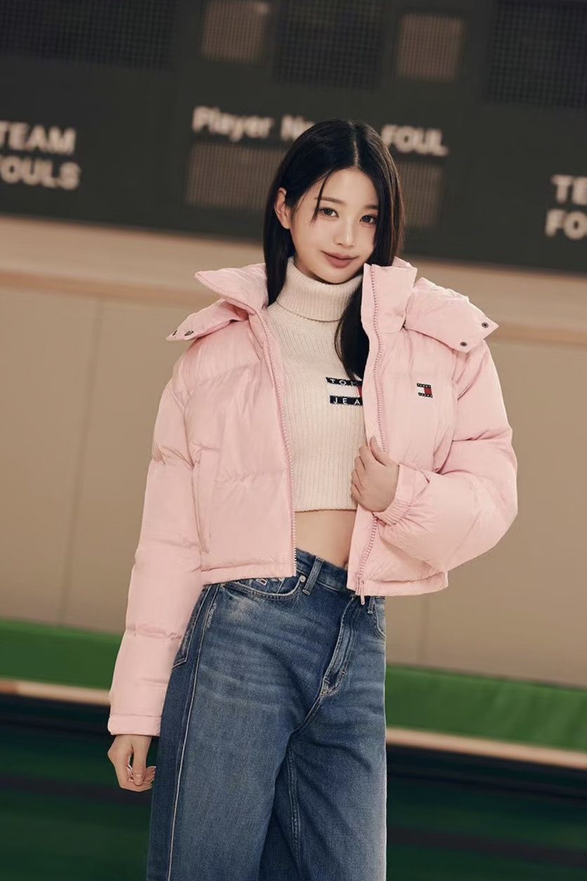 1. 短上长下:优化身材比例 - 上装:粉色短款羽绒服 + 短款高领针织衫,两件都在腰线以上,直接把视觉重心上移,拉长下半身比例。 - 下装:高腰阔腿牛仔裤,从腰线开始垂坠,进一步强化“腿长”的视觉效果。 - 原理:短上长下是小个子/想要显高的黄金法则,通过上下装长度差,制造“三七分”身材比例。 2. 色彩层次:柔和又有重点 - 主色:大面积粉色羽绒服,柔和甜美,自带少女感。 ...