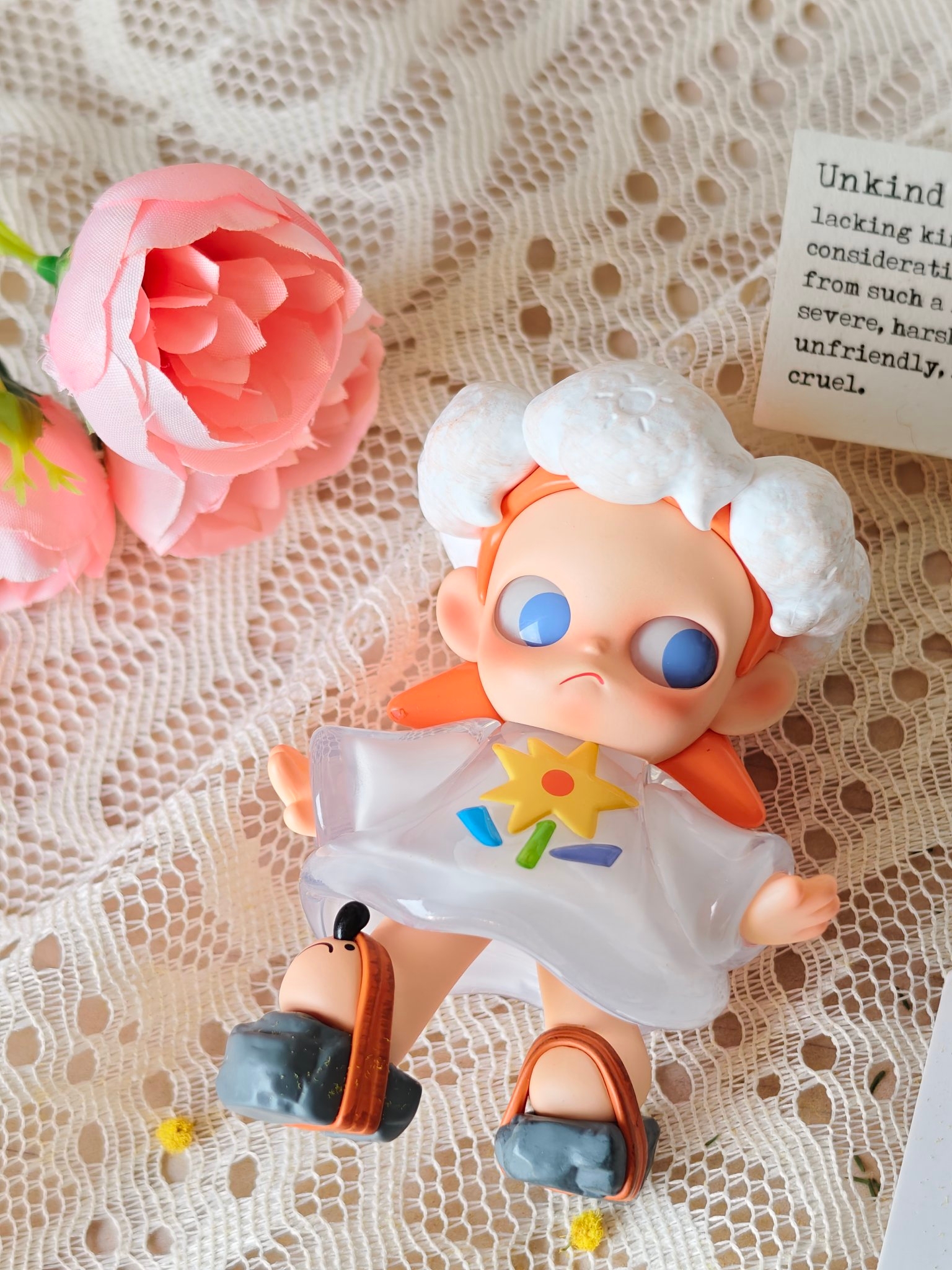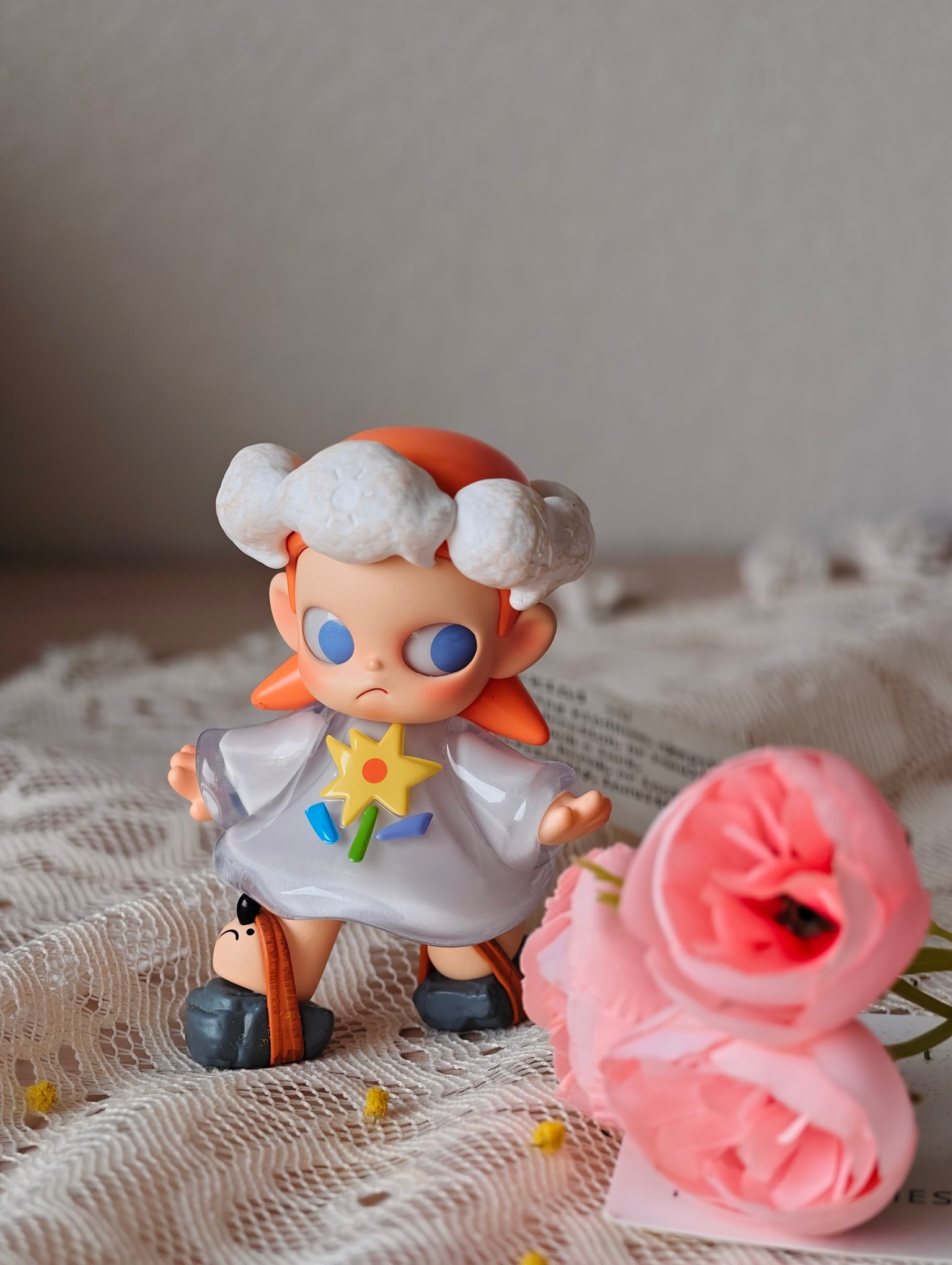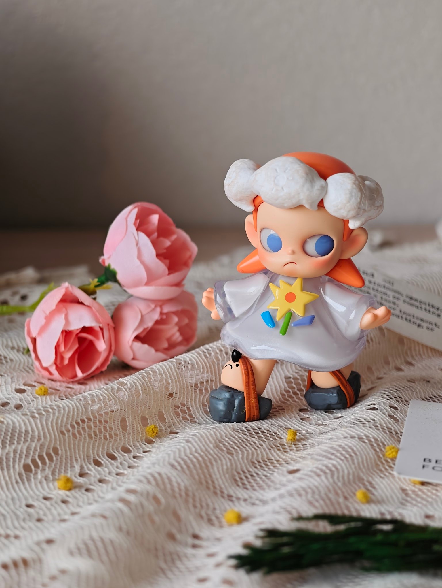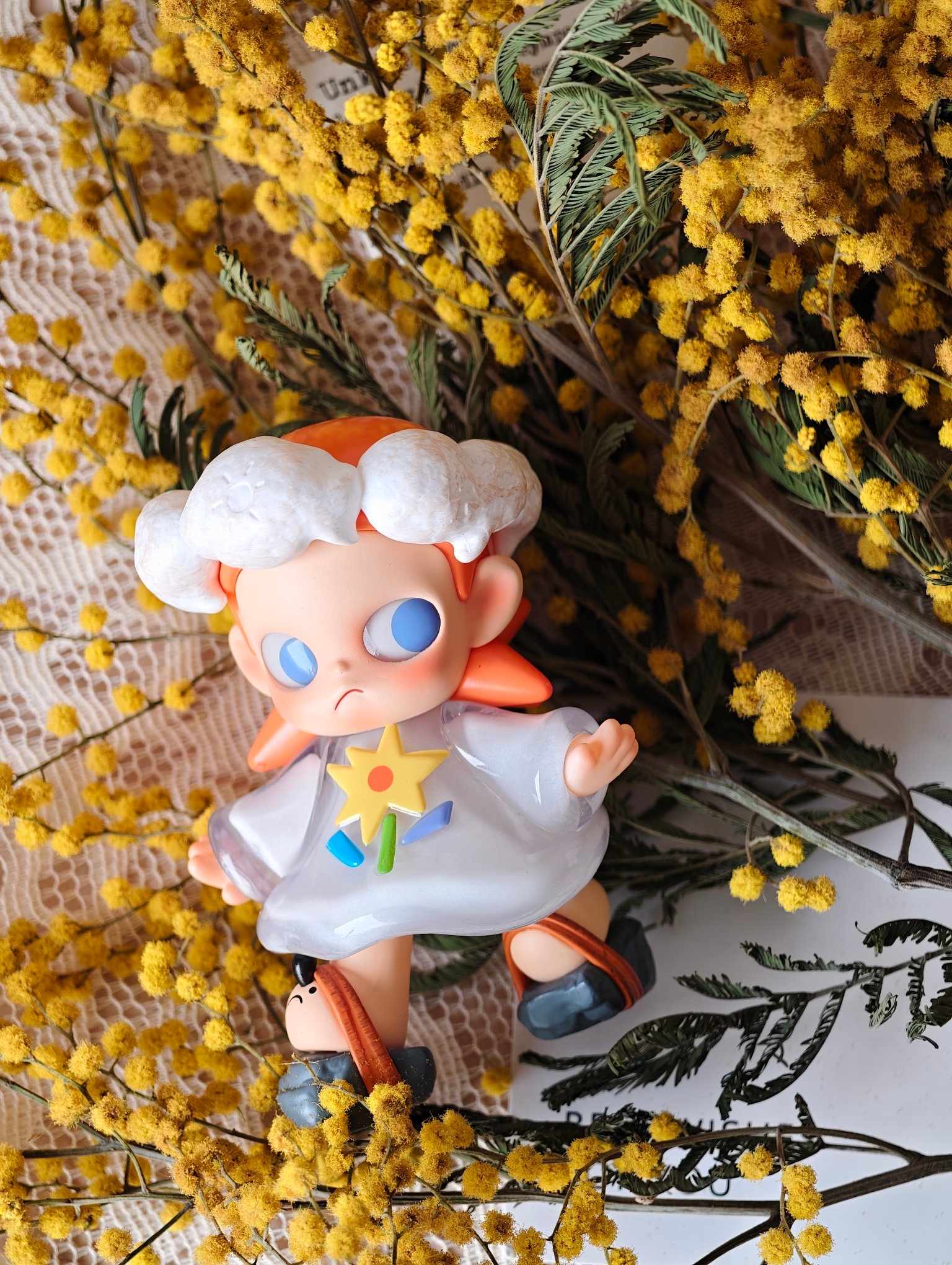 拆到心仪款的那一刻,快乐直接满格啦🥳!给新到手的娃搭黄绒花和蕾丝布景,拍出来像春天里的小精灵~摆桌面当小摆件也超好看,看着它心情都明媚起来🥰。