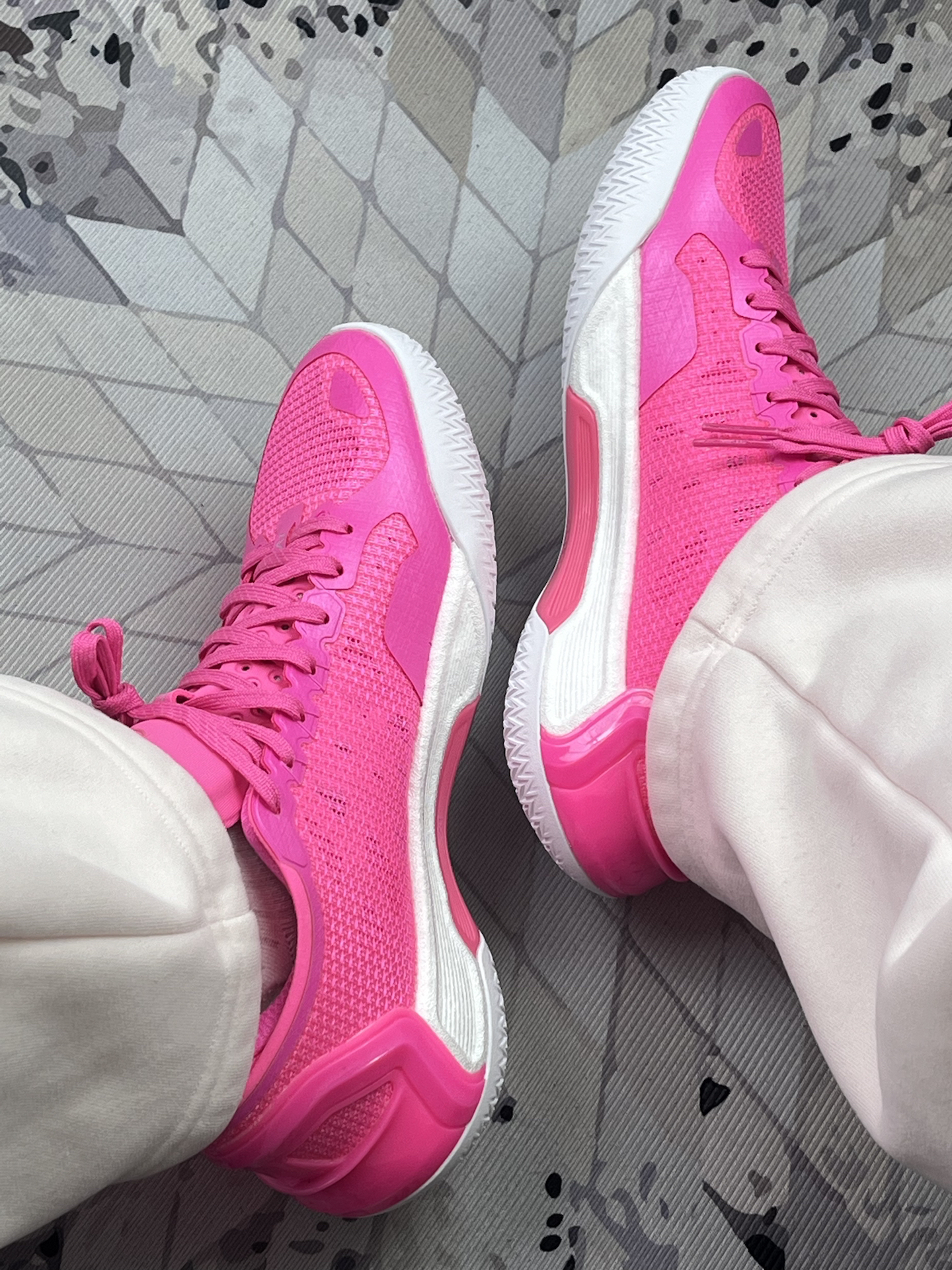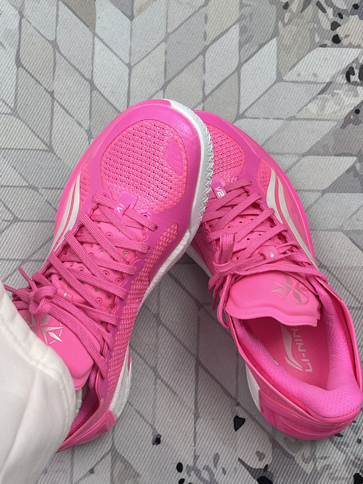 上脚这双利刃 4V2 纯粉的第一天,球场回头率直接拉满 这粉色是真 “出彩”,离五米都能被注意到 搭白裤子还行,配黑裤衩像自带发光 说实在的:包裹贴脚、网布透气是真的 打一小时球脚没闷汗 但足弓支撑一般 全场跑久了会酸(我朋友高足弓倒没这问题)。 鞋头橡胶偏软 才蹭了次台阶就掉了点漆,得小心爱护。 尺码建议大半码 正码顶脚趾。 总结:想要 “特别” 的实战鞋可以冲,但得接受它又吸睛又有...