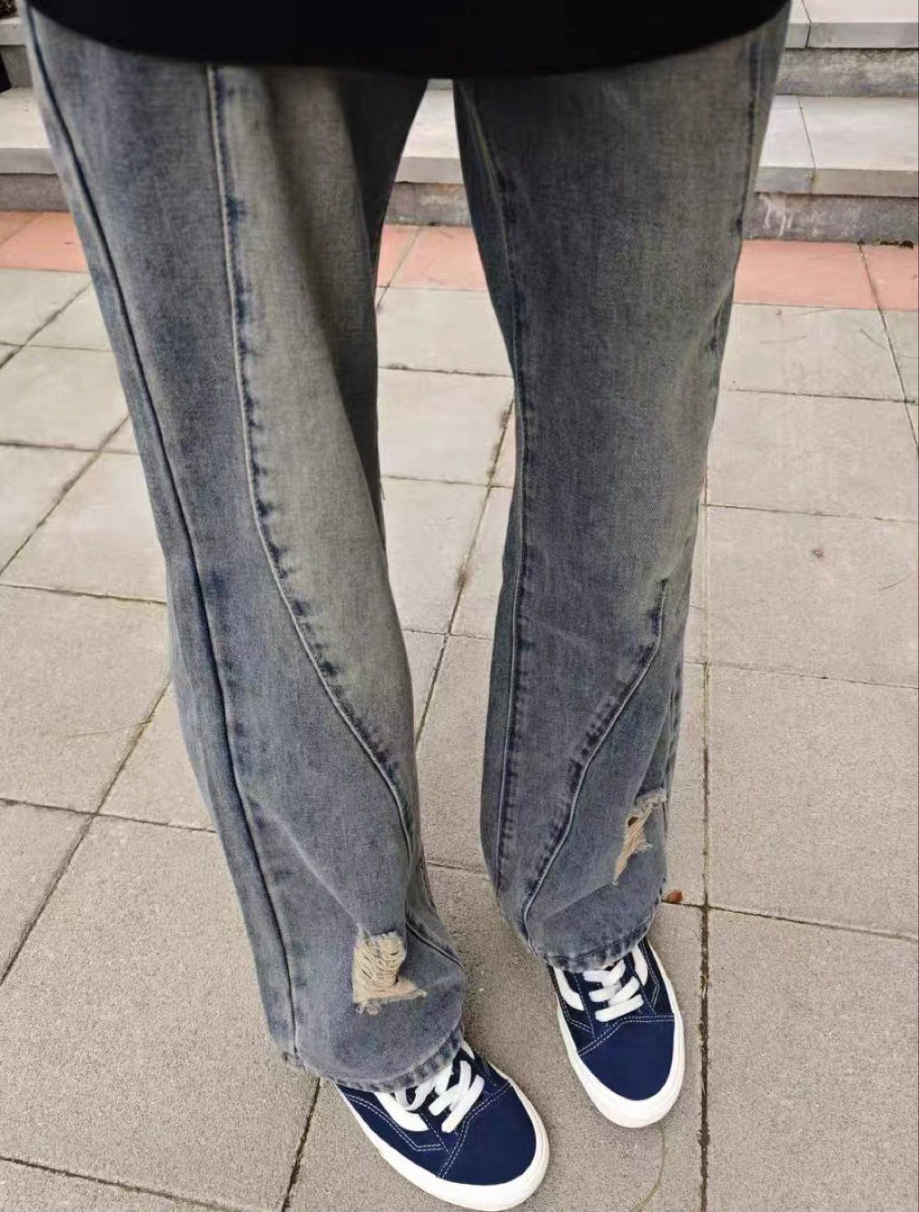 大家品鉴一下同色的牛仔裤搭配这款板鞋或者图三的牛仔裤搭配这款板鞋哪一个更加搭配。 可以看看你们的板鞋穿搭吗