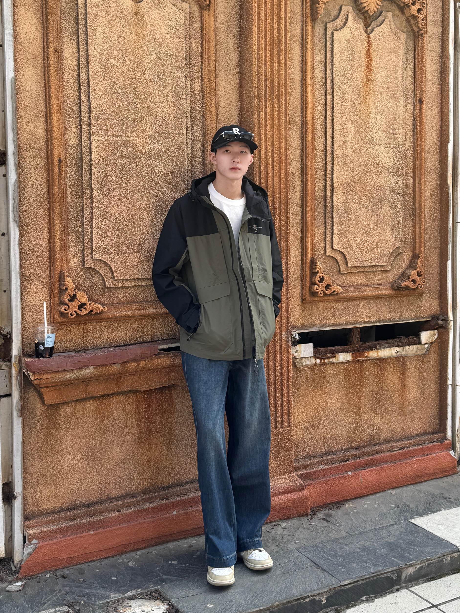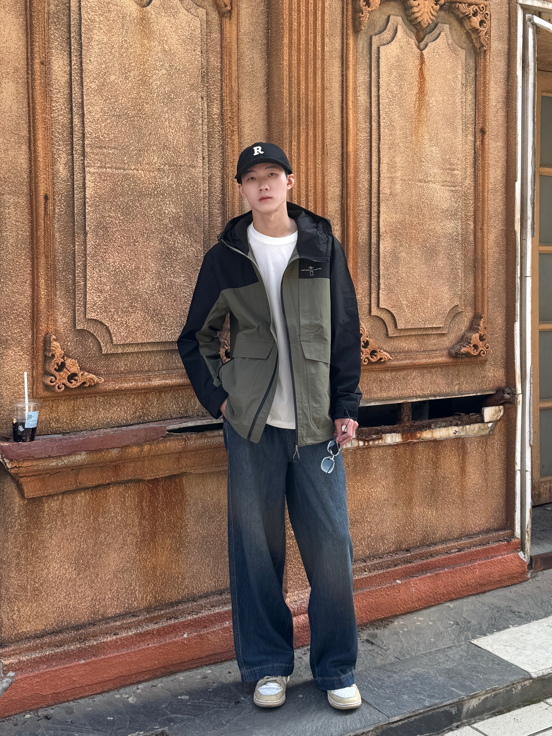 这件黑绿拼接夹克太抢眼了 宽松版型自带街头感 内搭白T恤简单提亮✨ 下身配上一条蓝灰色阔腿裤 慵懒又利落 色调意外地和谐~ 整体既有层次又不杂乱 出街抓睛度满分 适合想玩点不一样的时候穿🌀