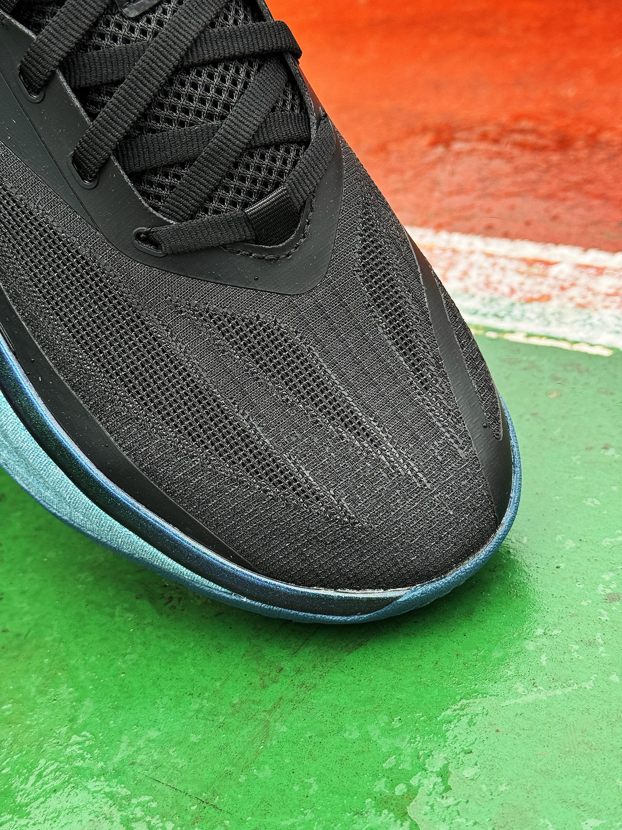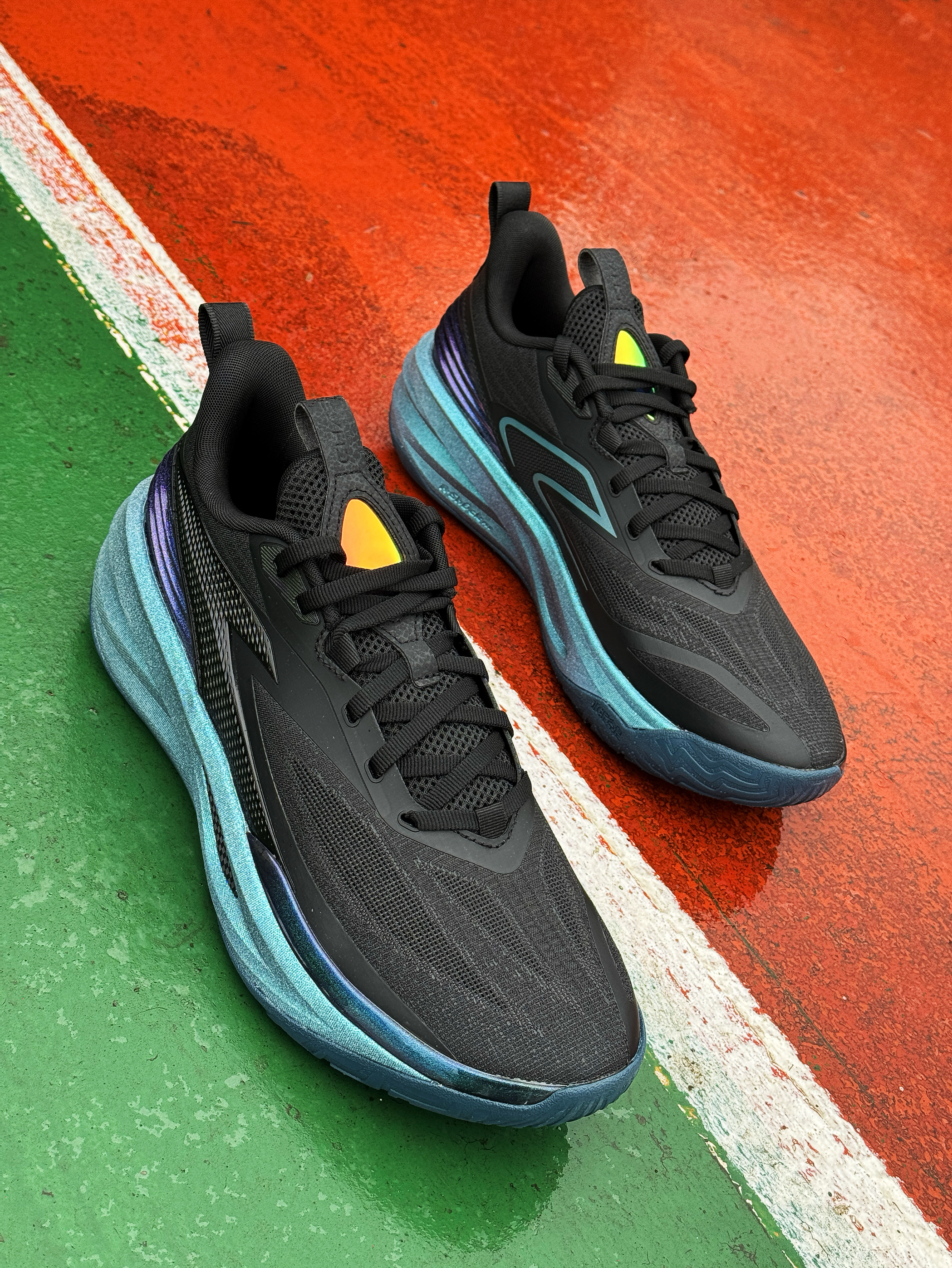 实战党们看过来 这双追光“黑洞”配色上脚真还挺帅的!黑色鞋身搭配金属质感中底 质感很棒 整体也有种神秘的深邃气质! 这双鞋上脚后的整体感觉很不错 全掌A-SHOCK Pro + 全掌氮80的中底组合 脚感是偏韧弹的 鞋子缓震极限很高!跑跳下来落地还是很稳的! 鞋子启动不拖沓 爆发力十足 爱突破的锋卫穿很适合!学生党们打外场完全没问题 尺码正常!