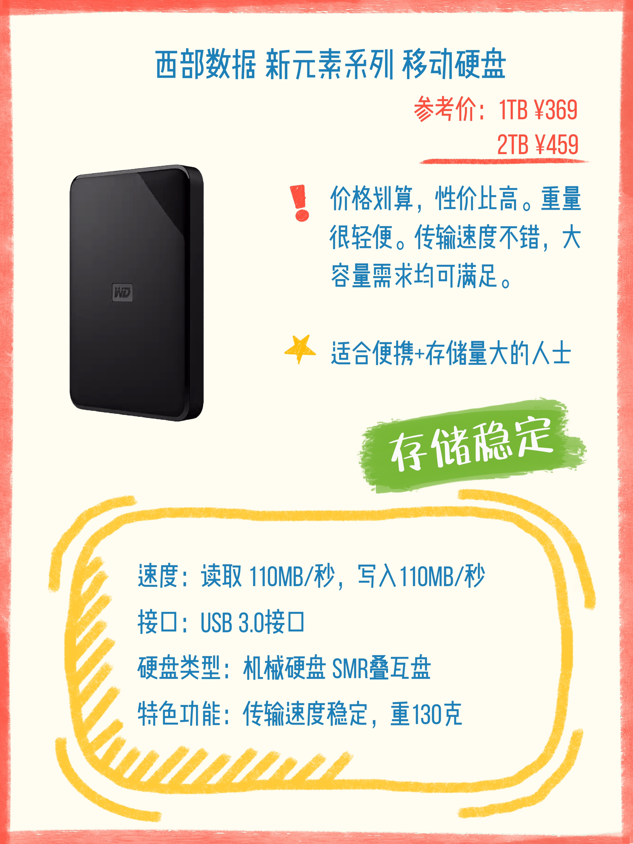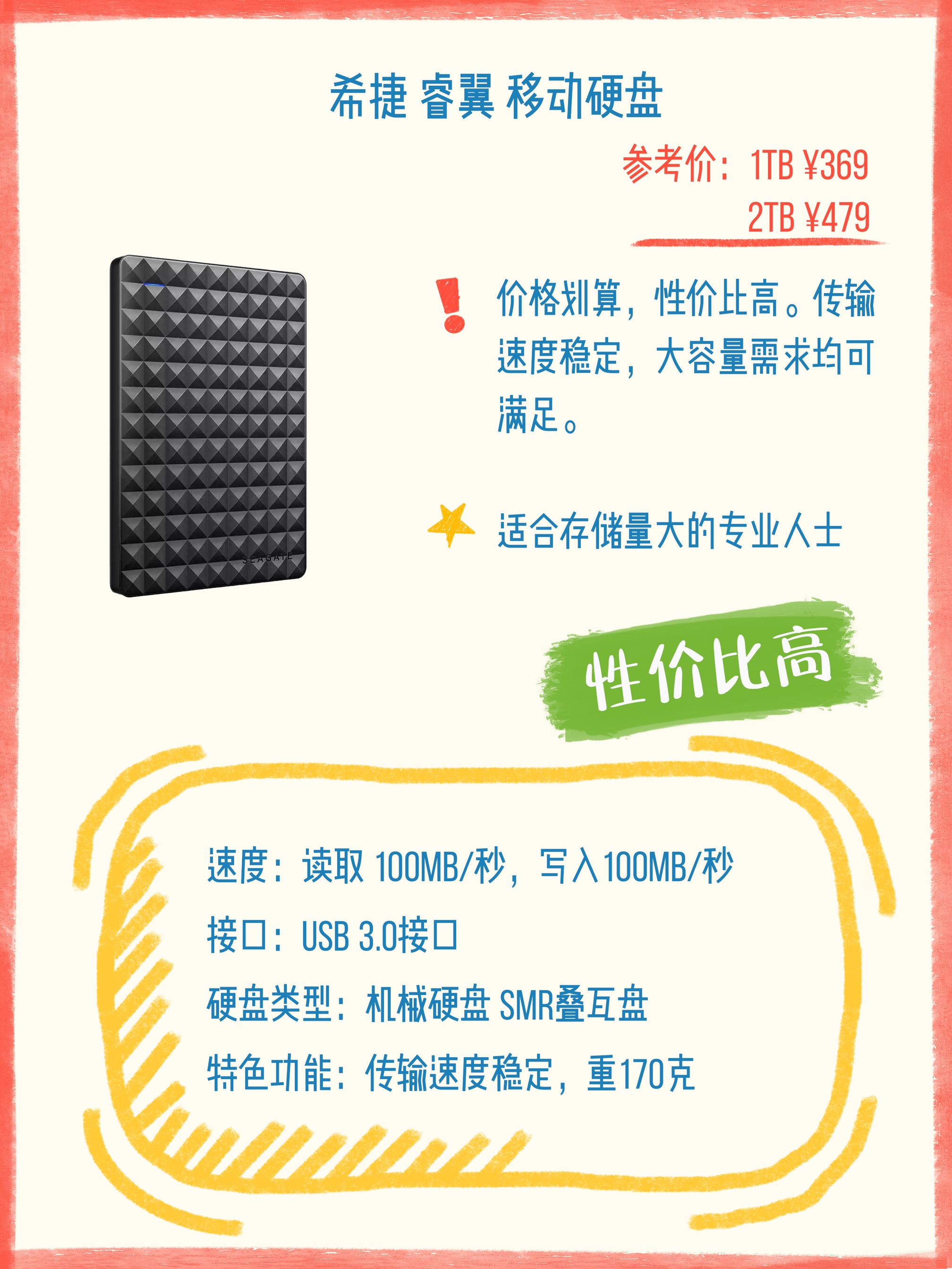 本篇笔记关联了Seagate/希捷 睿翼 移动硬盘 商务黑钻、SEAGATE 希捷 移动固态硬盘 Type-C接口 2TB 默认配色、WD/西部数据 Elements SE 移动硬盘 新元素 外接 黑色等商品,为用户提供真实的使用体验和购买参考。