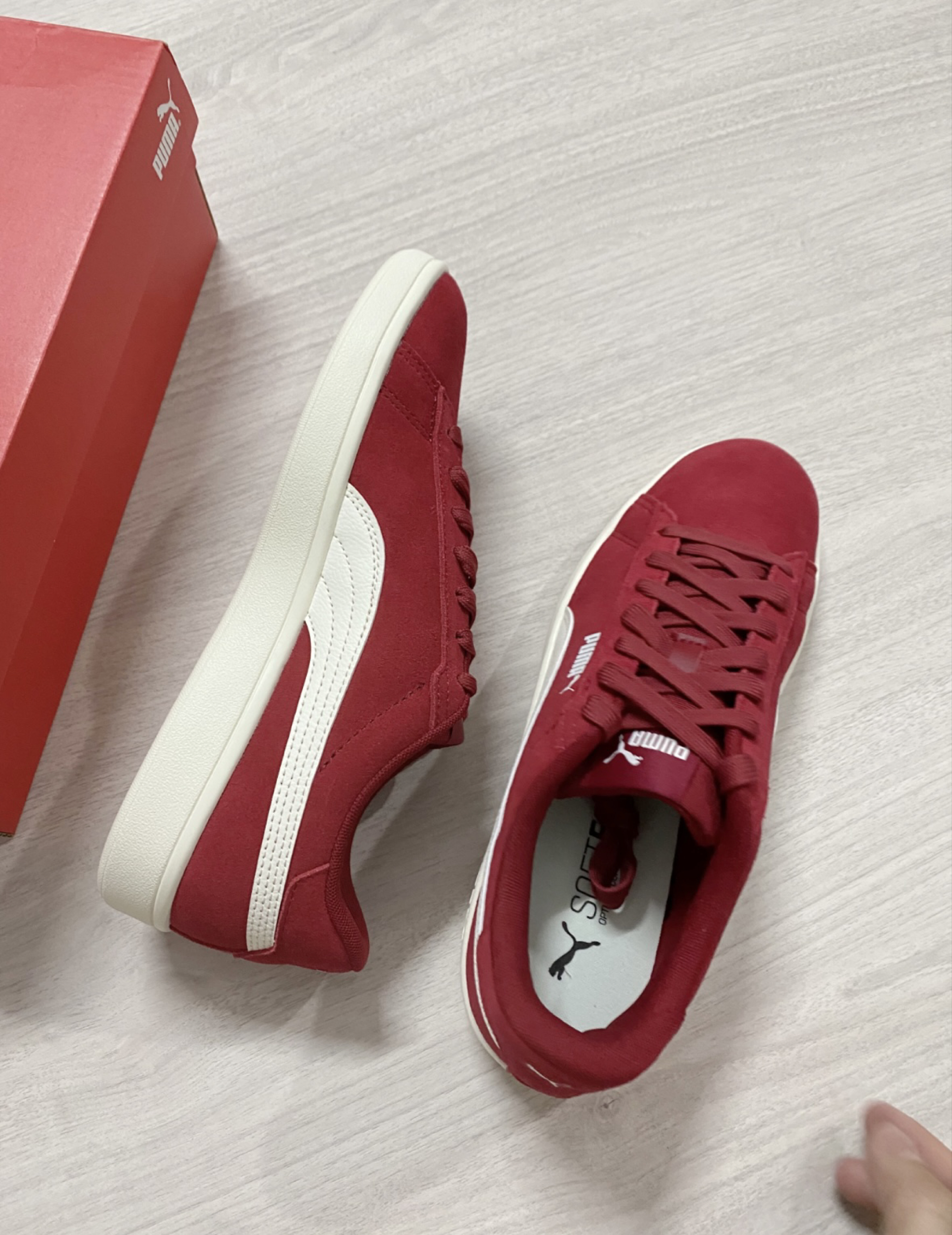 第一次穿也舒适,红色能穿稳重感,日常出门不刻意很好搭,材质也好打理比较跟脚#红色潮流鞋 #PUMA板鞋时尚高颜值 #新学期装备从过年就开始置办好 #就是个板鞋脑袋 #拜年战鞋极限N选一