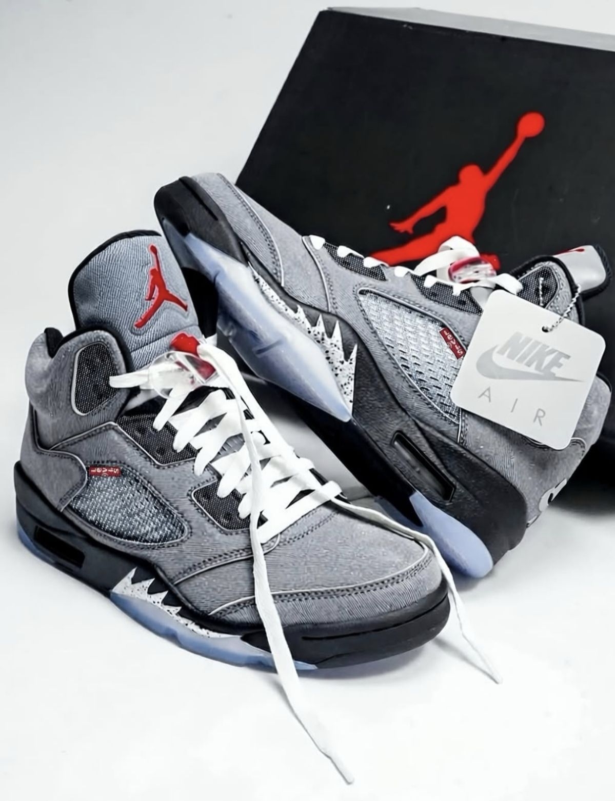 Levi’s x Air Jordan 5 “Grey Denim” 概念款来袭!👀 是你的菜吗?水洗丹宁+经典AJ5鞋型,复古与潮流的碰撞,每一处细节都让人疯狂心动。评论区告诉我,这双鞋你打几分?👇
