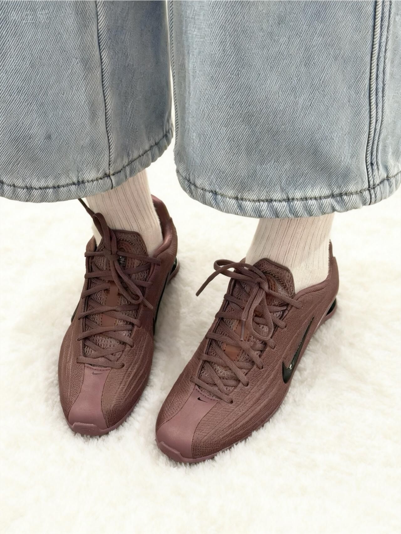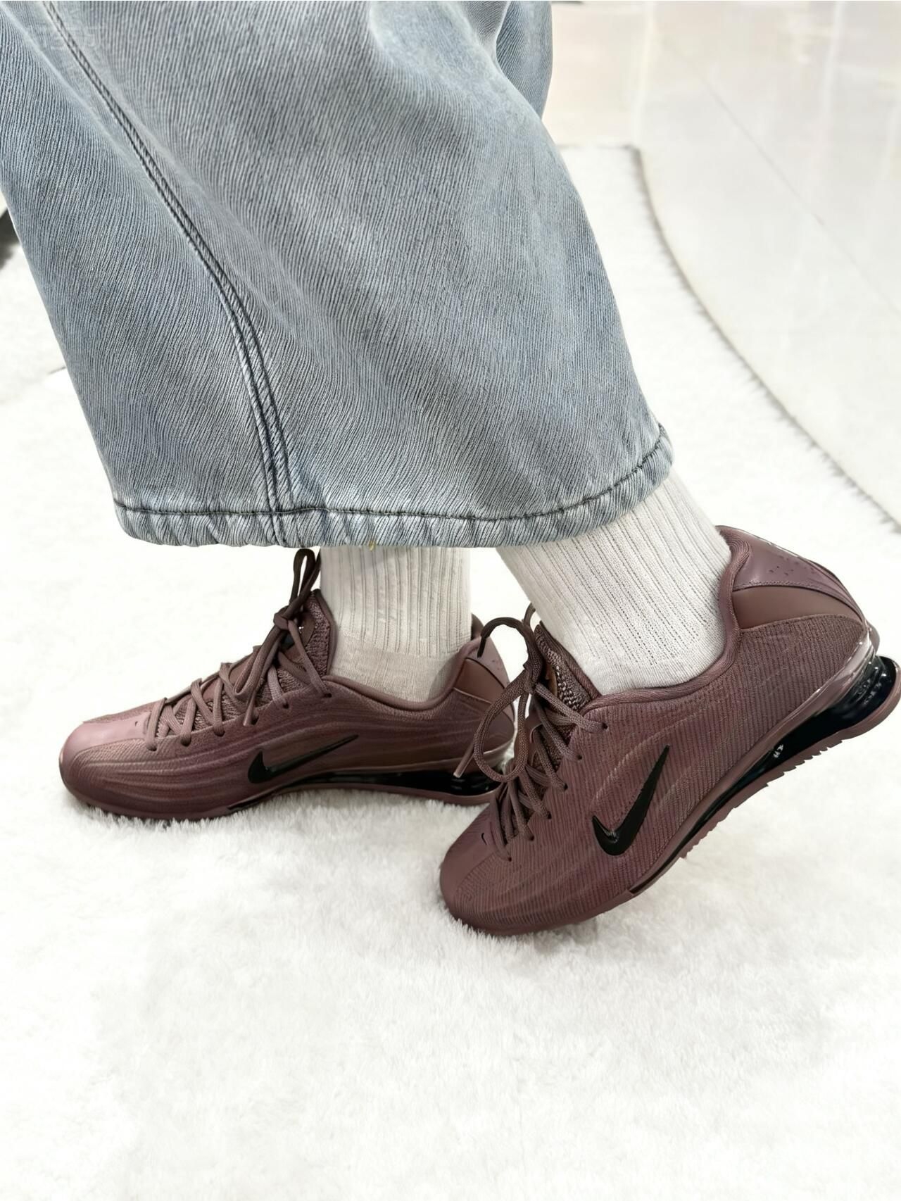 救命!这双Nike Shox Z的豆沙紫也太懂女生了✨ 低饱和酒红调自带高级柔光滤镜,鞋面暗纹在阳光下泛着细腻光泽,小高跟设计悄悄优化比例~ 谁说新年战靴非得是大红色❓ 这双豆沙紫战靴配黑色大衣或白色针织裙,温柔又亮眼,新年聚会直接美成焦点!🧧