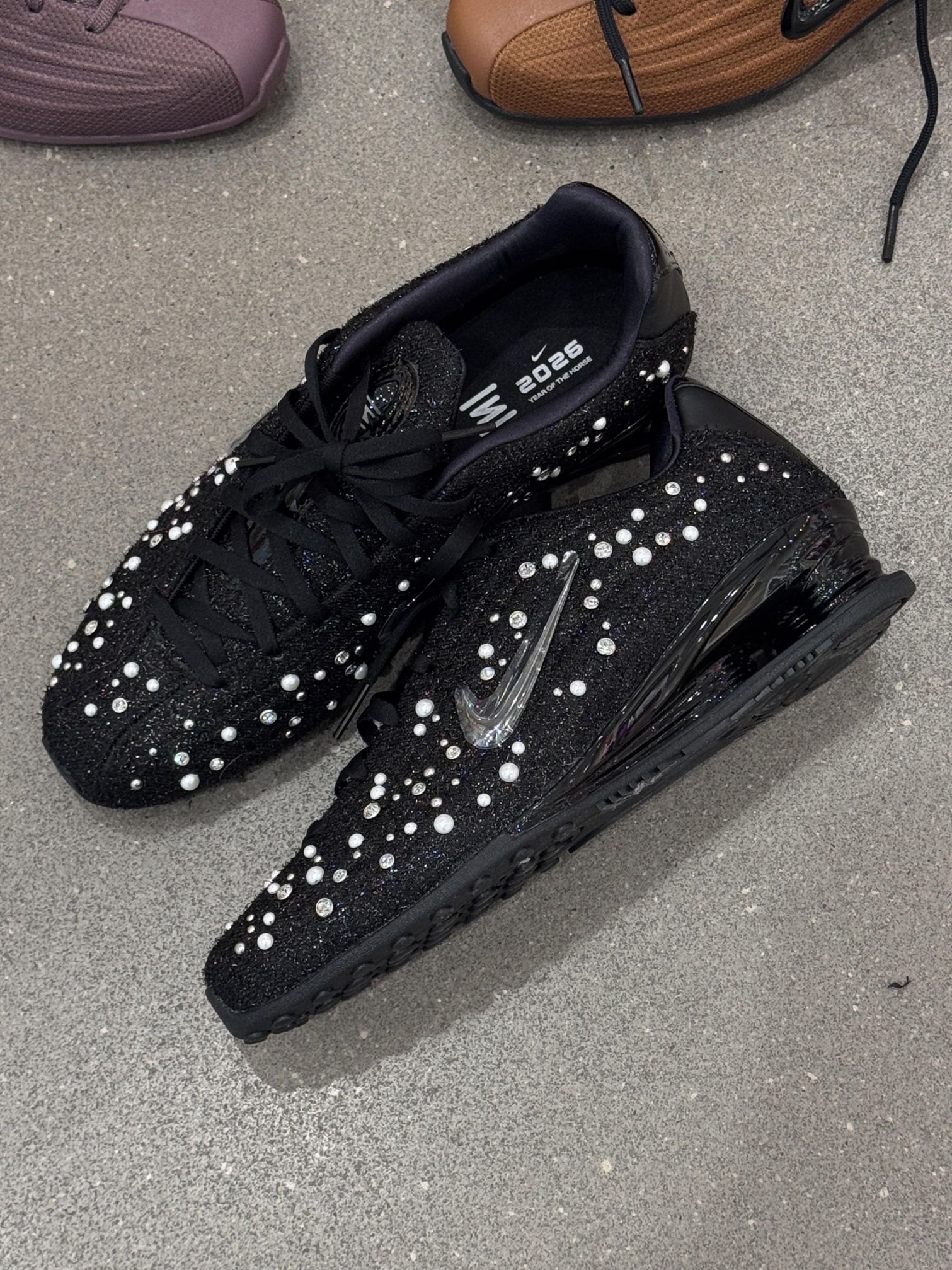 当柳智敏同款Shox给足选择困难——这不是挑鞋,是挑明天你想穿哪种人生皮肤🧚🏻♀️ 💜 皮肤A:温柔结界·暗紫调 穿上它,是给脚步加上一层「生人勿近」的柔光滤镜。 低饱和紫调专治黄皮,3cm气柱是藏在裙摆下的秘密武器,配西装裤是清冷御姐,搭白裙子是温柔结界——日常穿不张扬,细看全是底气。 ✨ 皮肤B:璀璨外挂·星河黑 选它,等于默认开启「今夜我是焦点」模式。 上千颗水钻不是装饰,是你走进房间的3...