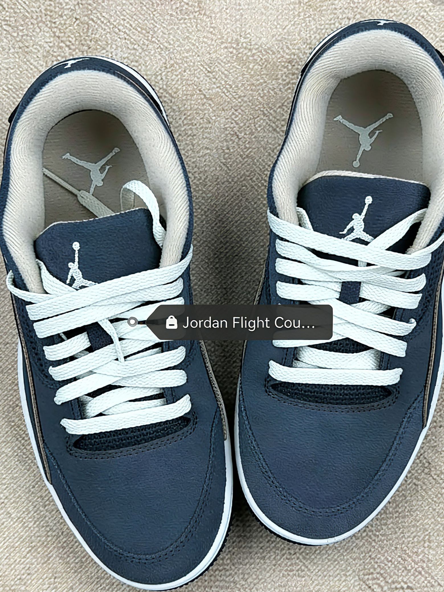 这是Jordan Flight Court复古休闲鞋,海军蓝麂皮质感高级细腻,搭配米白内衬与鞋带,经典飞人Logo点缀尽显品牌格调,简约百搭适配多种日常穿搭场景。